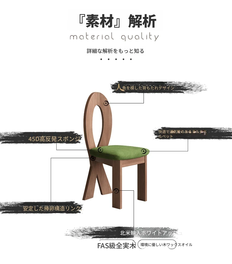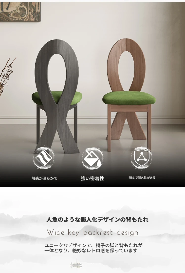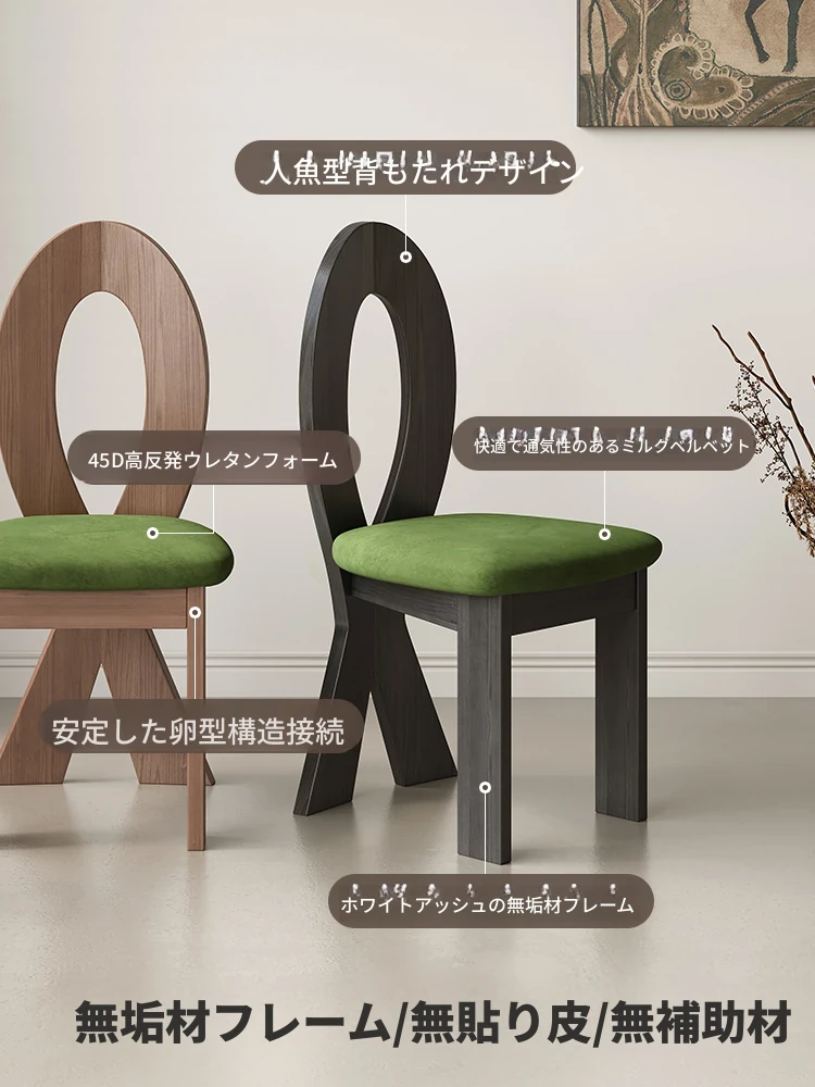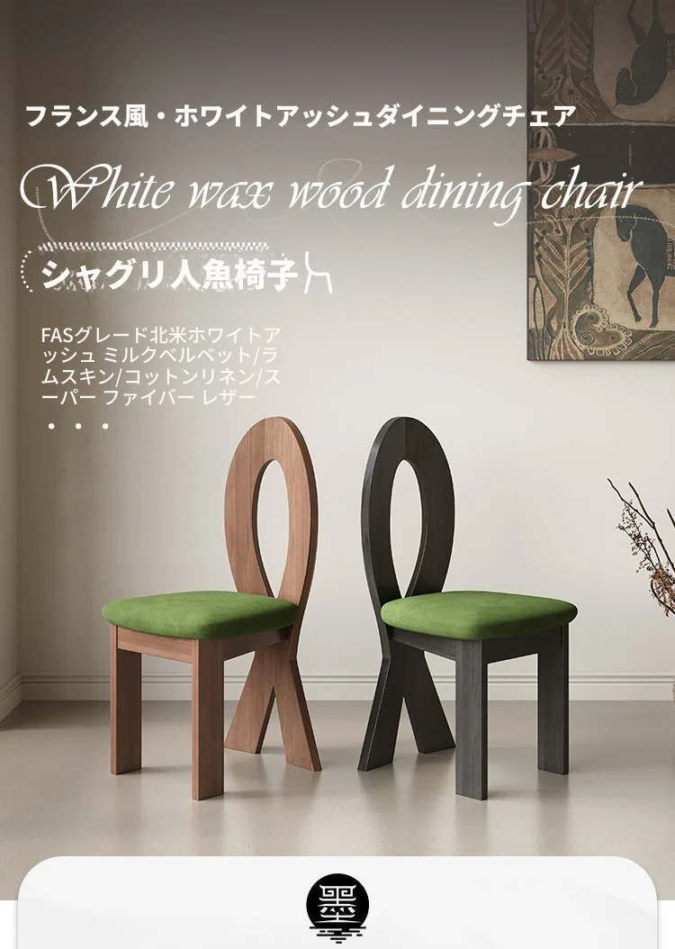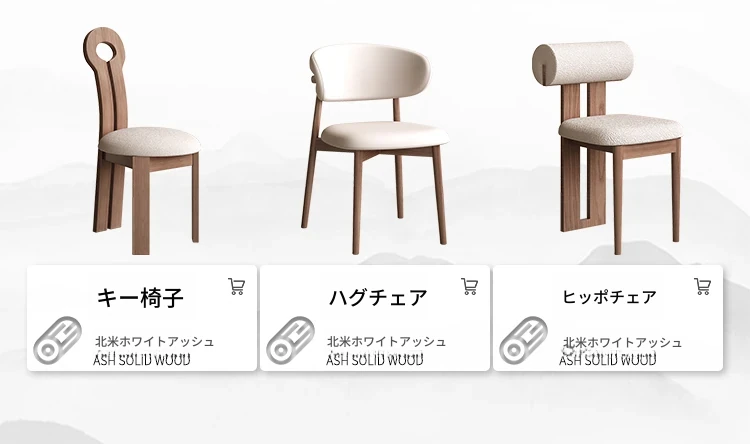 無垢材のホワイトアッシュダイニングテーブルと人魚型ダイニングチェアのセット。シンプルで洗練されたデザイン、和の侘び寂びを感じる北欧スタイル。家庭にぴったりの心地よい空間を演出します。