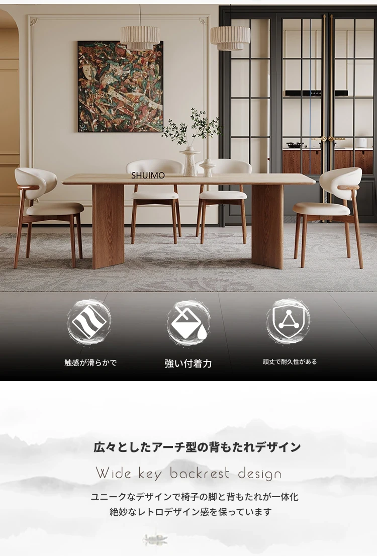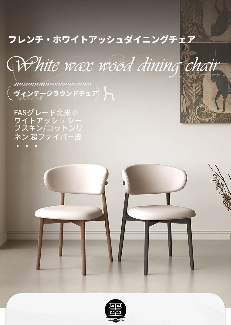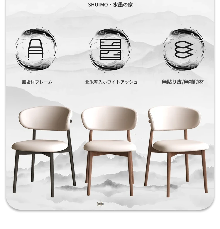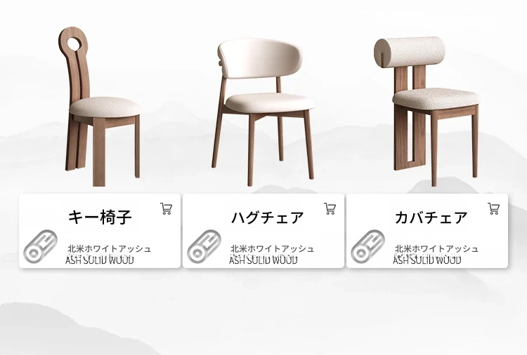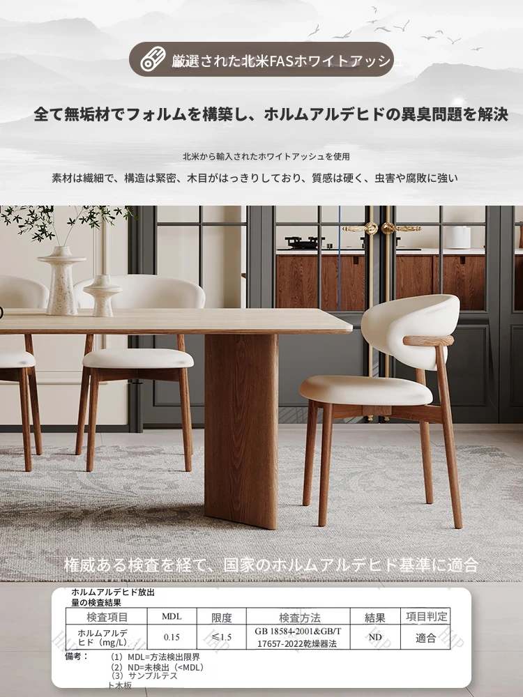 無垢材ホワイトアッシュダイニングテーブルとシンプルなダイニングチェアセット - 和の美しさを感じる侘び寂びスタイル、北欧風の書斎椅子としても最適。家庭でのくつろぎのひとときを演出します。