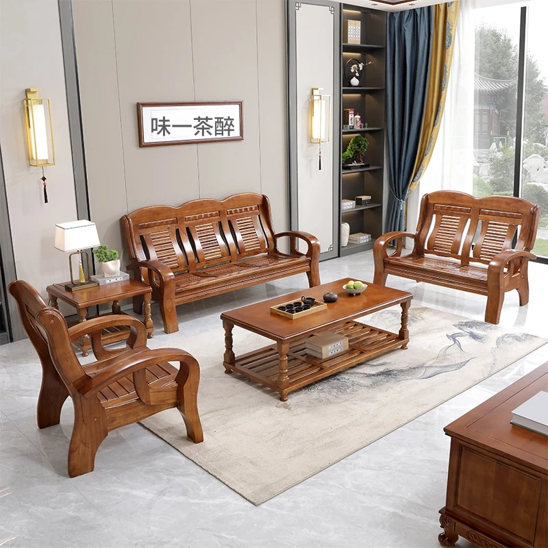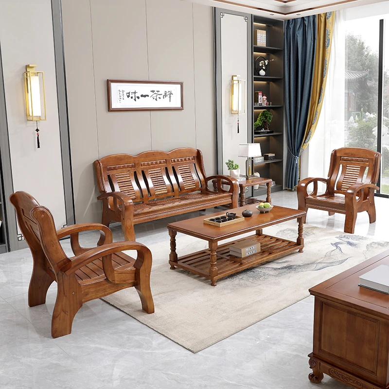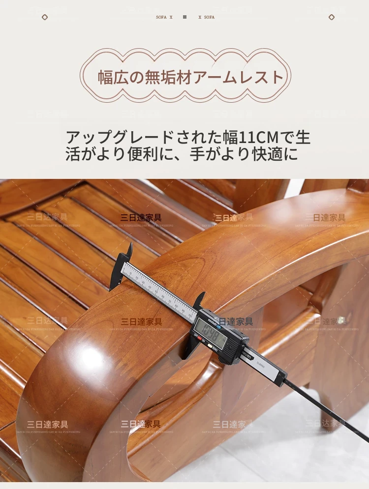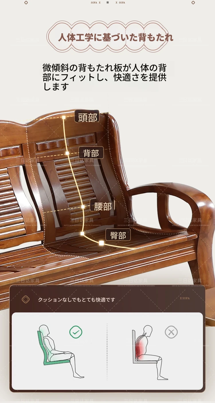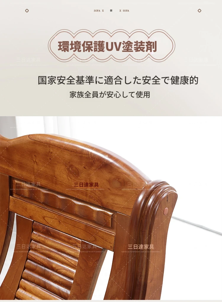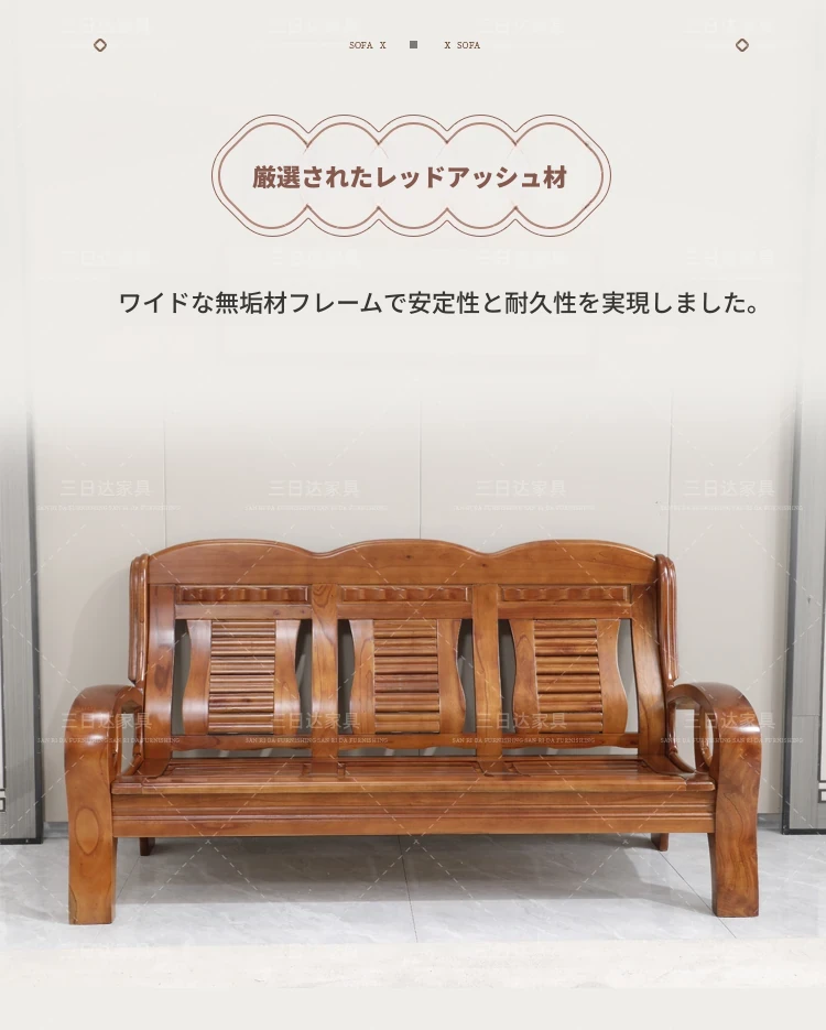 全実木製ソファー|伝統的な田舎風デザインの木製リビング用3人掛けソファー|春秋にぴったりの快適な座り心地を実現!自然素材の温もりを感じるおしゃれな一品です。