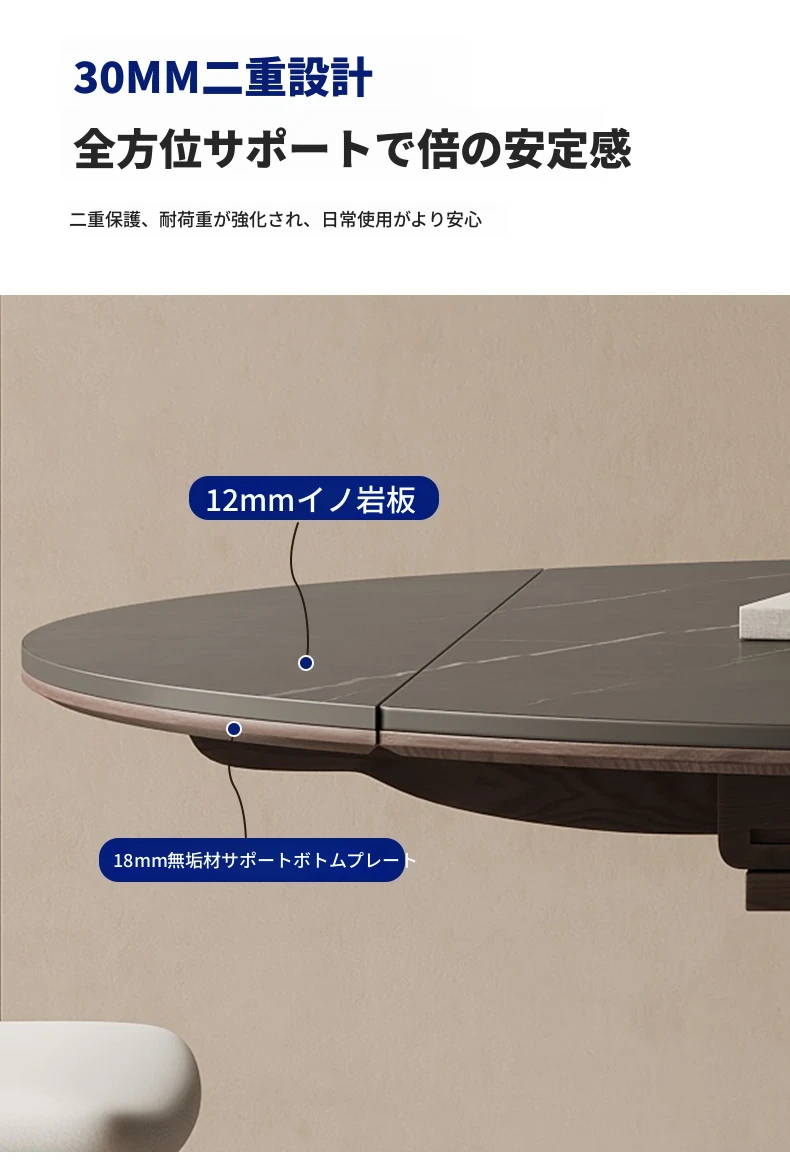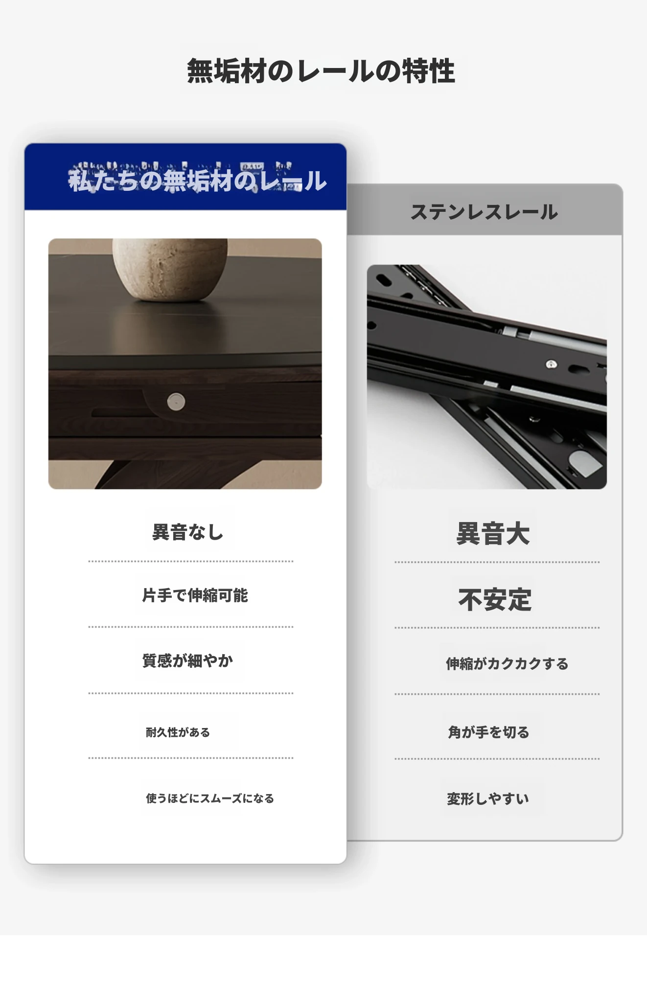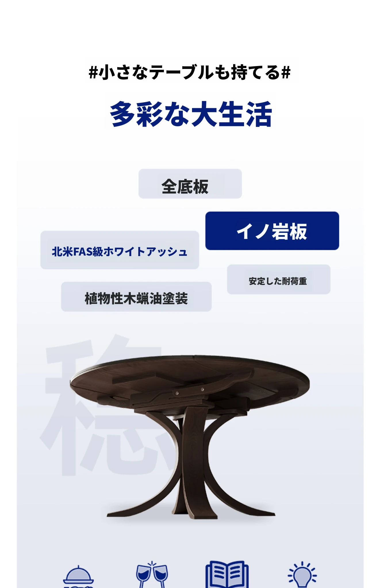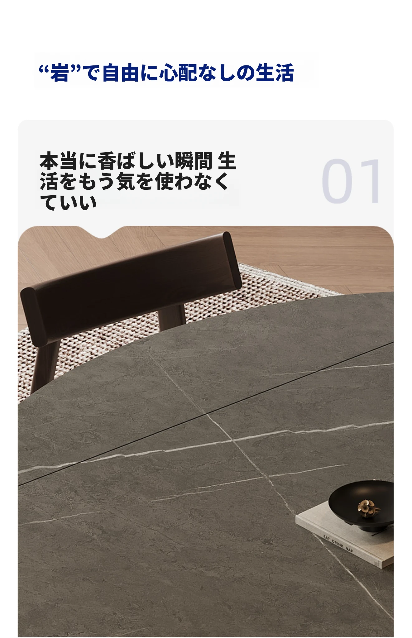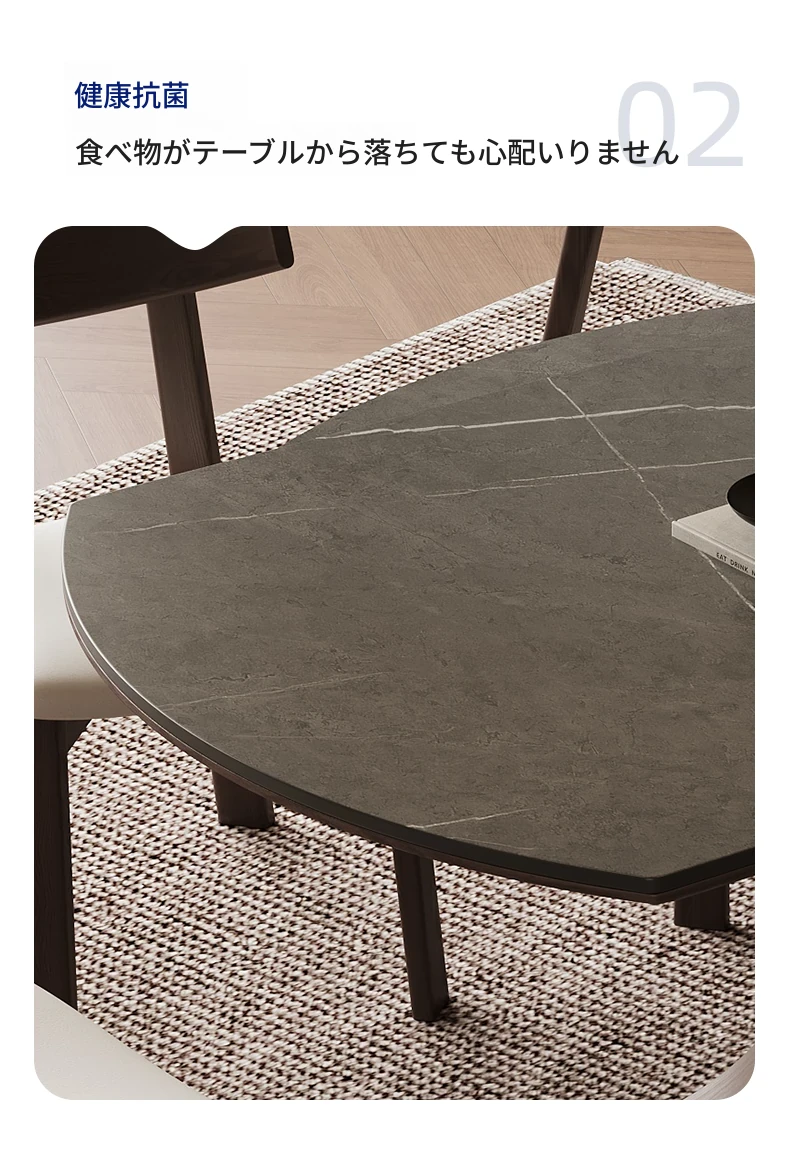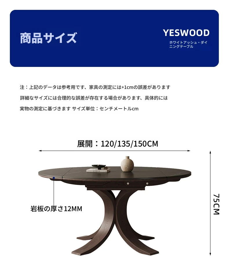 ブラックウォールナット色のスリムな無垢材ロックボード伸縮式丸型ダイニングテーブル - 小型住宅に最適!四角形と丸形の2通りで折りたためる便利なデザイン。おしゃれで機能的な空間を演出します。