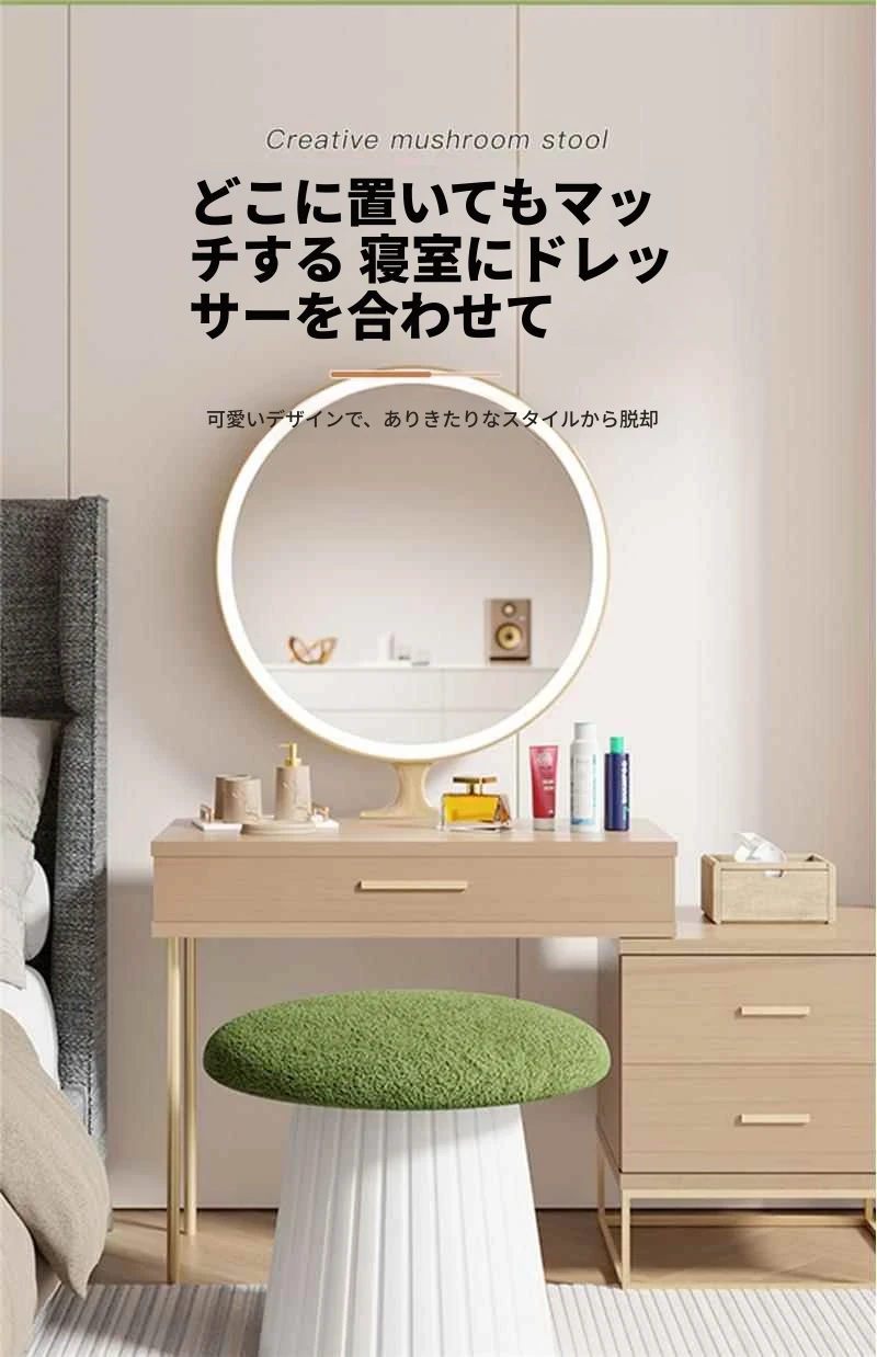 シンプルでスタイリッシュな北欧風メイクアップチェア - 女の子のための洗練されたドレッシングテーブル用スツール。おしゃれで軽やかなデザインで、インスタ映えも抜群!お部屋を格上げする美甲チェアとしても最適です。