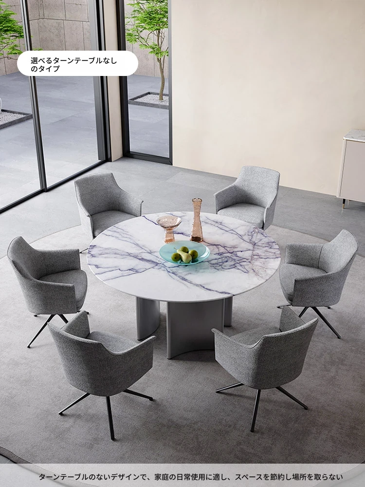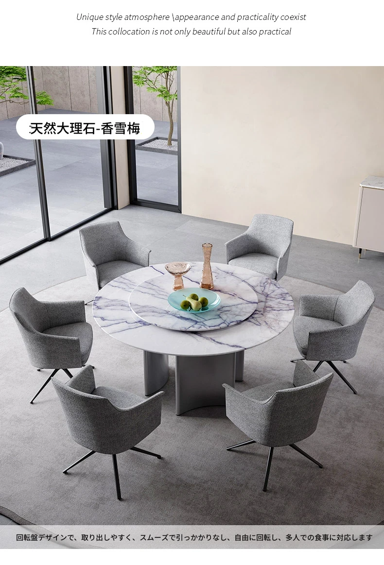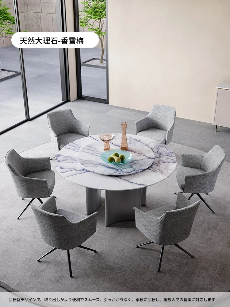 天然大理石円卓【1.35メートル外付け回転盤付き】+6脚の椅子