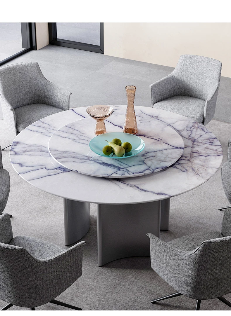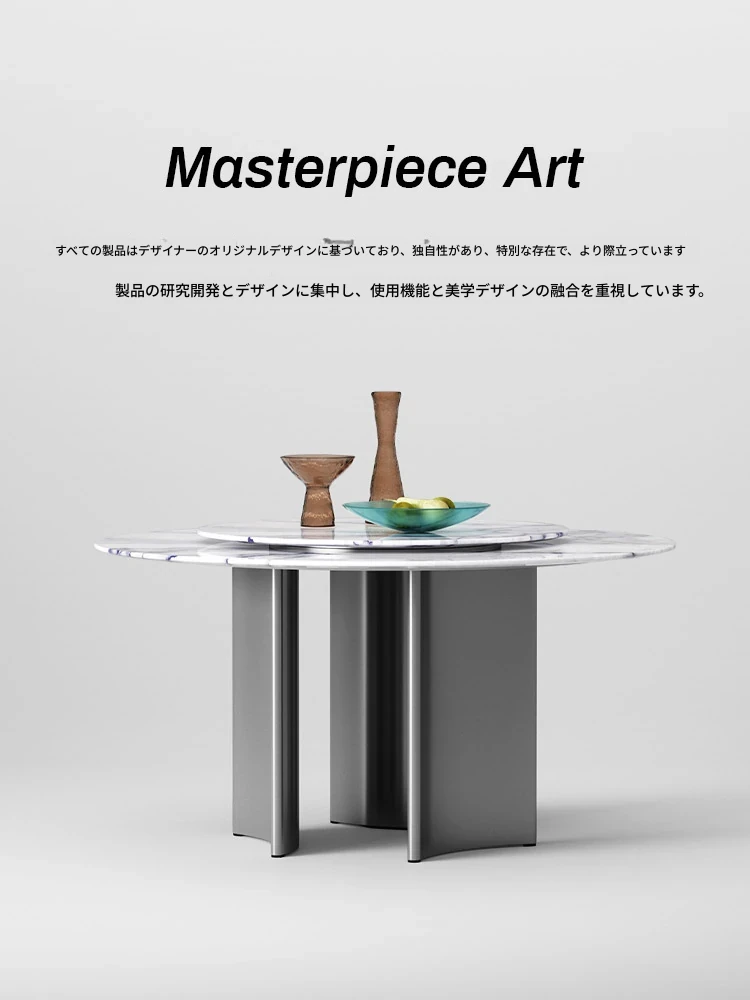 ティノーサ 天然大理ック ラウンドダイニングテーブル 大型別荘向け 高級レストラン用 回転式デザイン 美しい大理石の円卓で特別な食事体験を演出!
