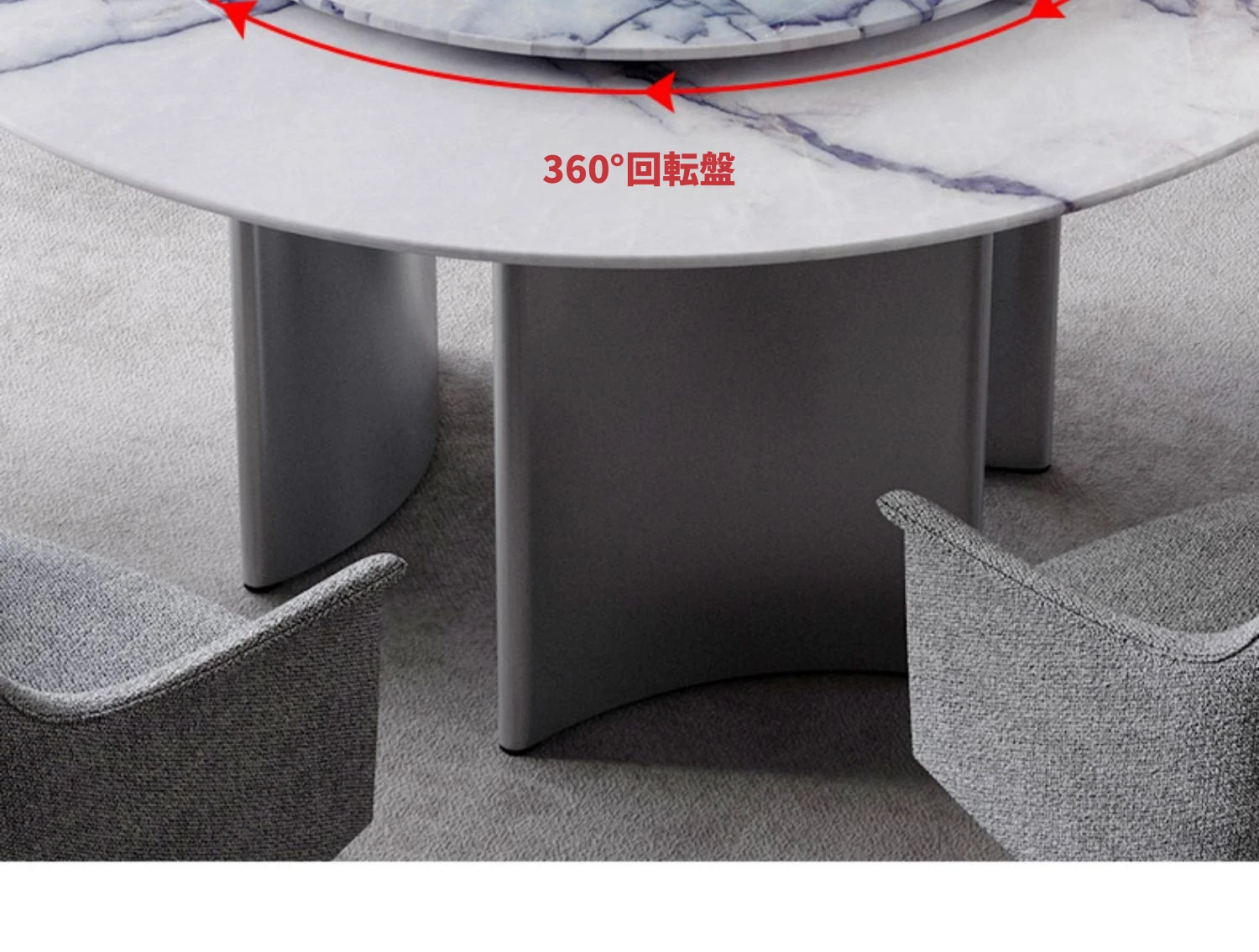 天然大理石円卓【1.5メートル外付け回転盤付き】+8脚の椅子