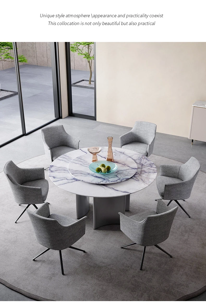 天然大理石円卓【1.2メートル外付け回転盤付き】+6脚の椅子