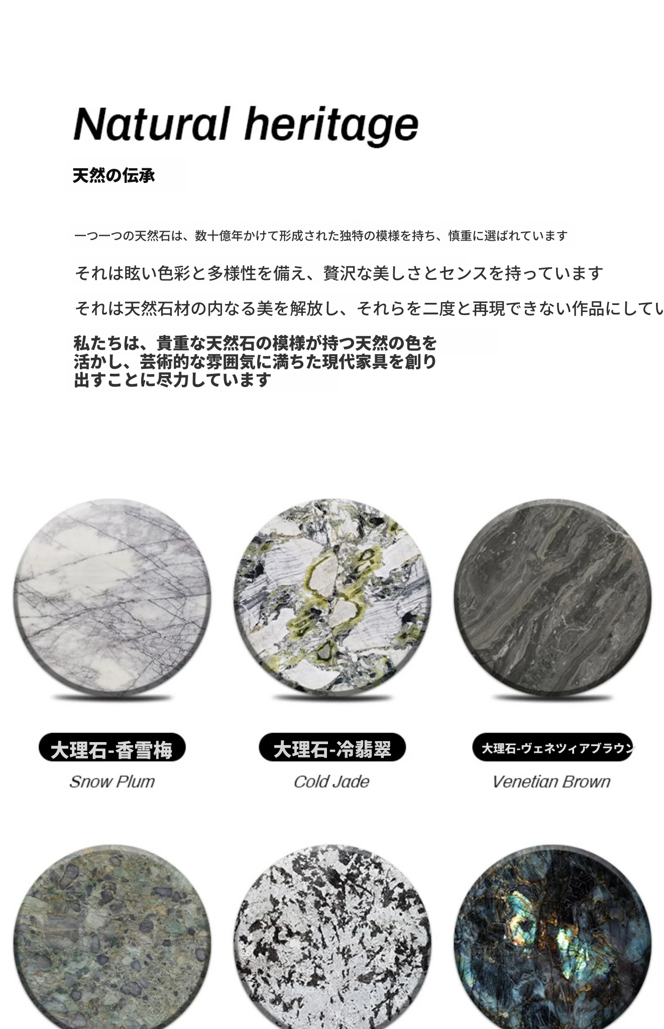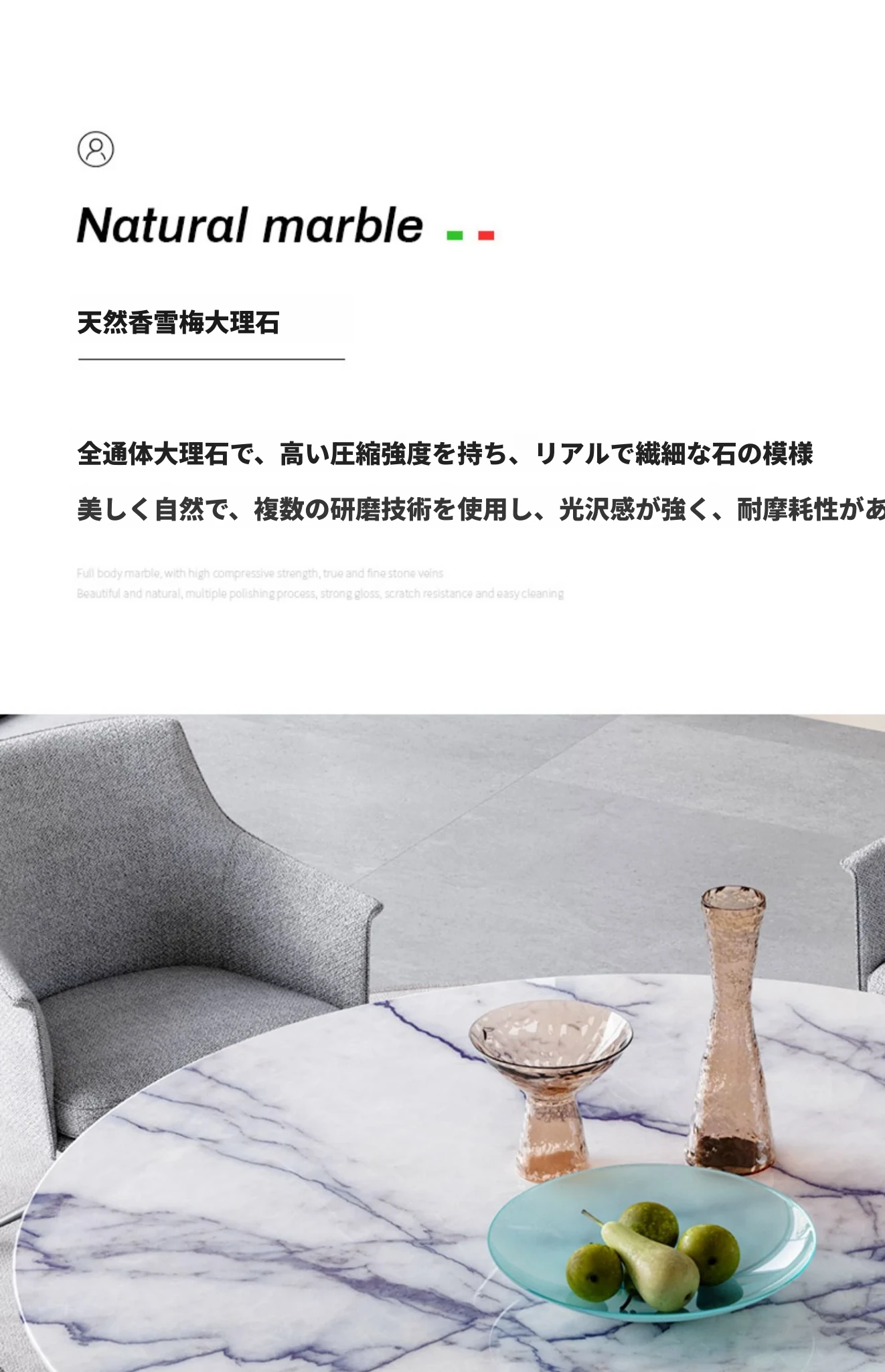 天然大理石円卓【1.35メートル回転盤なし】+6脚の椅子