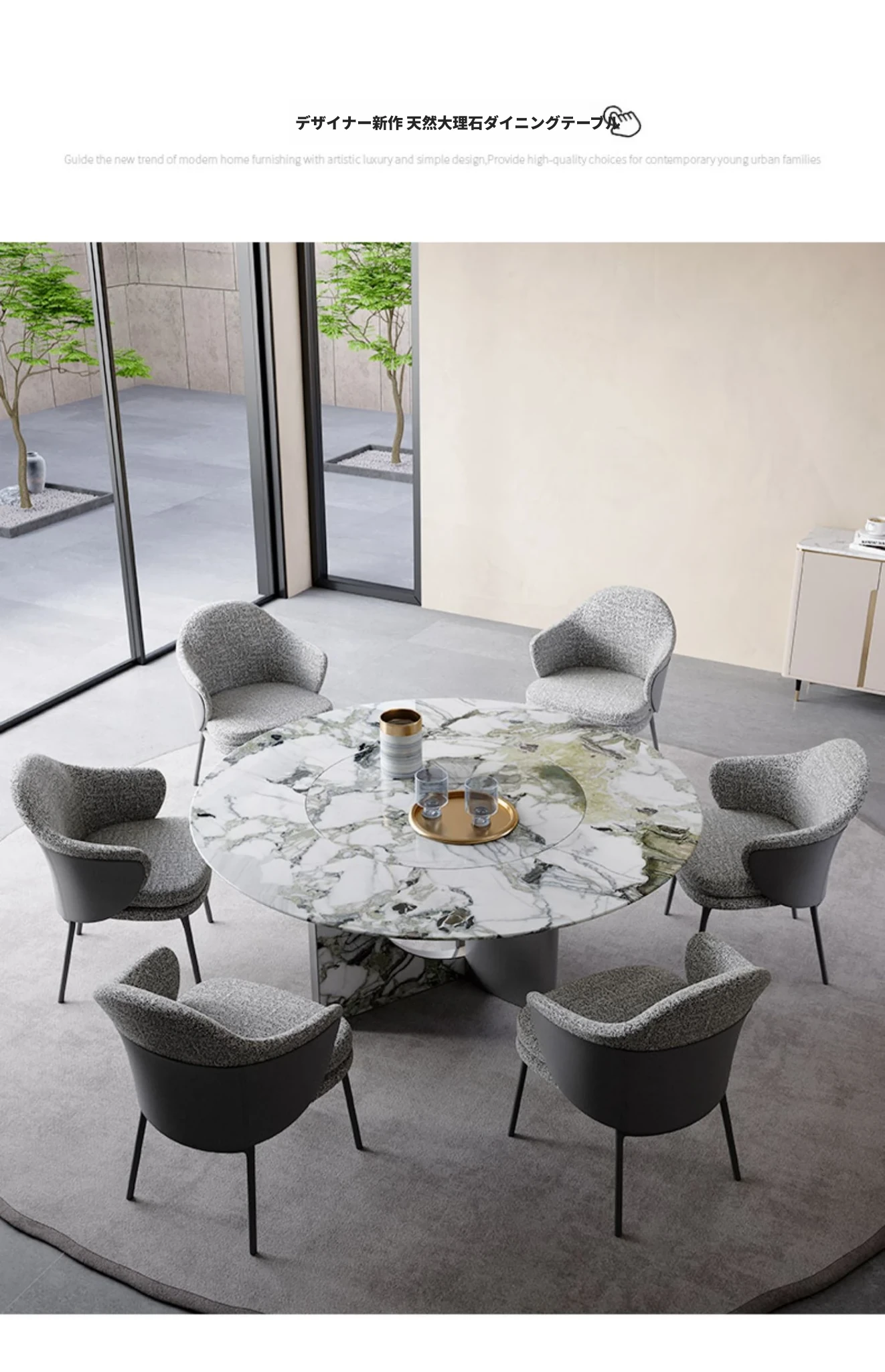 天然大理石円卓【1.5メートル回転盤なし】+6脚の椅子