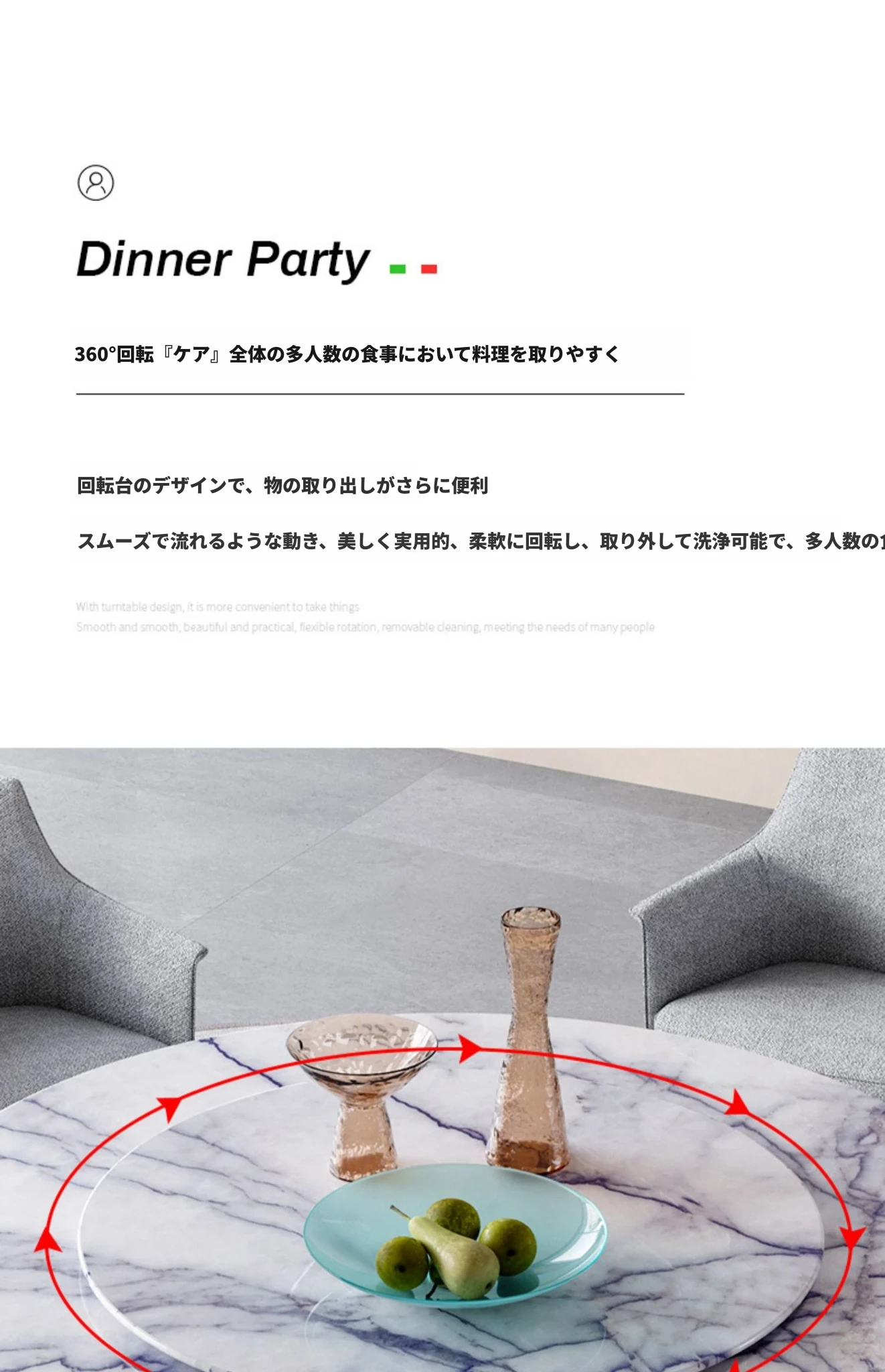 天然大理石円卓【1.5メートル外付け回転盤付き】