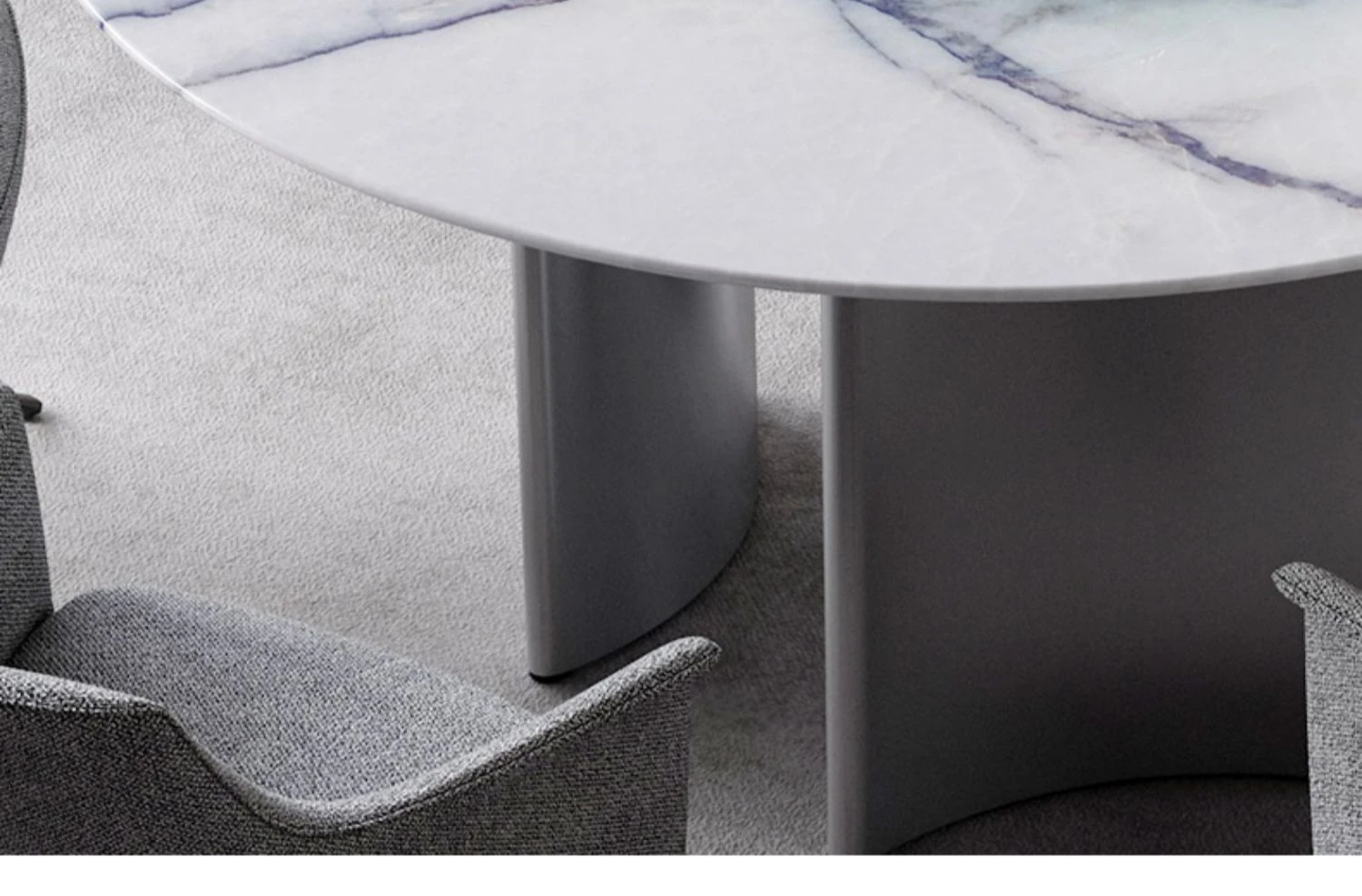 天然大理石円卓【1.58メートル回転盤なし】+8脚の椅子