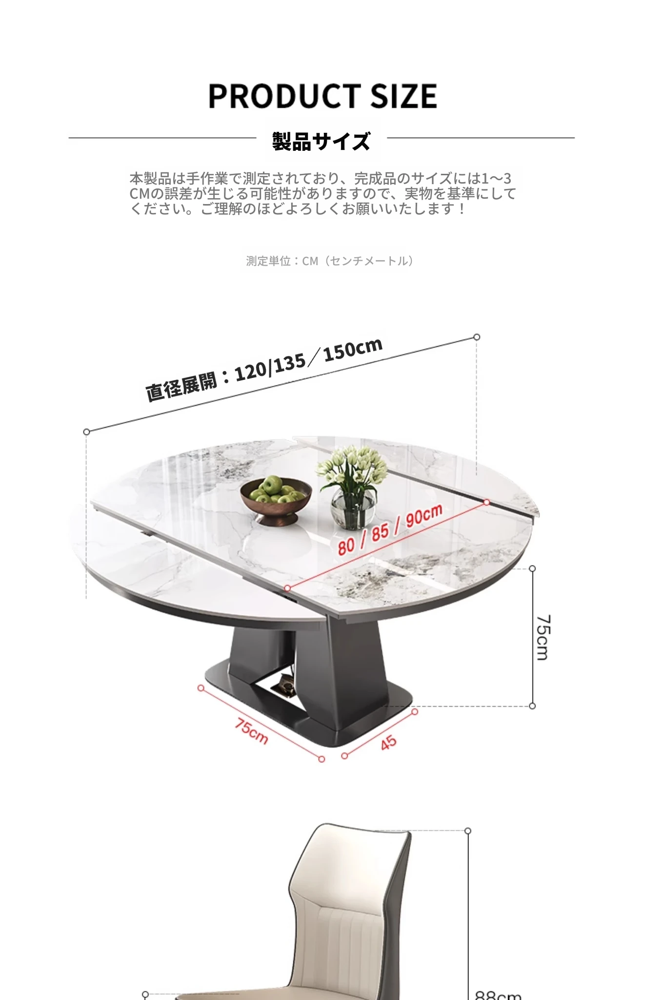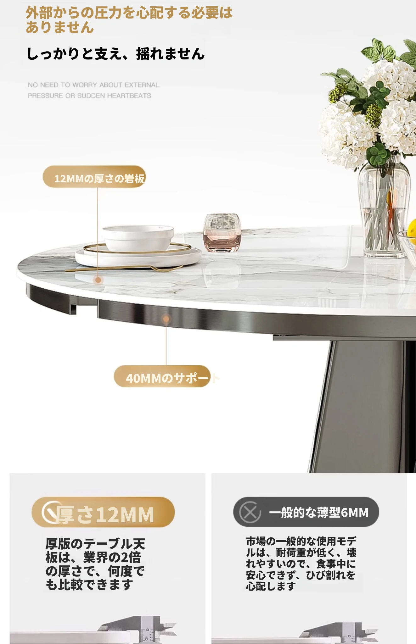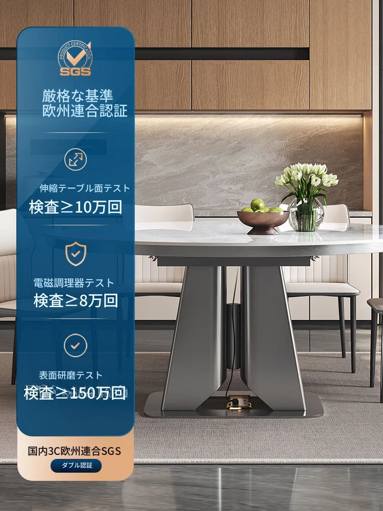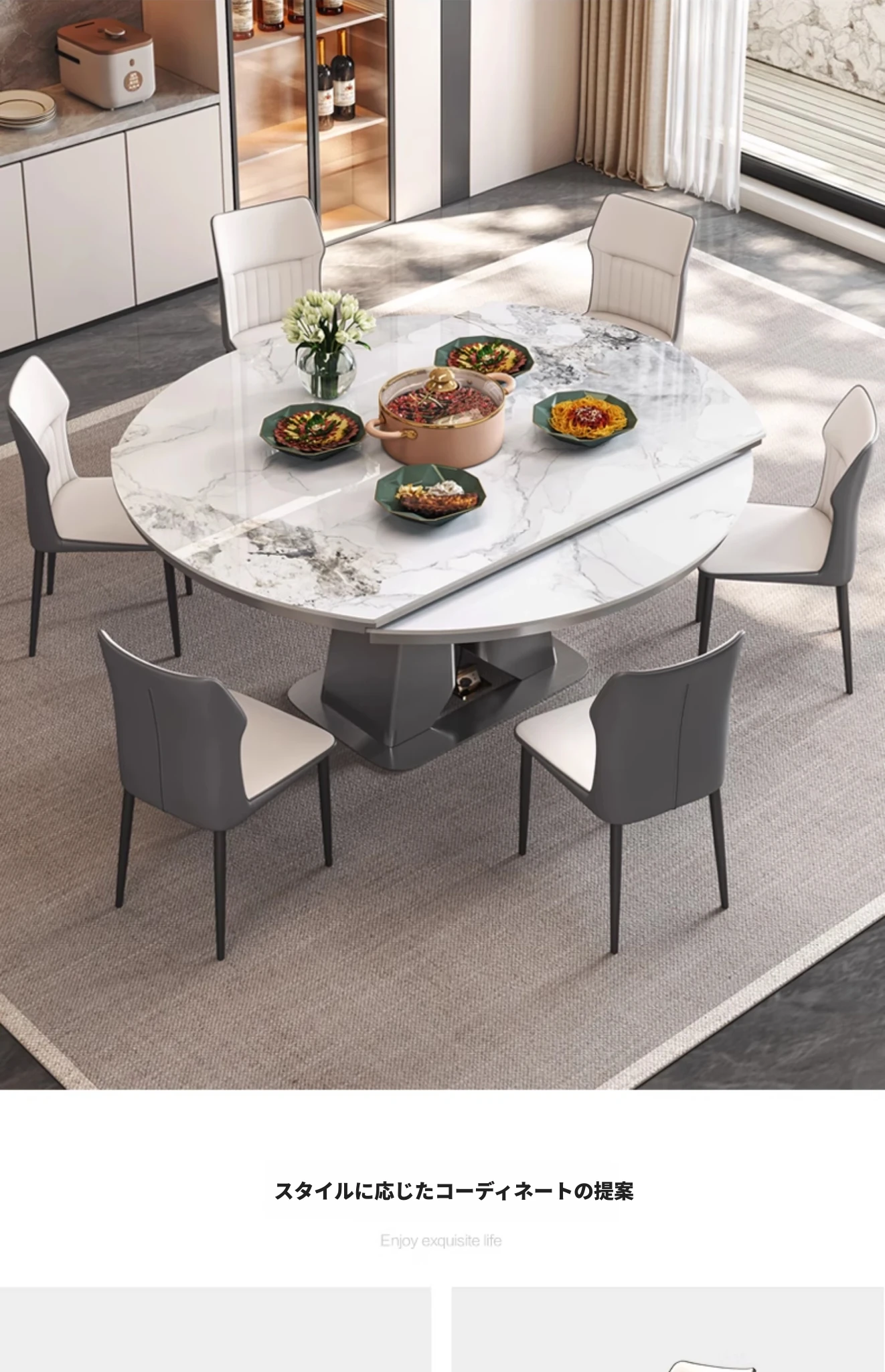 隠れた電磁炉付き!伸縮可能な多機能ラウンドテーブル - 小さな家にもぴったりな現代的でラグジュアリーな岩板ダイニングテーブル