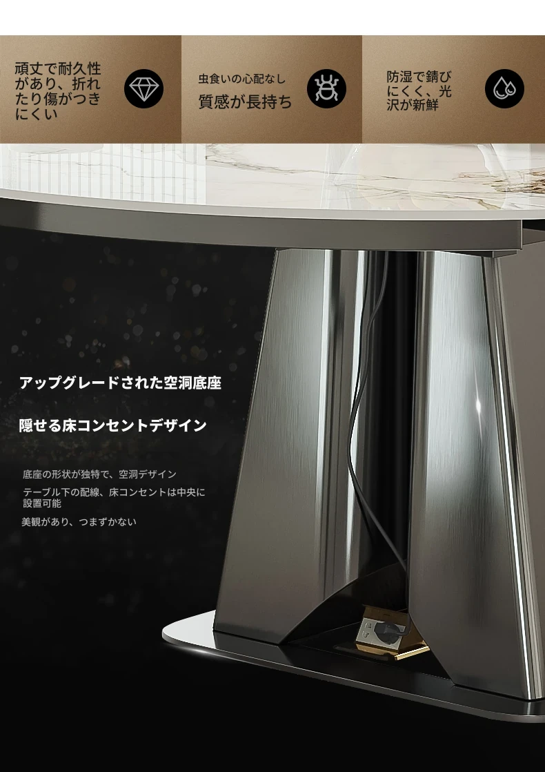 新作!高級感溢れる岩板ダイニングテーブル - 小型家庭にぴったりの軽奢モダン簡約デザイン、アートな楕円形 UFOテーブルでおしゃれな食卓を演出!