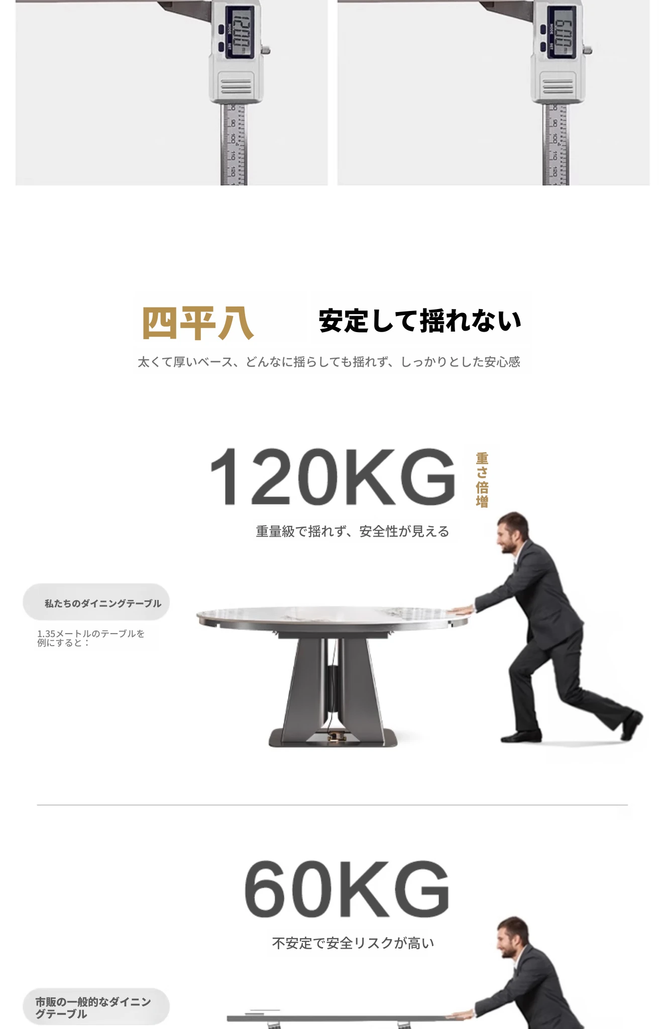 方形と丸形の両用ダイニングテーブル【1台・電磁調理器なし】