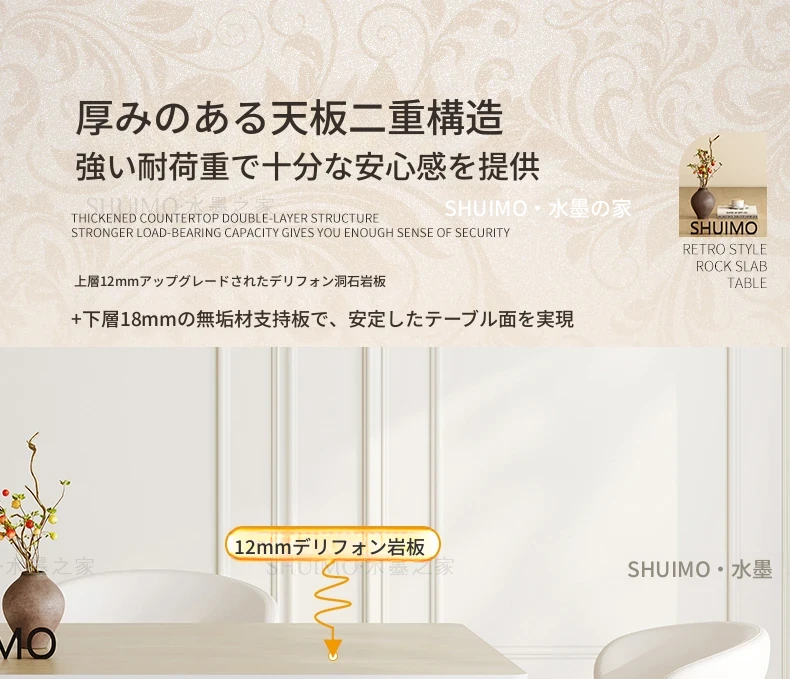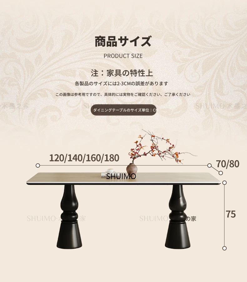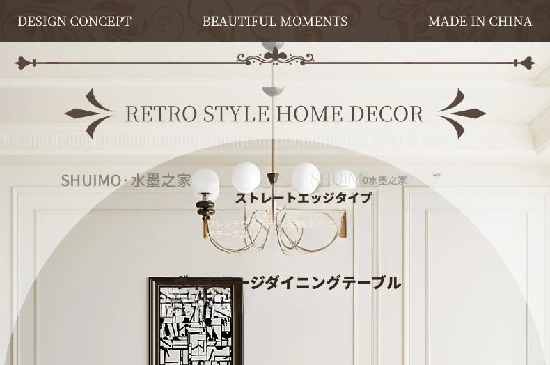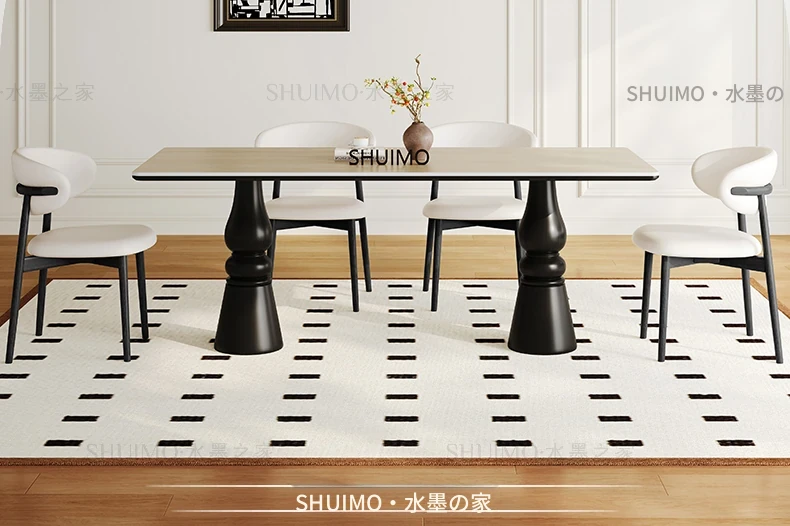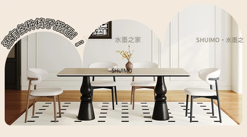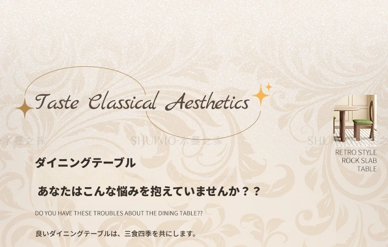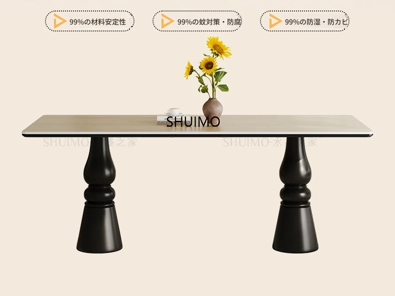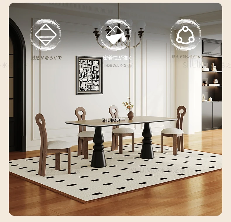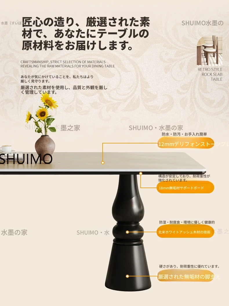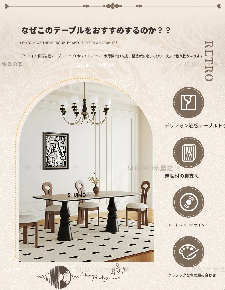 復刻版レトロ無垢材デリフォン長方形ダイニングテーブル - フランス風アンティークデザイン、高級岩板仕様、家庭用に最適な洗練された選択。