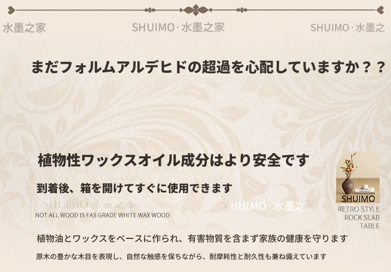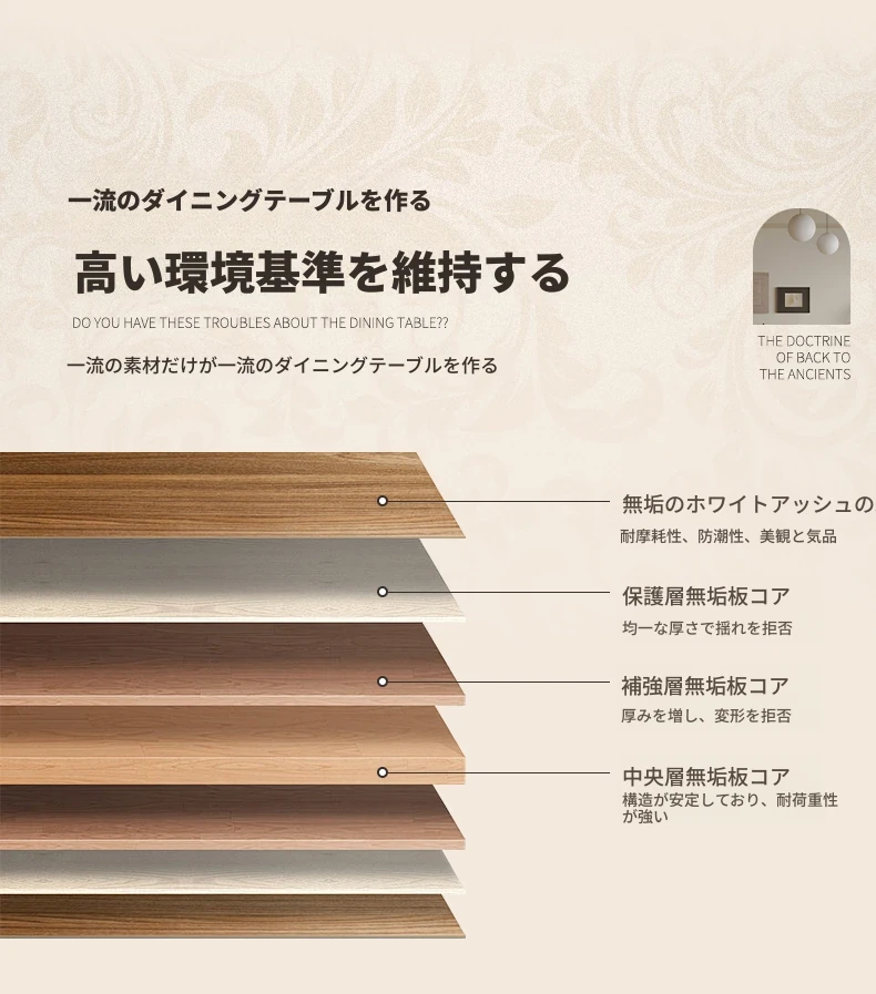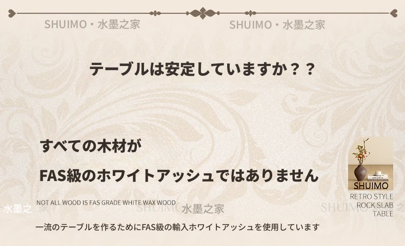 1.8メートルのホワイトアッシュ無垢材ダイニングテーブル【高級デリフォン洞石優等板】