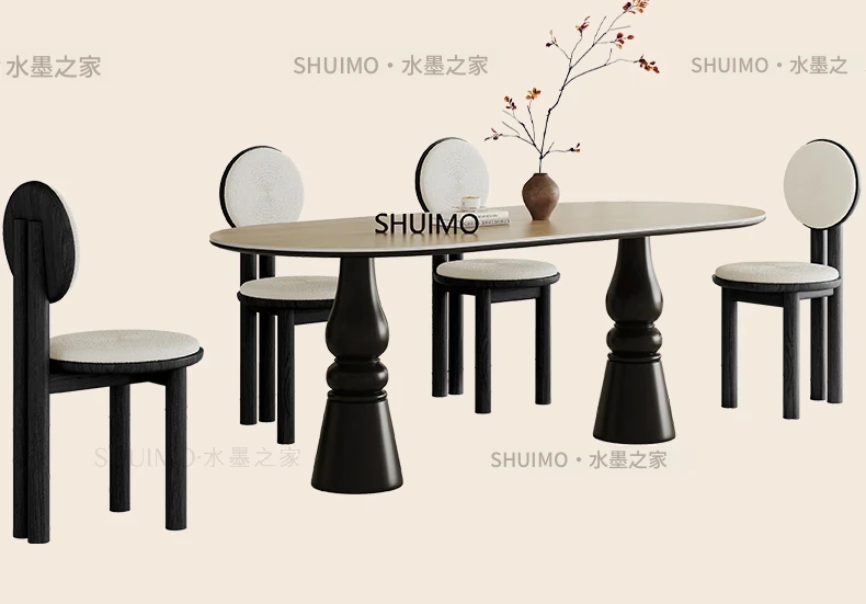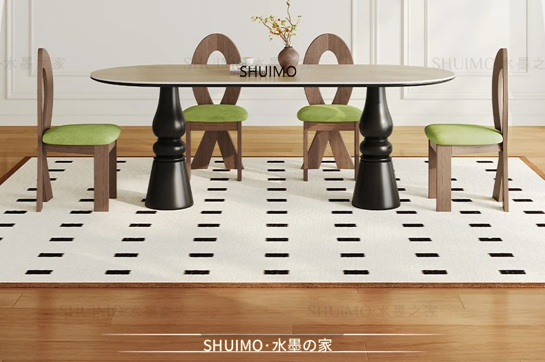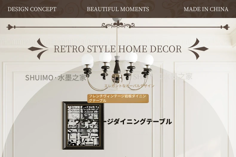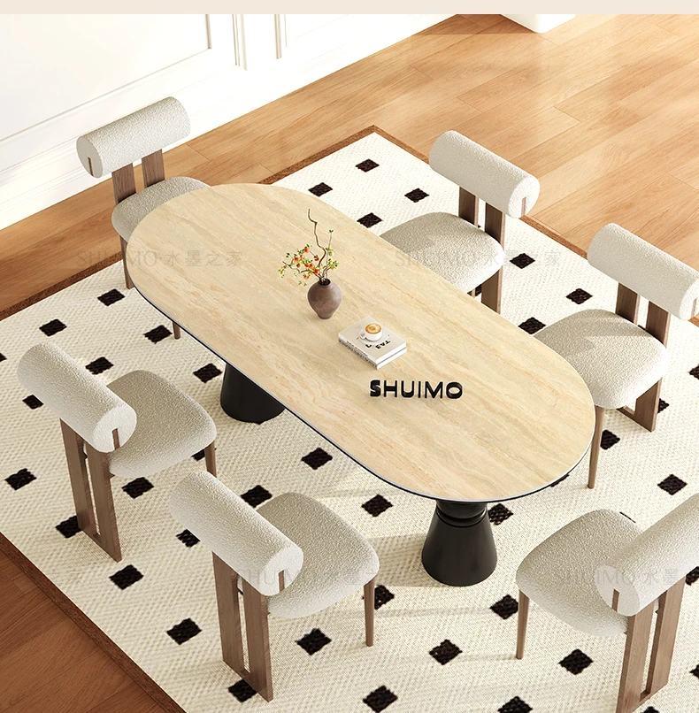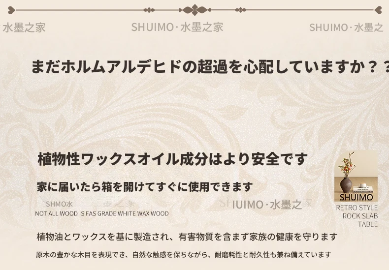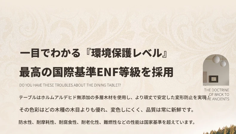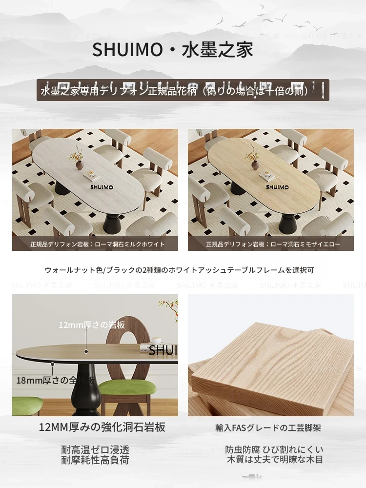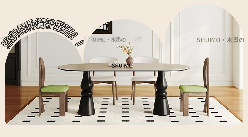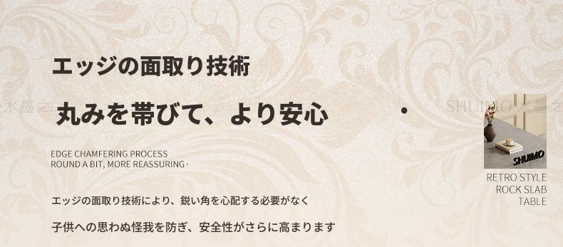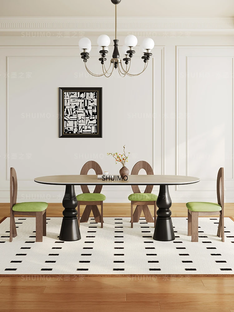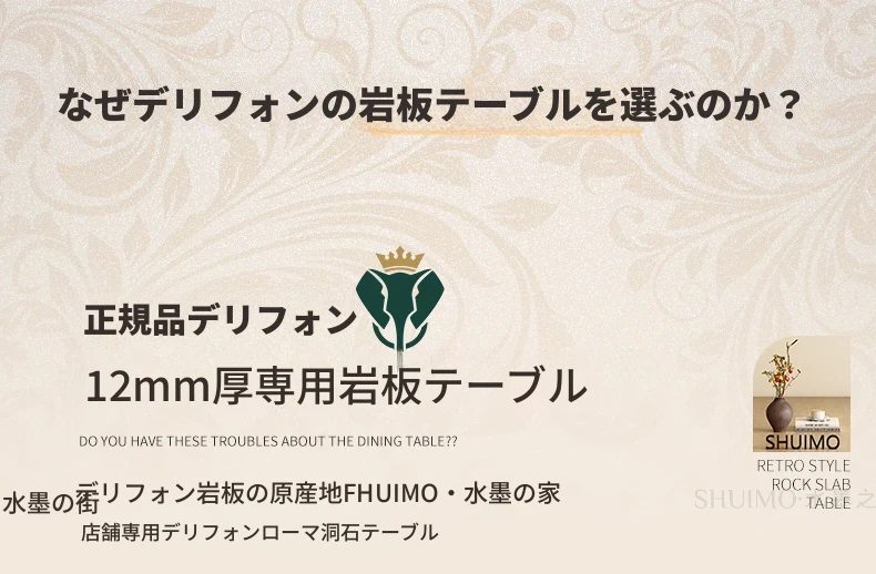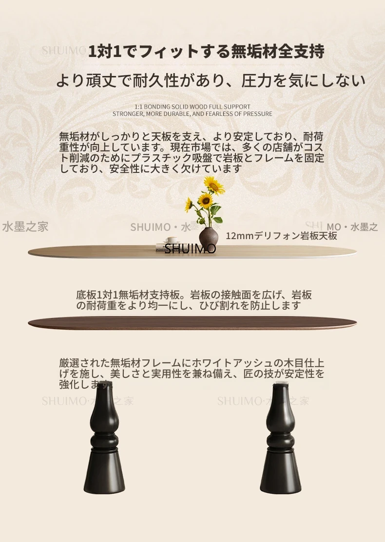 レトロな無垢材デザイン、フレンチアンティークスタイルの長方形ダイニングテーブル。高級感あふれる岩板素材使用、家族の団らんやおもてなしに最適!