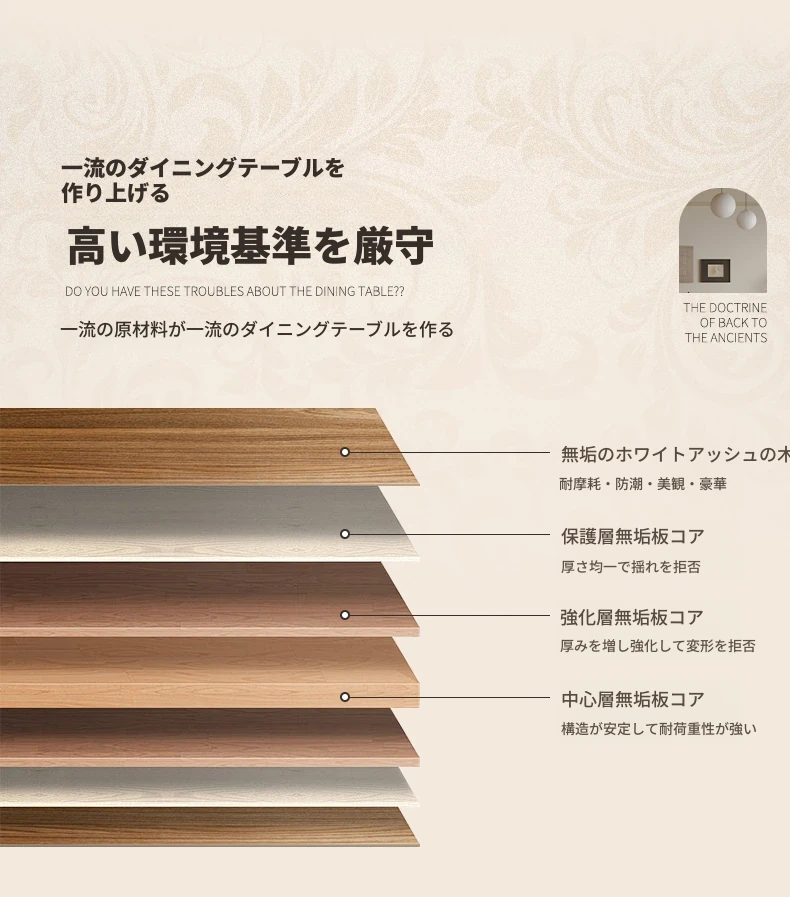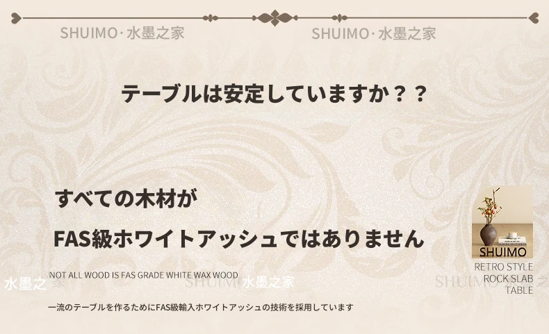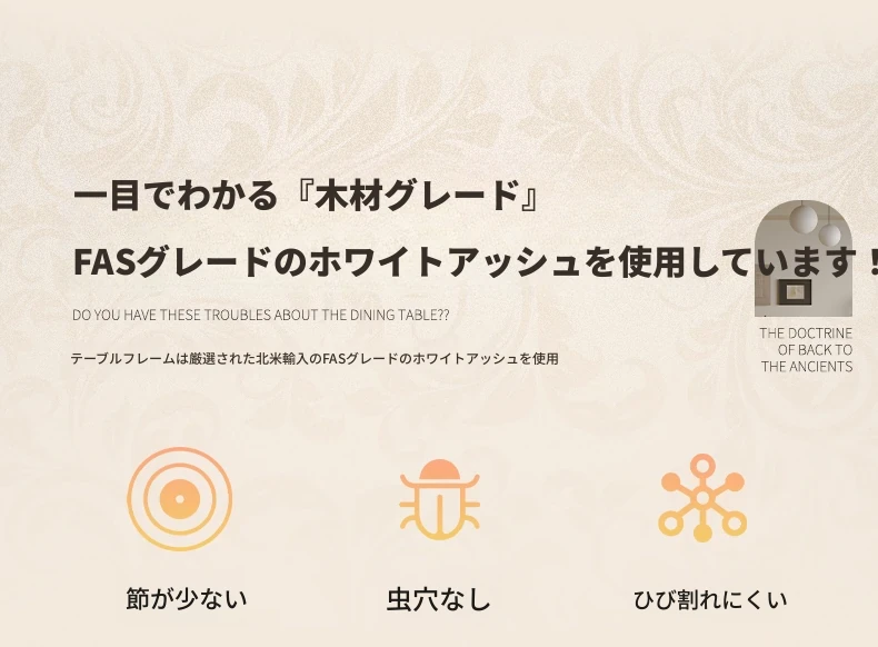 1.8メートルのホワイトアッシュ無垢材ダイニングテーブル【高級デリフォン洞石優等板】