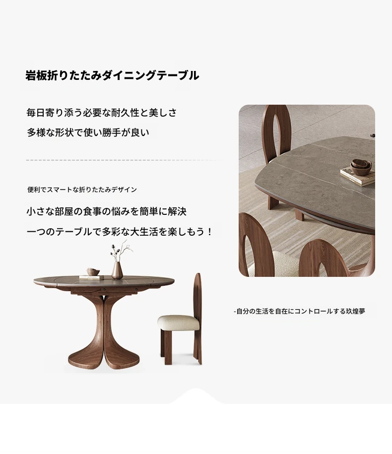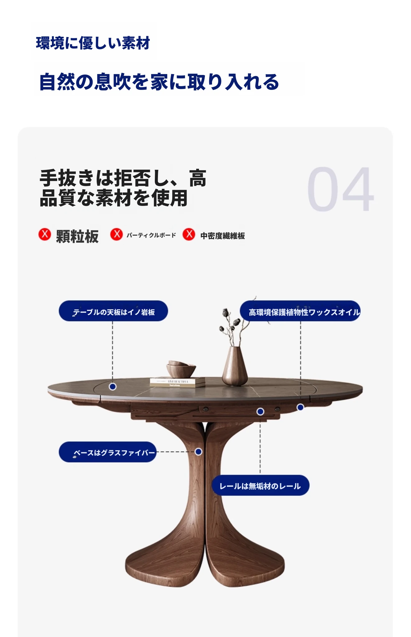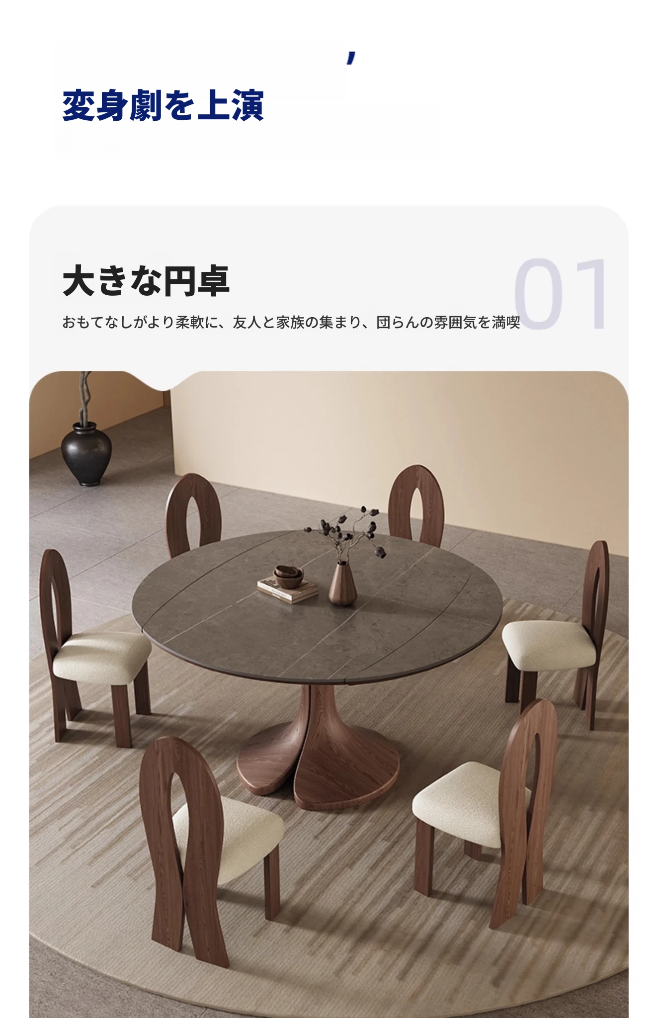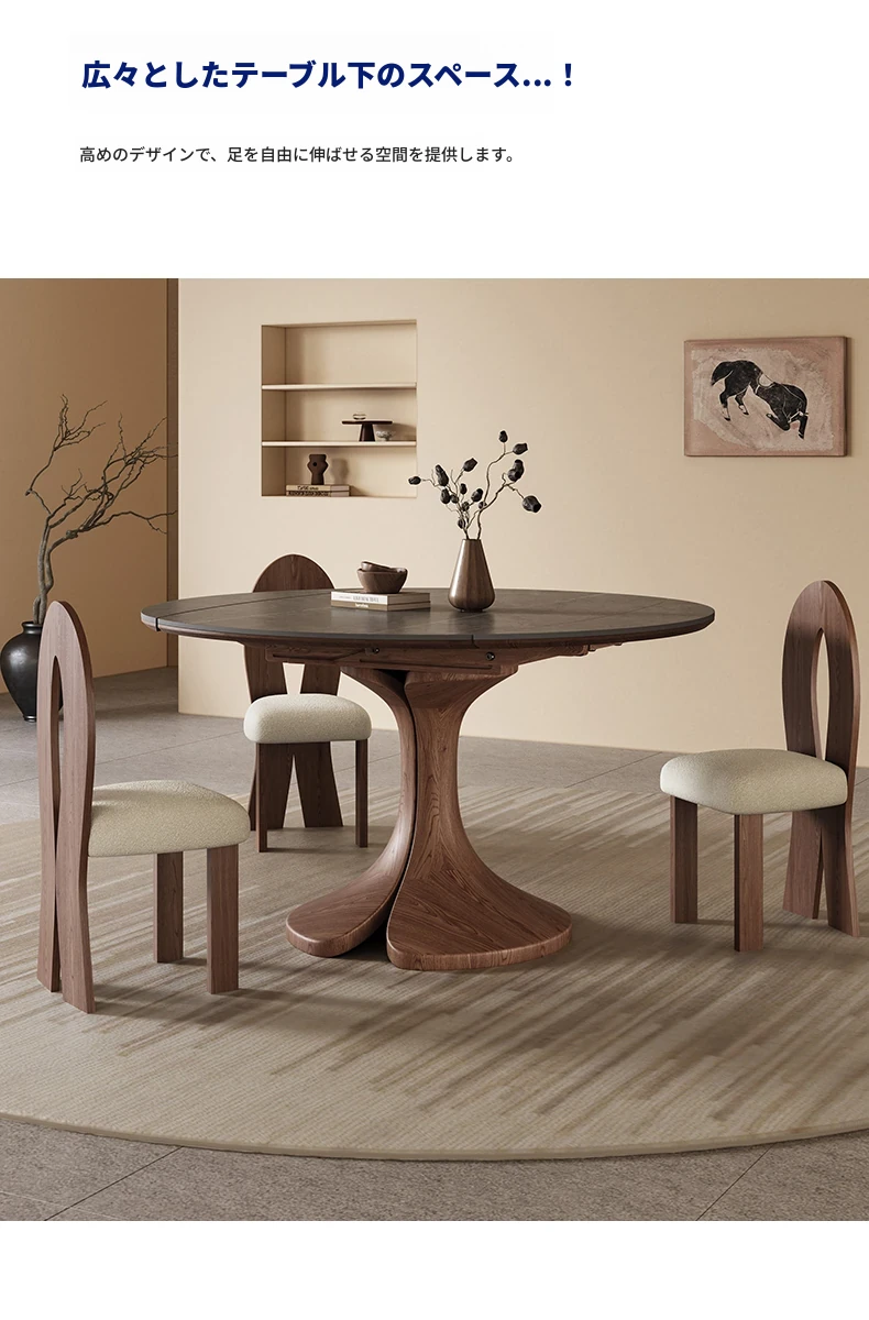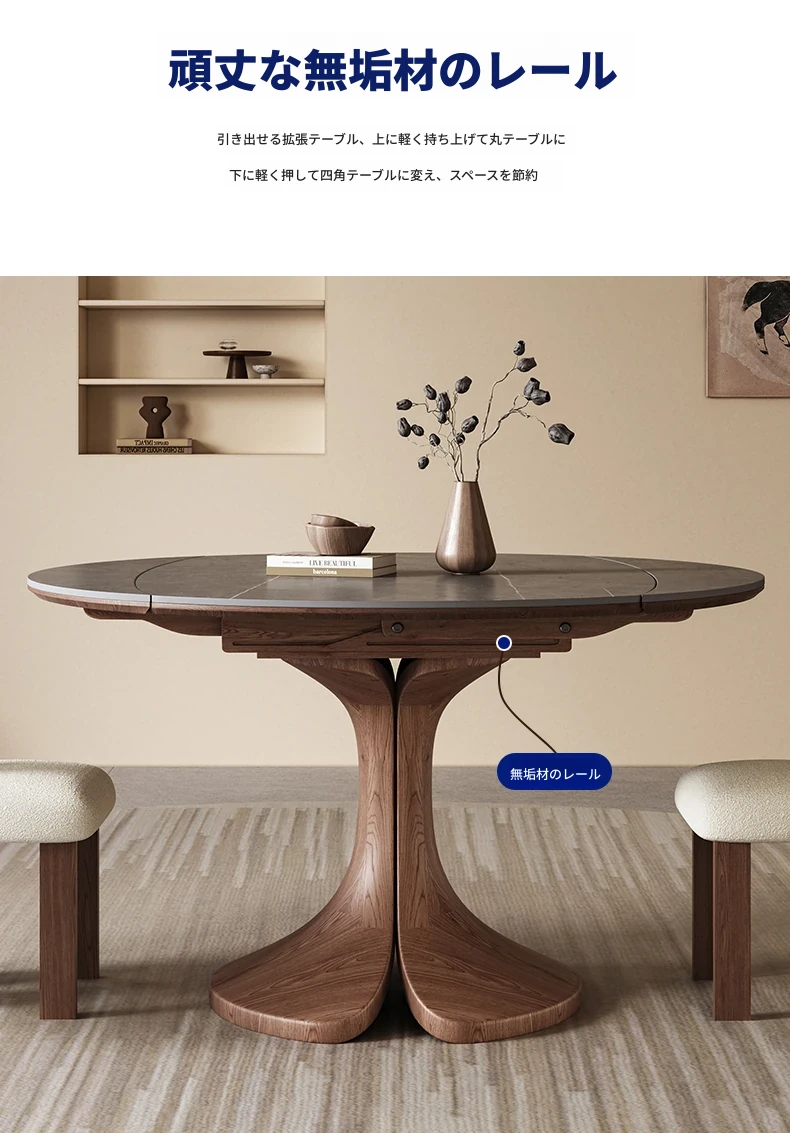 侘寂風デザインの伸縮式ラウンドテーブル - 高級感あふれる折りたたみ式、2025年新作!洗練されたスタイルで、どんなインテリアにもマッチ。食事の時間を特別に演出します。