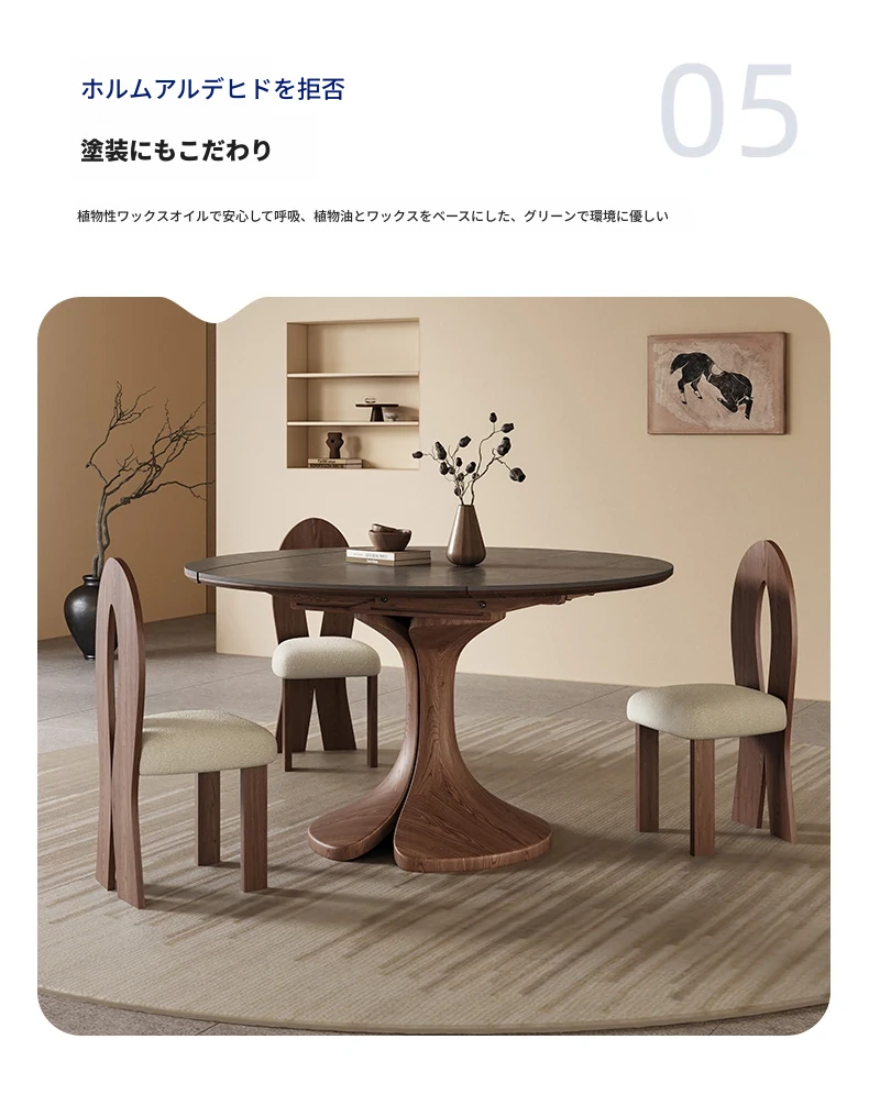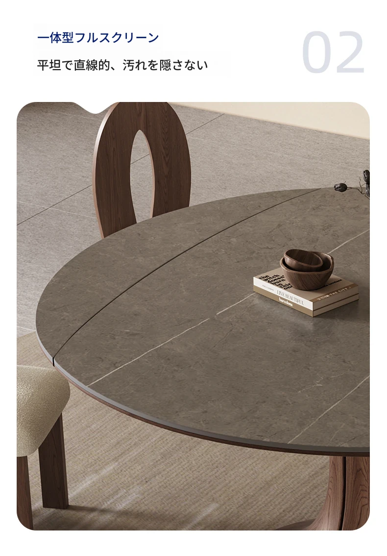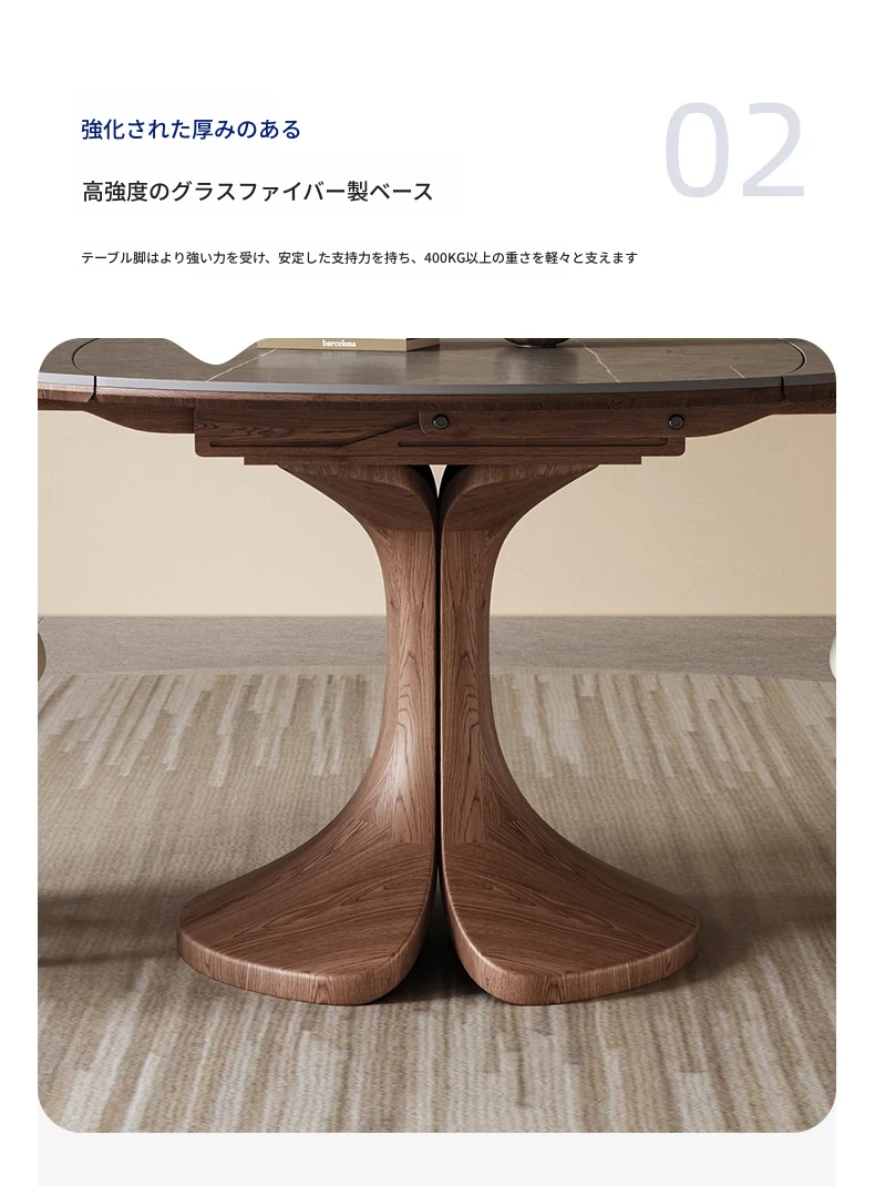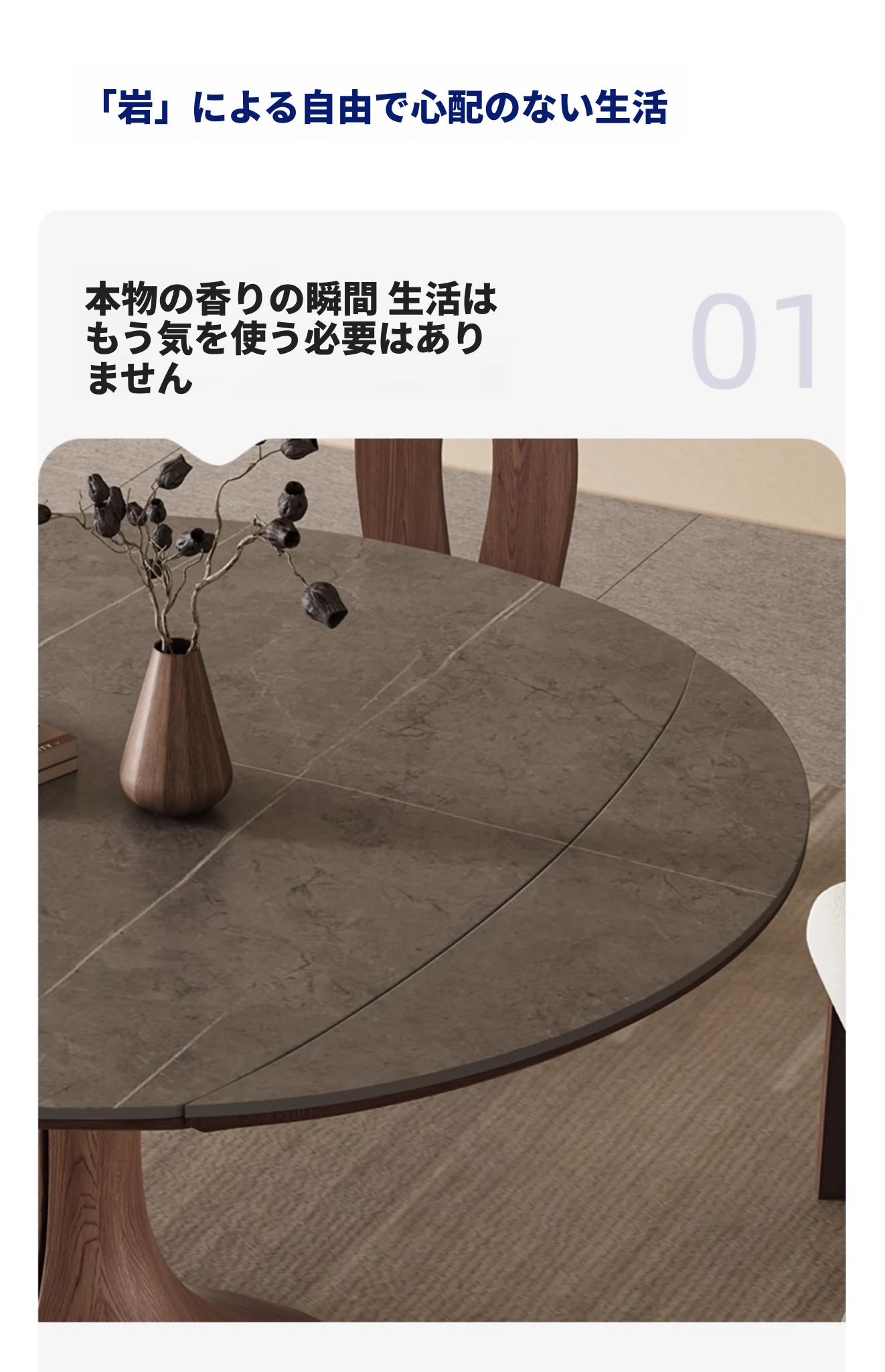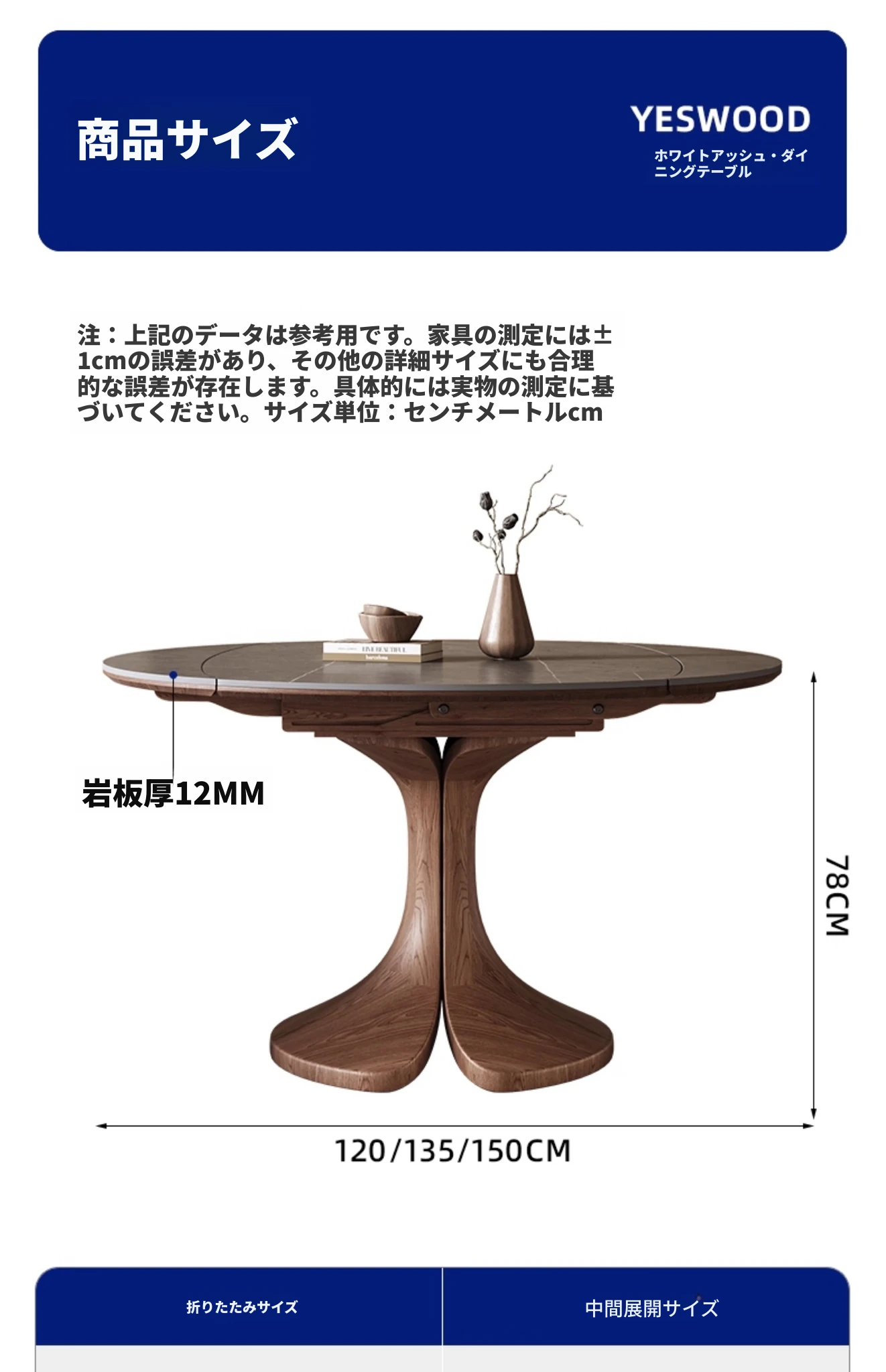 侘寂風デザインの伸縮式ラウンドテーブル - 高級感あふれる折りたたみ式、2025年新作!洗練されたスタイルで、どんなインテリアにもマッチ。食事の時間を特別に演出します。