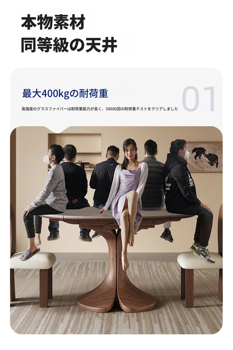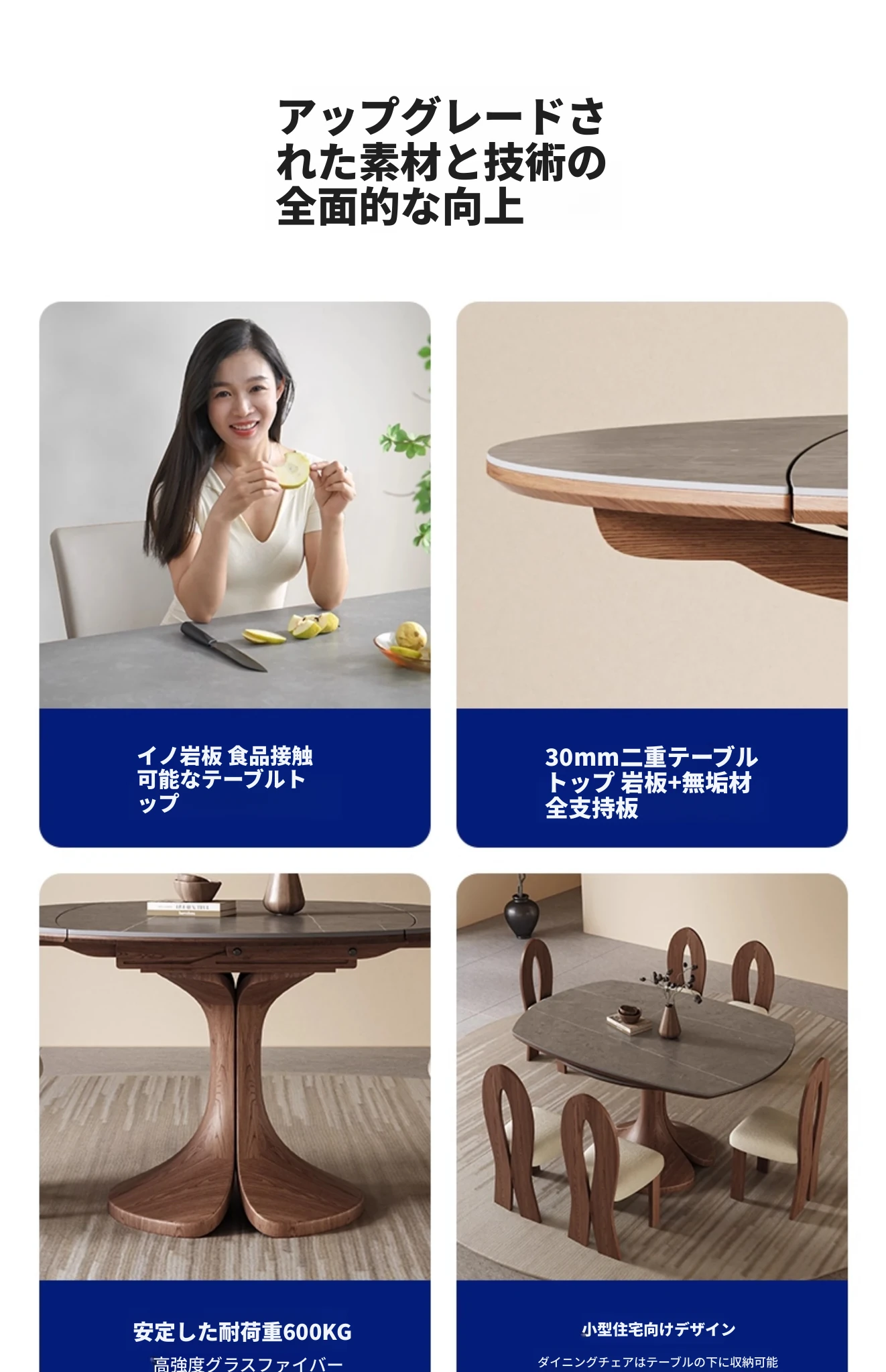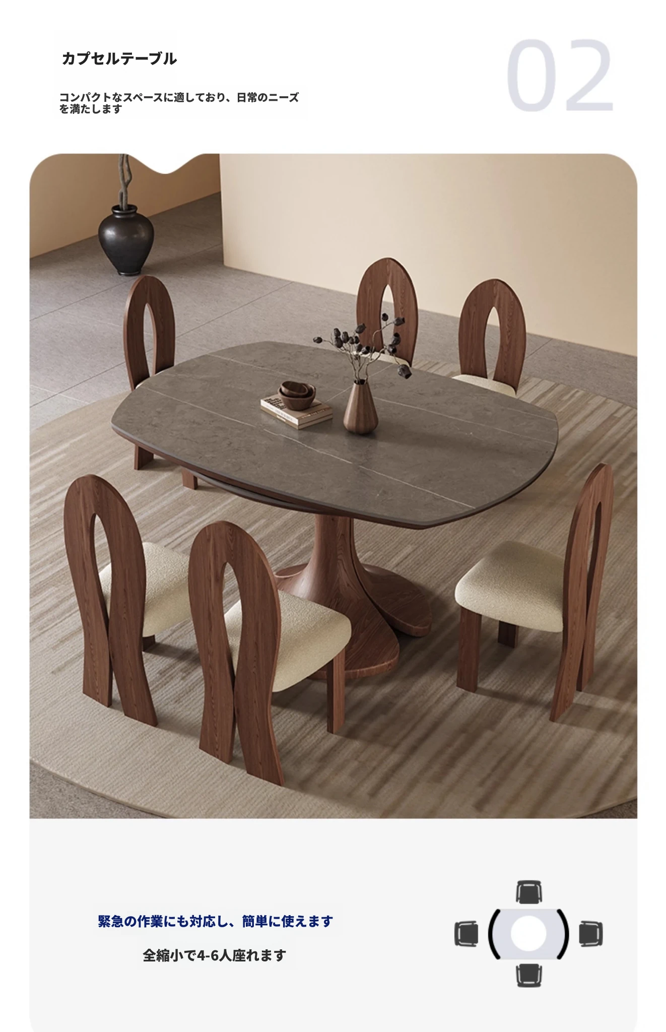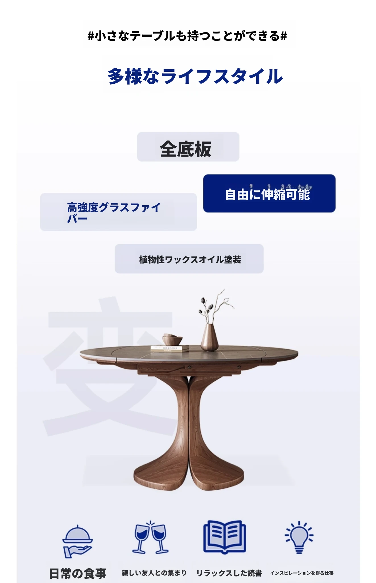 侘寂風デザインの伸縮式ラウンドテーブル - 高級感あふれる折りたたみ式、2025年新作!洗練されたスタイルで、どんなインテリアにもマッチ。食事の時間を特別に演出します。