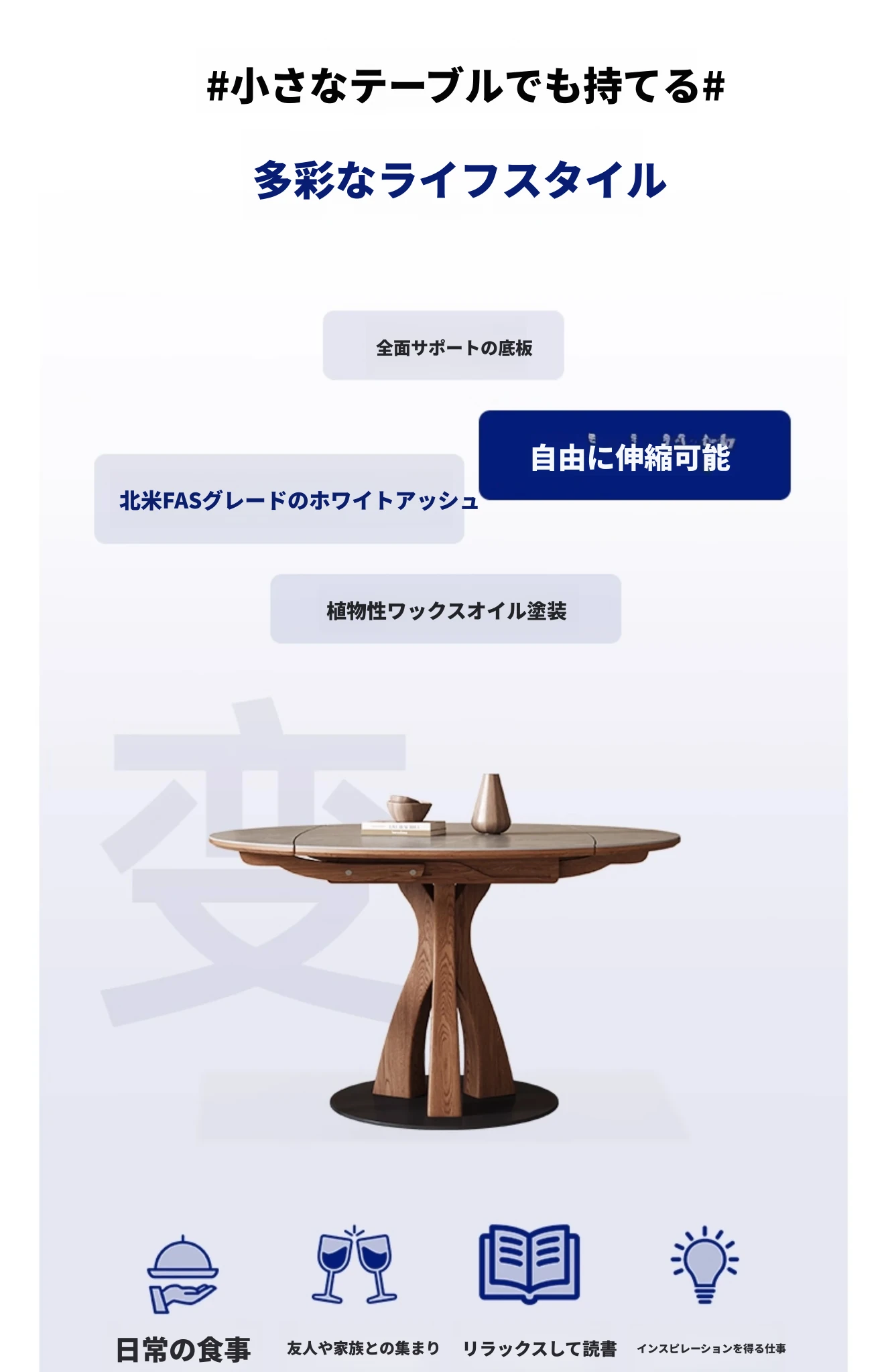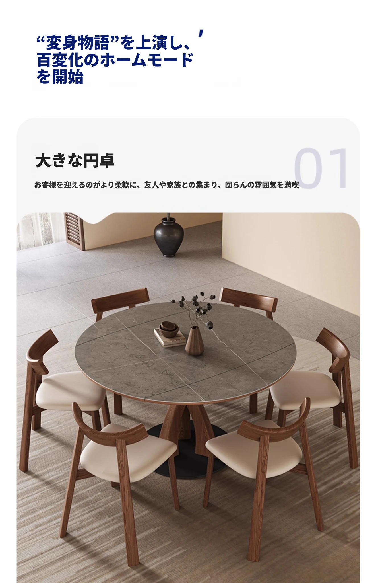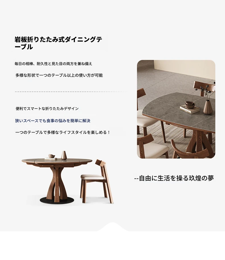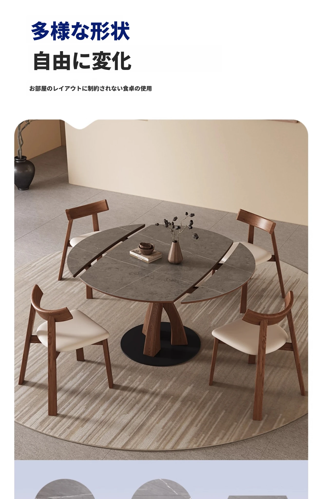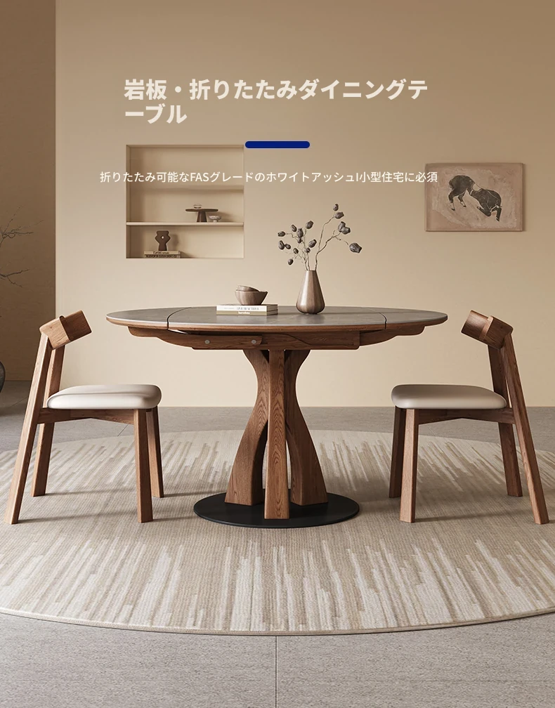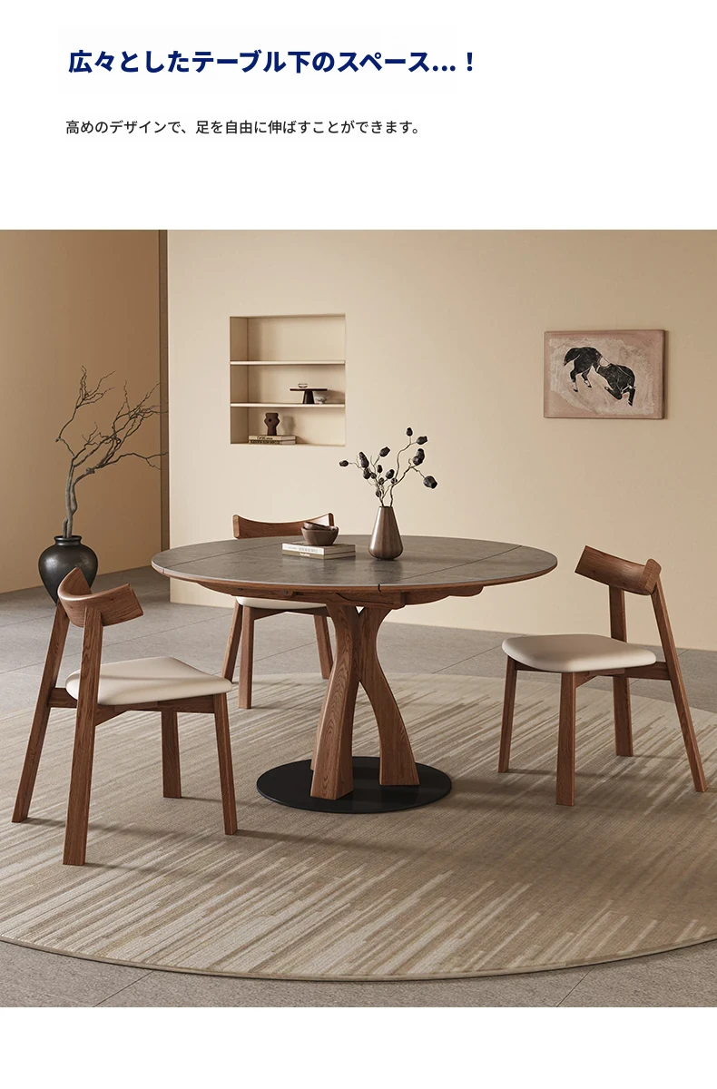 和の美を感じる侘寂風デザインの伸縮式ラウンドテーブル。高級感あふれる折りたたみ可能な円形テーブルで、2025年の新作。おしゃれな空間を演出し、使い勝手も抜群!