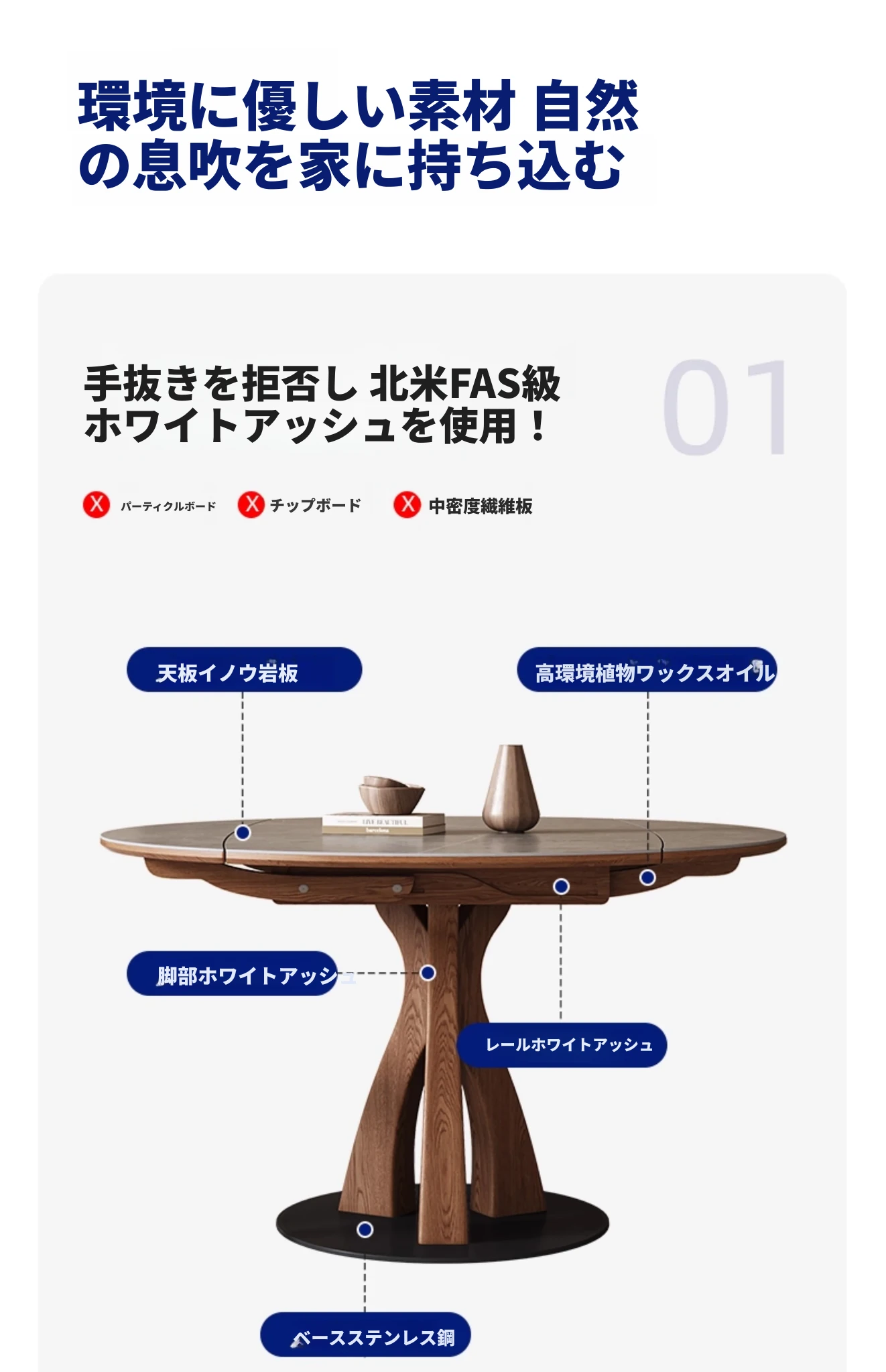 1.35メートル+6椅子【フラッグシップ版ホワイトアッシュ】