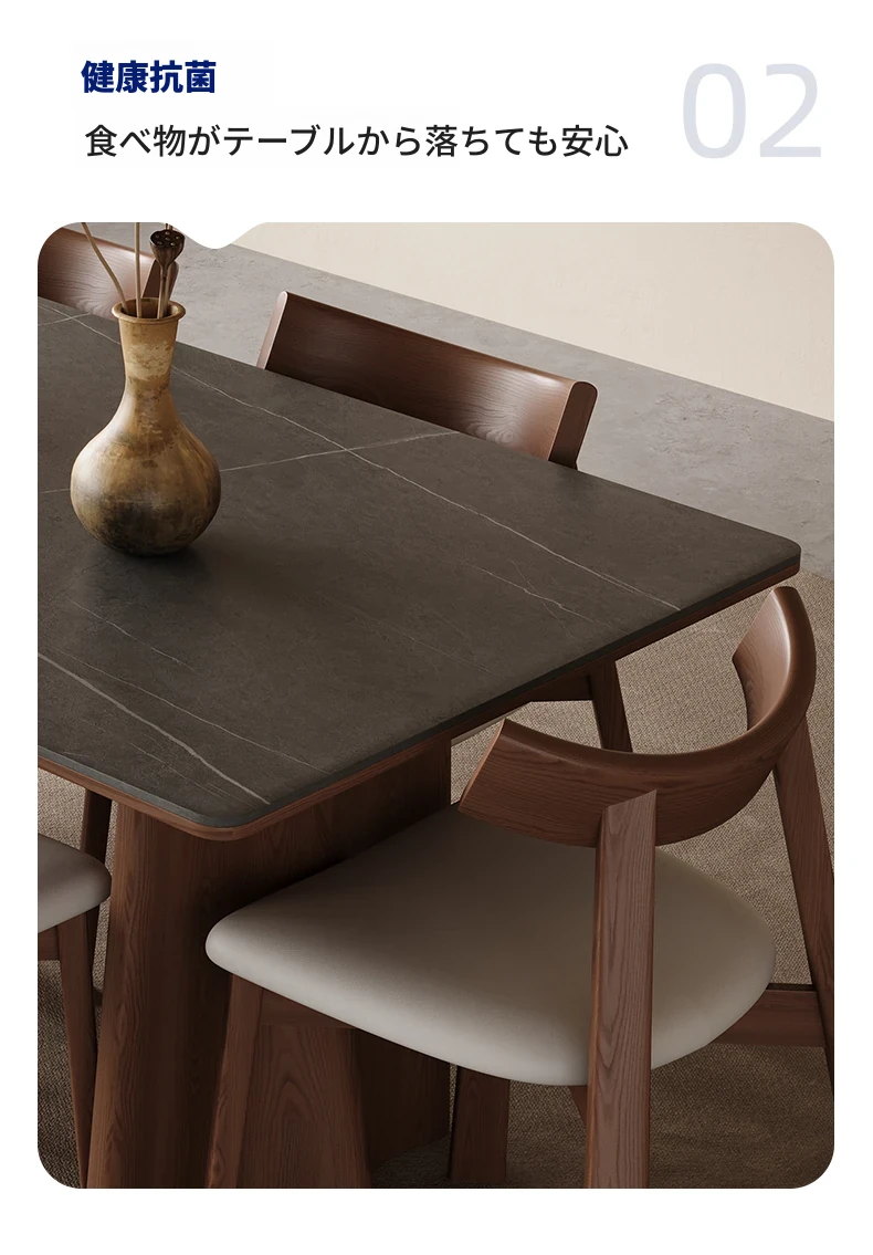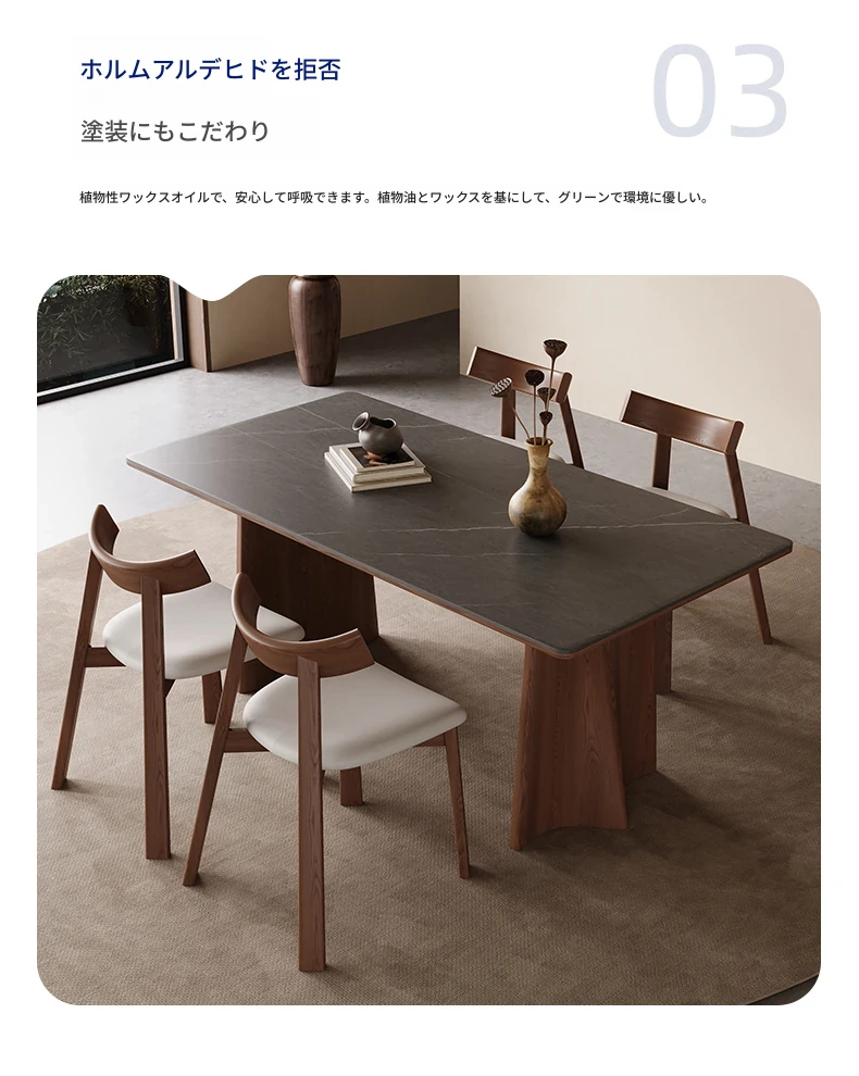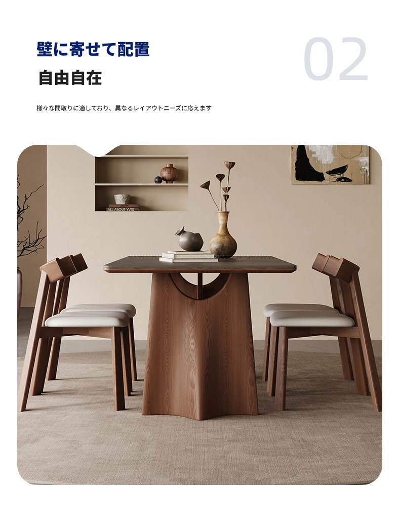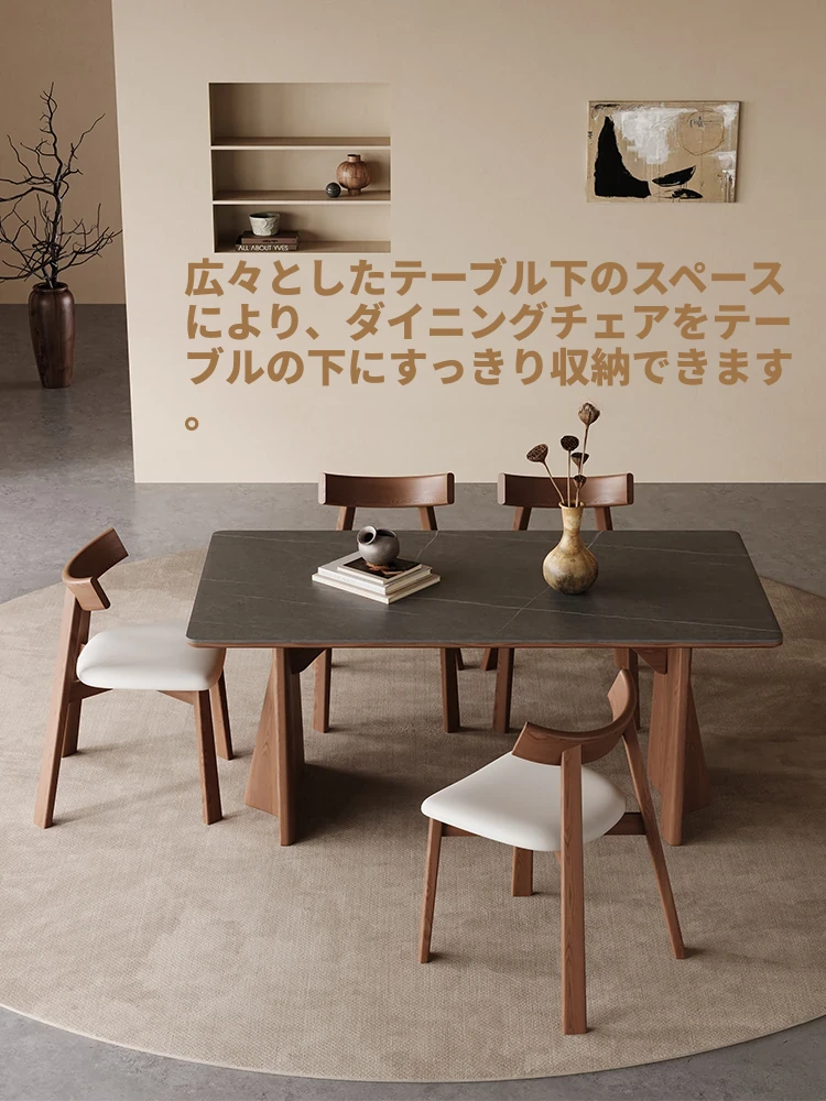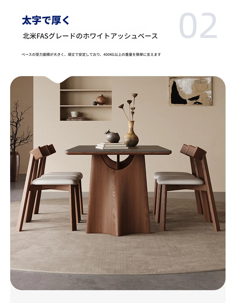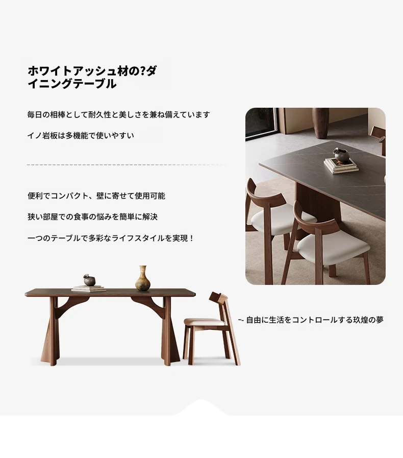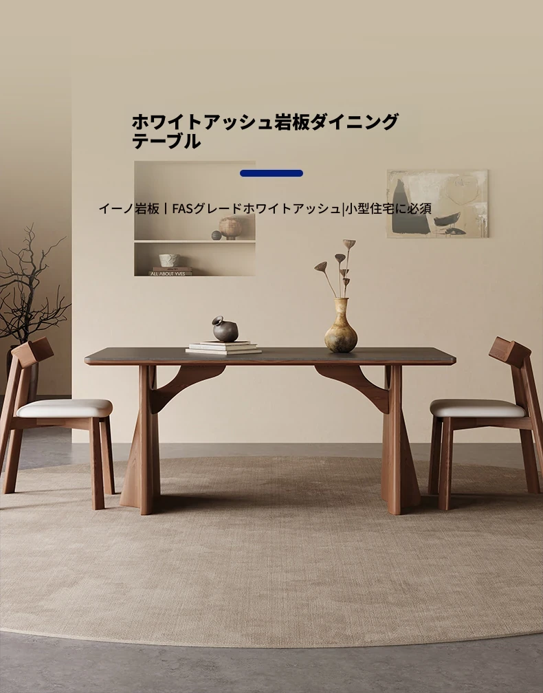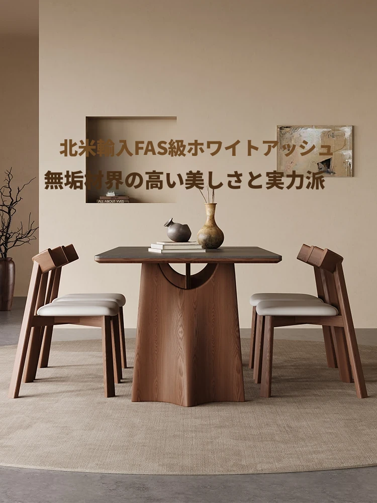 侘寂風の実木製ロックボードダイニングテーブル - 家庭用小型白アッシュ材、モダンでシンプルな長方形デザイン、デザイナーセレクション!おしゃれな空間を演出し、食事のひとときを特別にします。