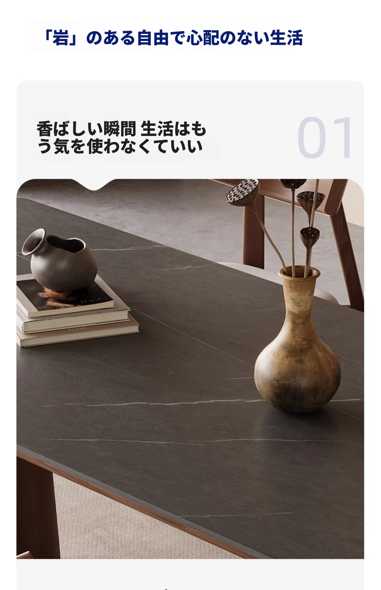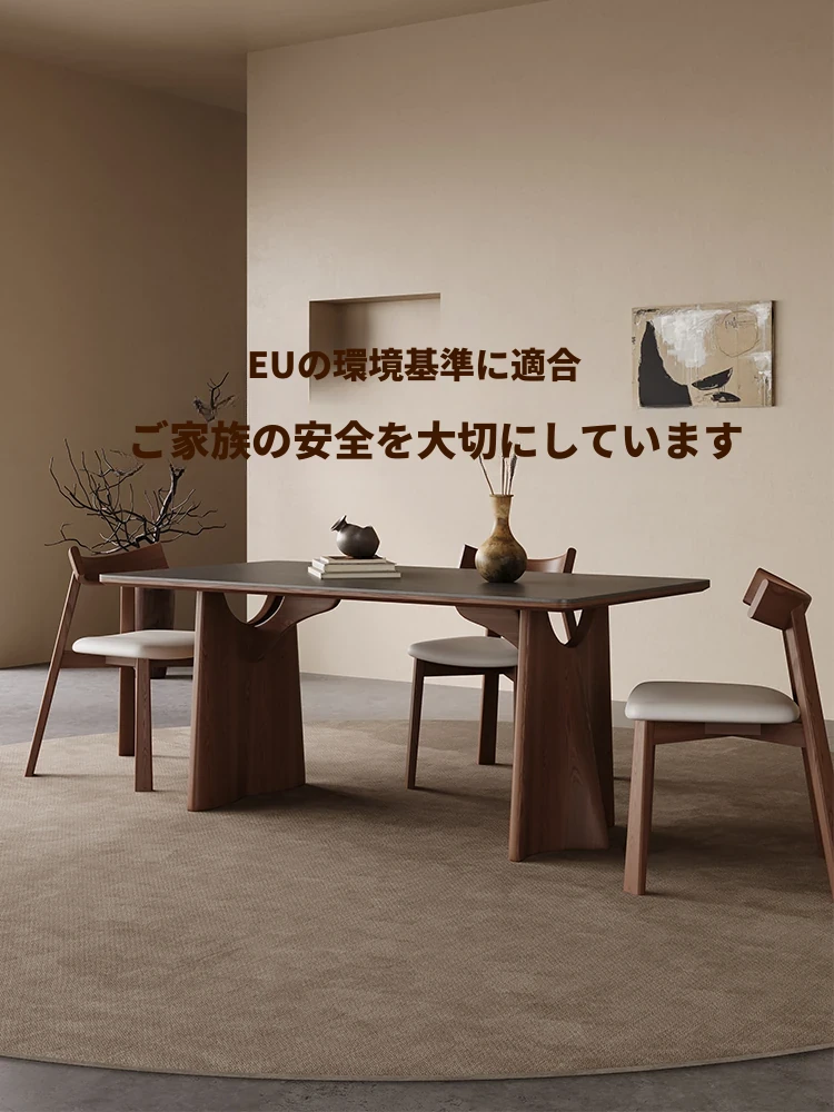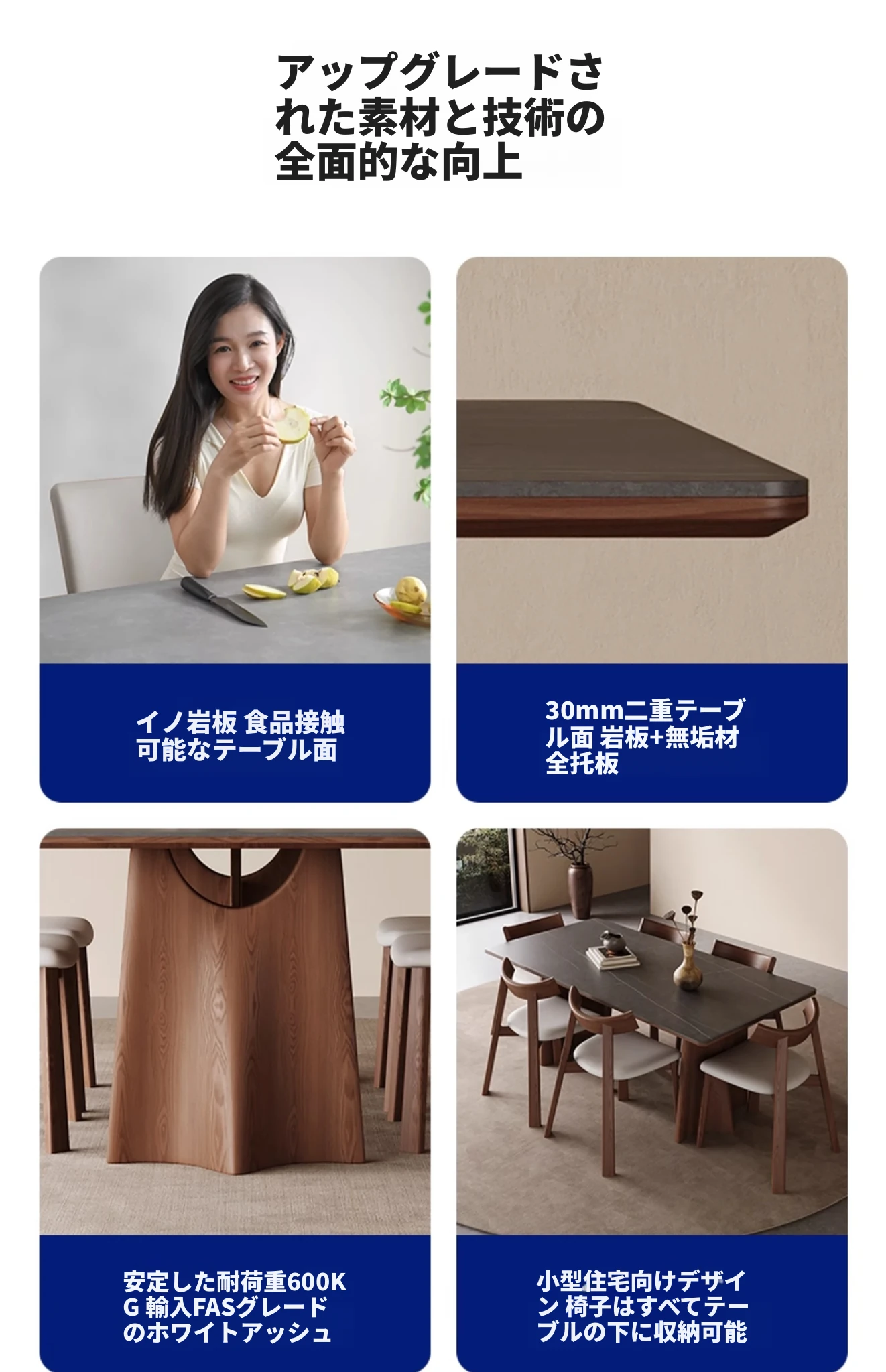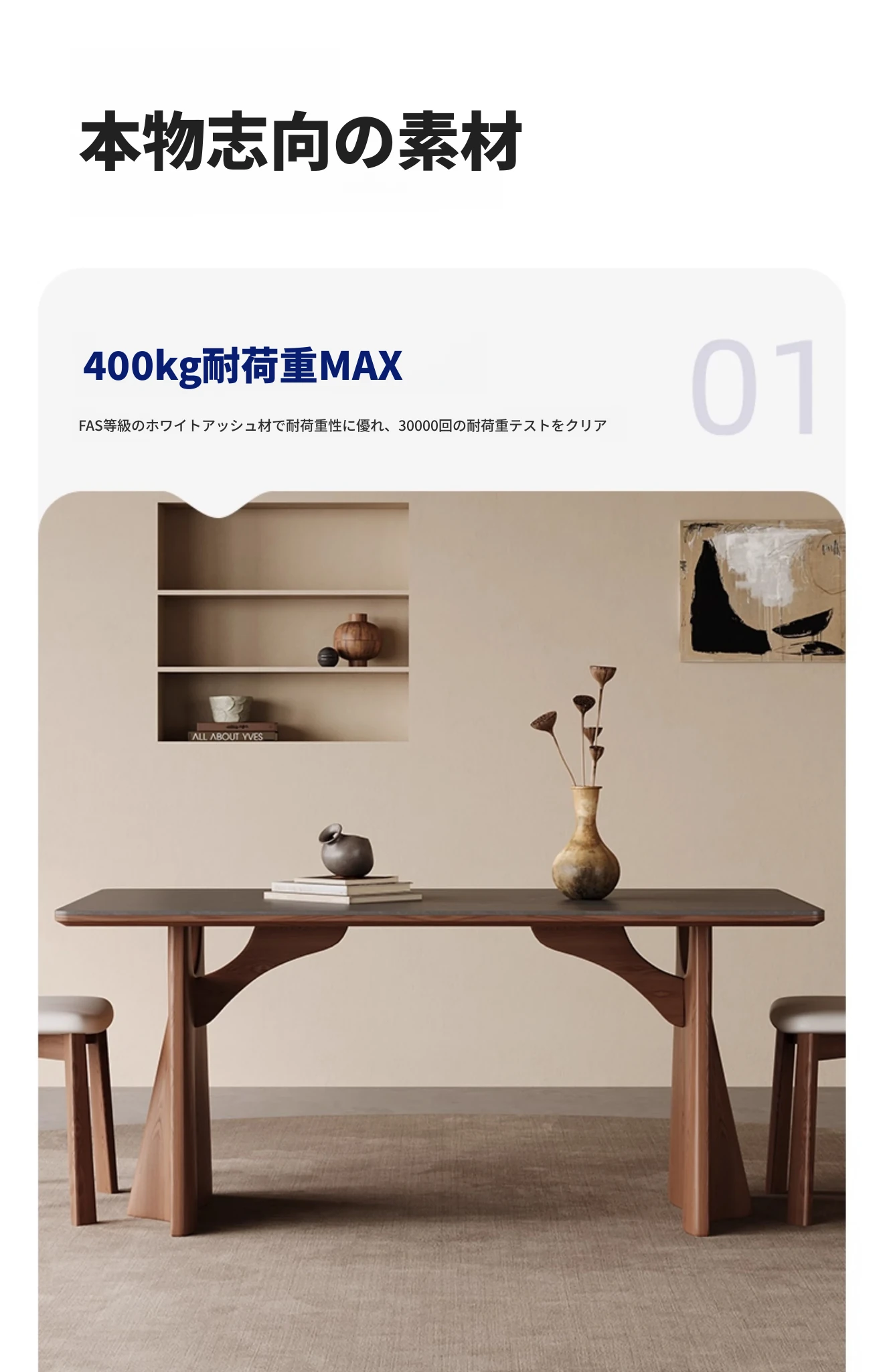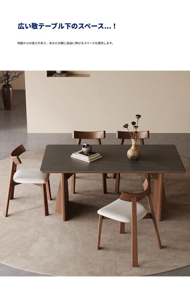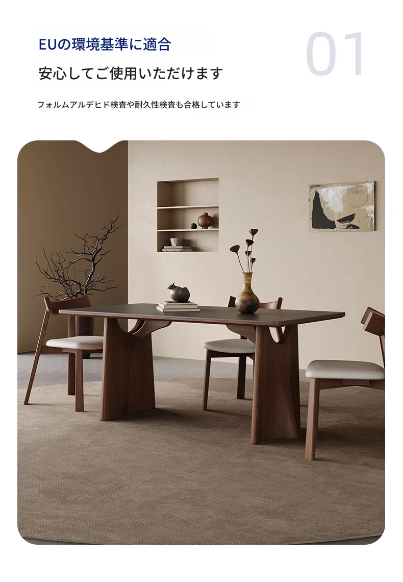 侘寂風の実木製ロックボードダイニングテーブル - 家庭用小型白アッシュ材、モダンでシンプルな長方形デザイン、デザイナーセレクション!おしゃれな空間を演出し、食事のひとときを特別にします。
