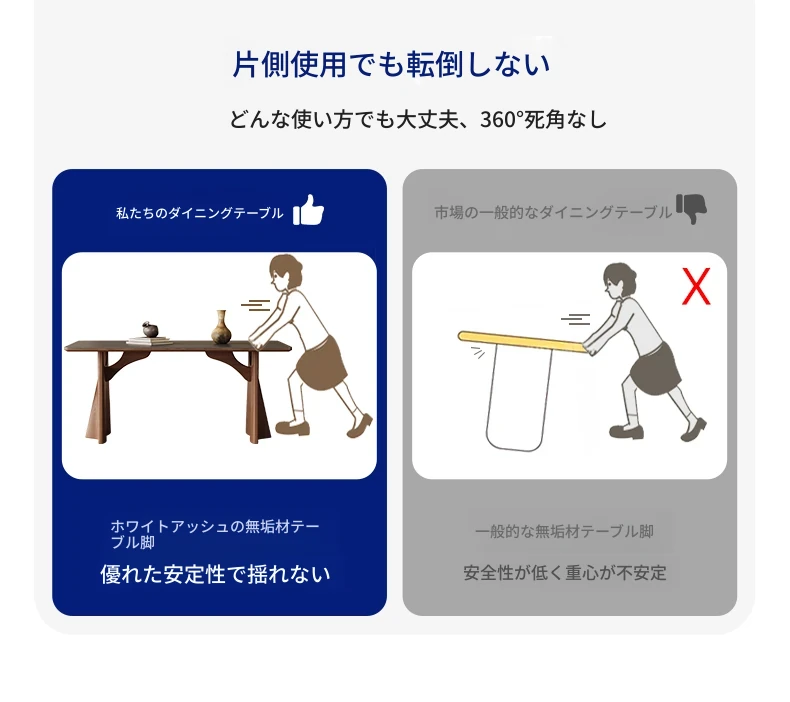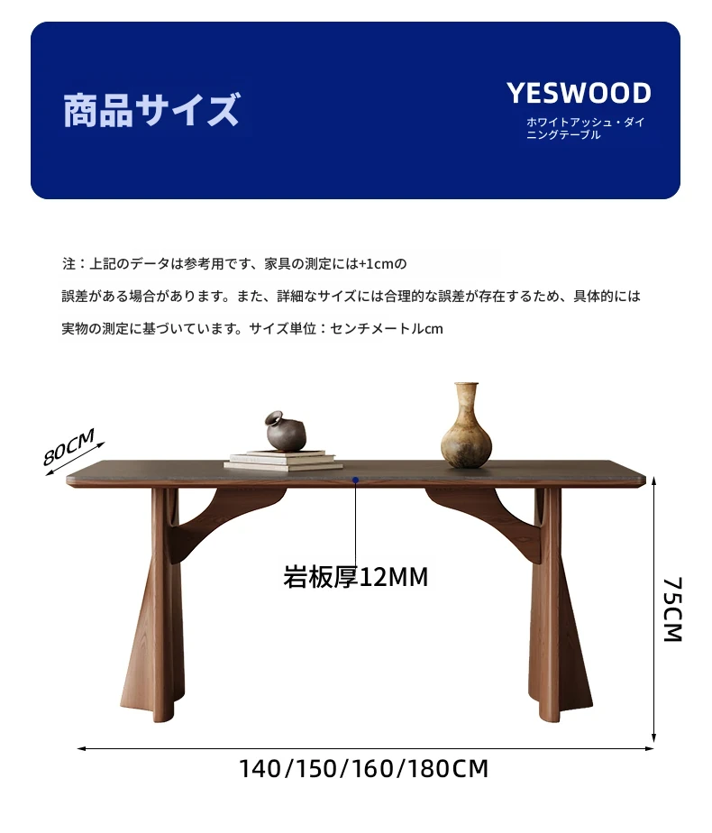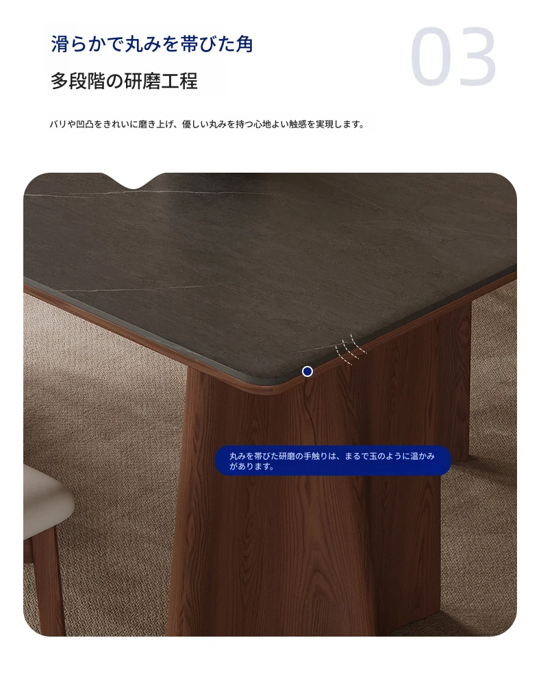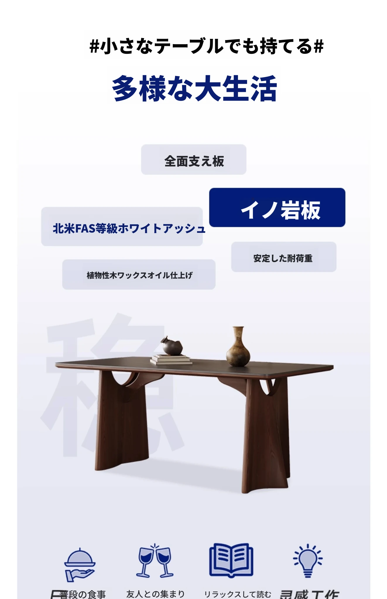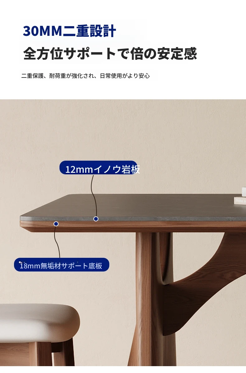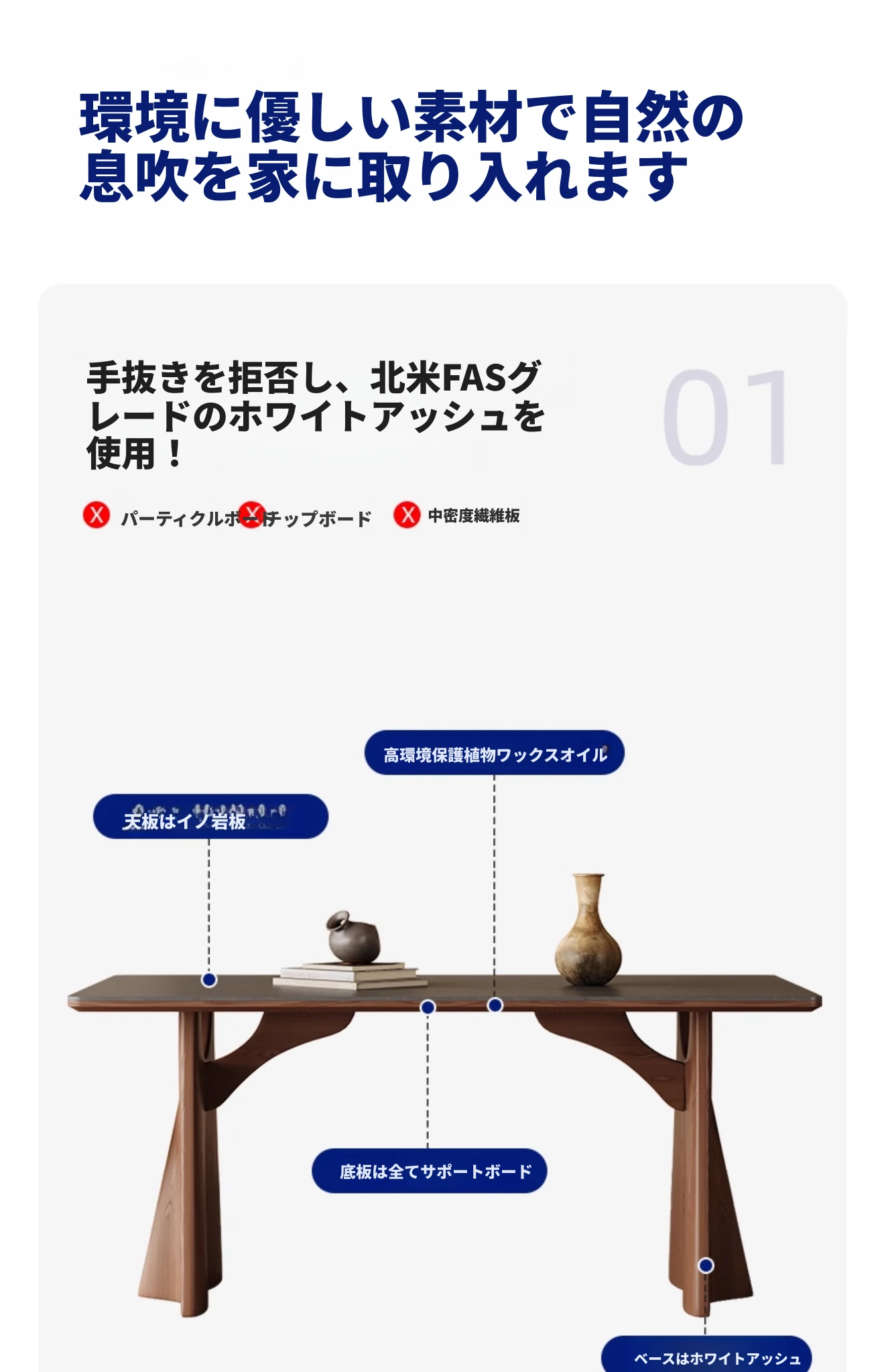 侘寂風の実木製ロックボードダイニングテーブル - 家庭用小型白アッシュ材、モダンでシンプルな長方形デザイン、デザイナーセレクション!おしゃれな空間を演出し、食事のひとときを特別にします。
