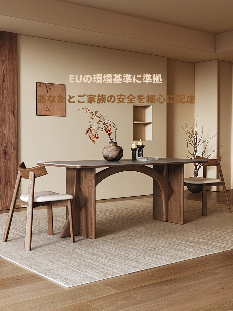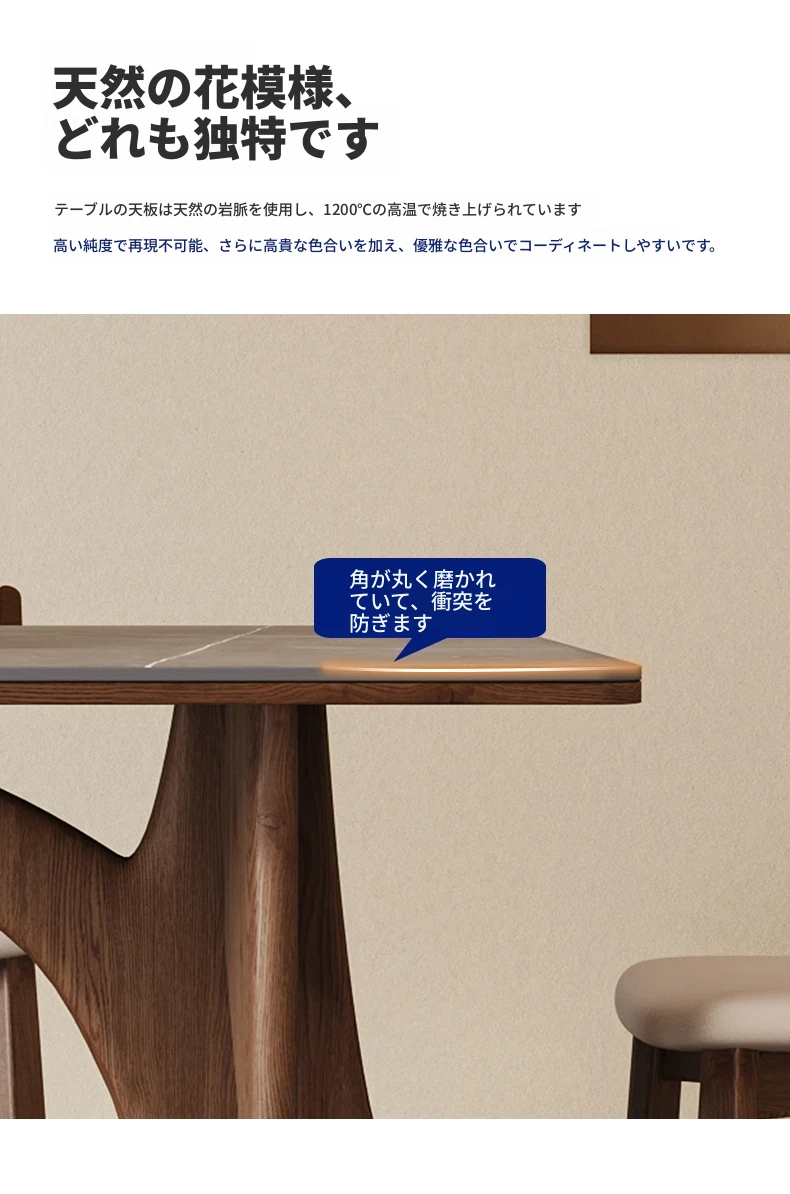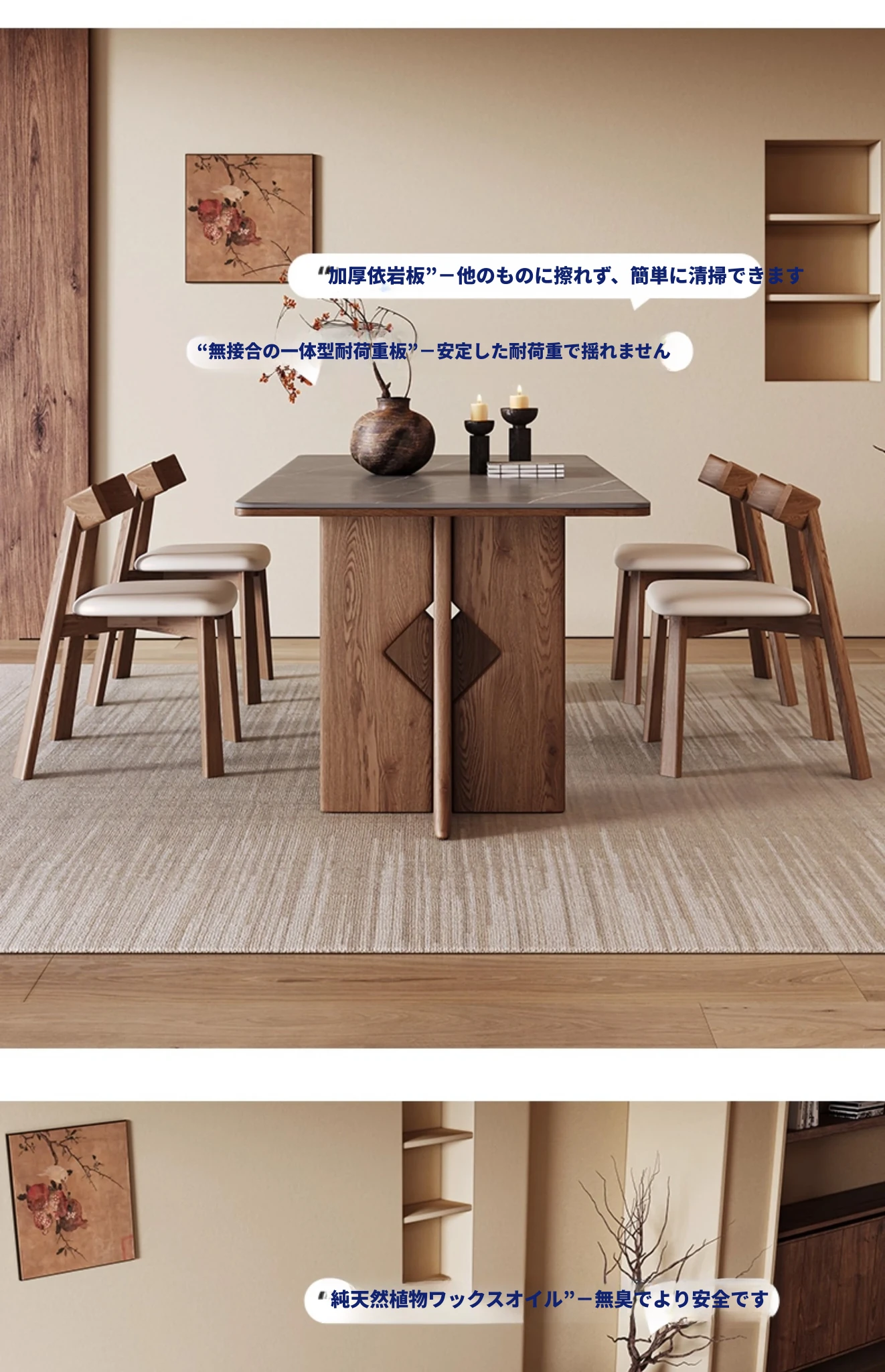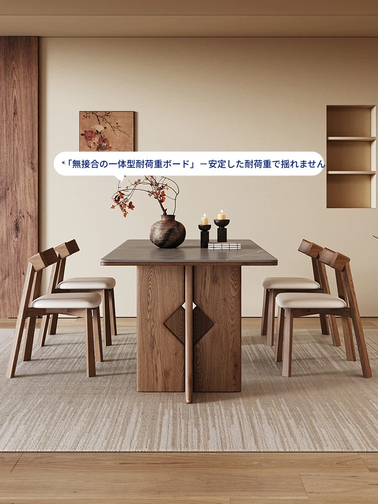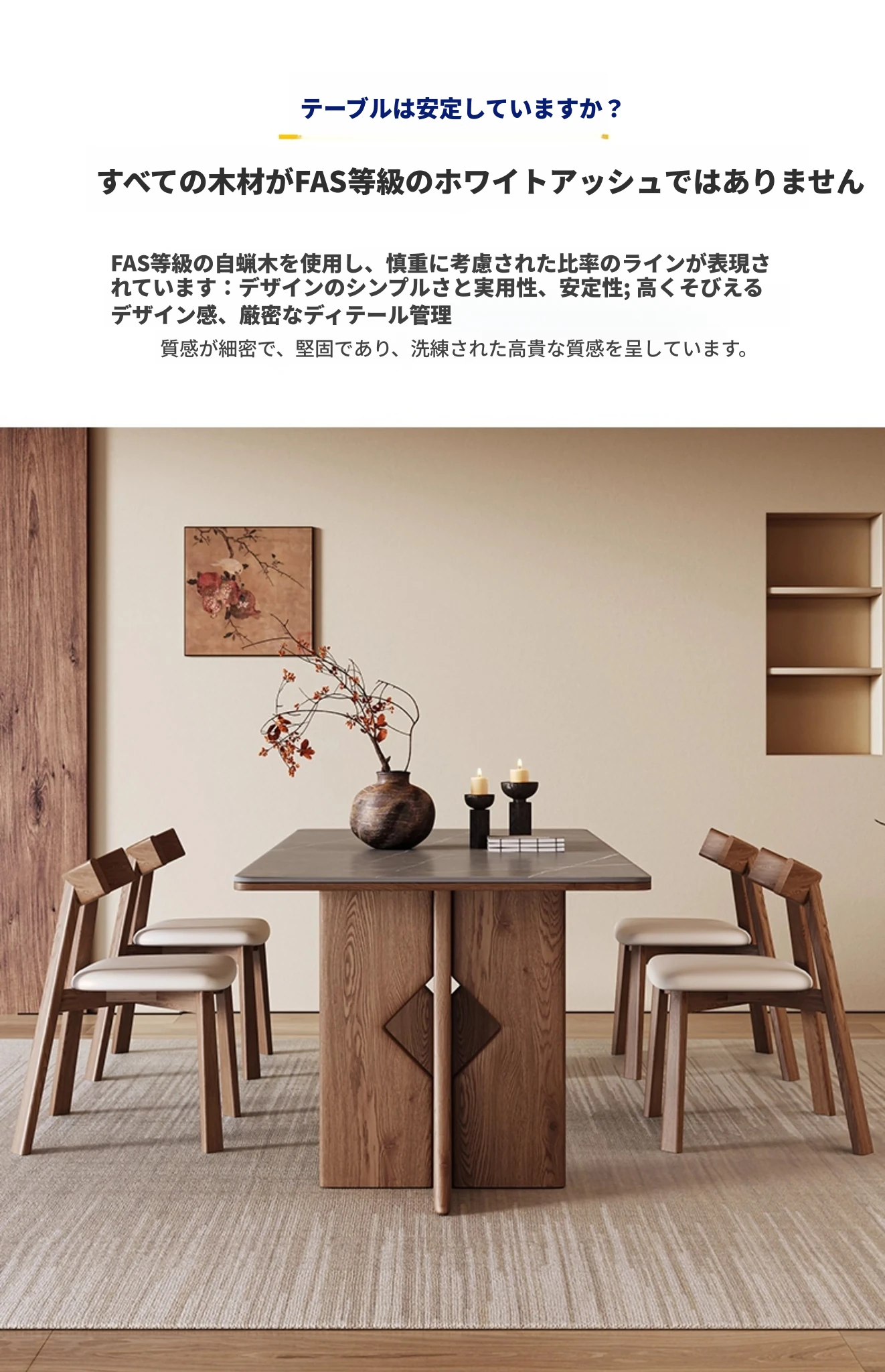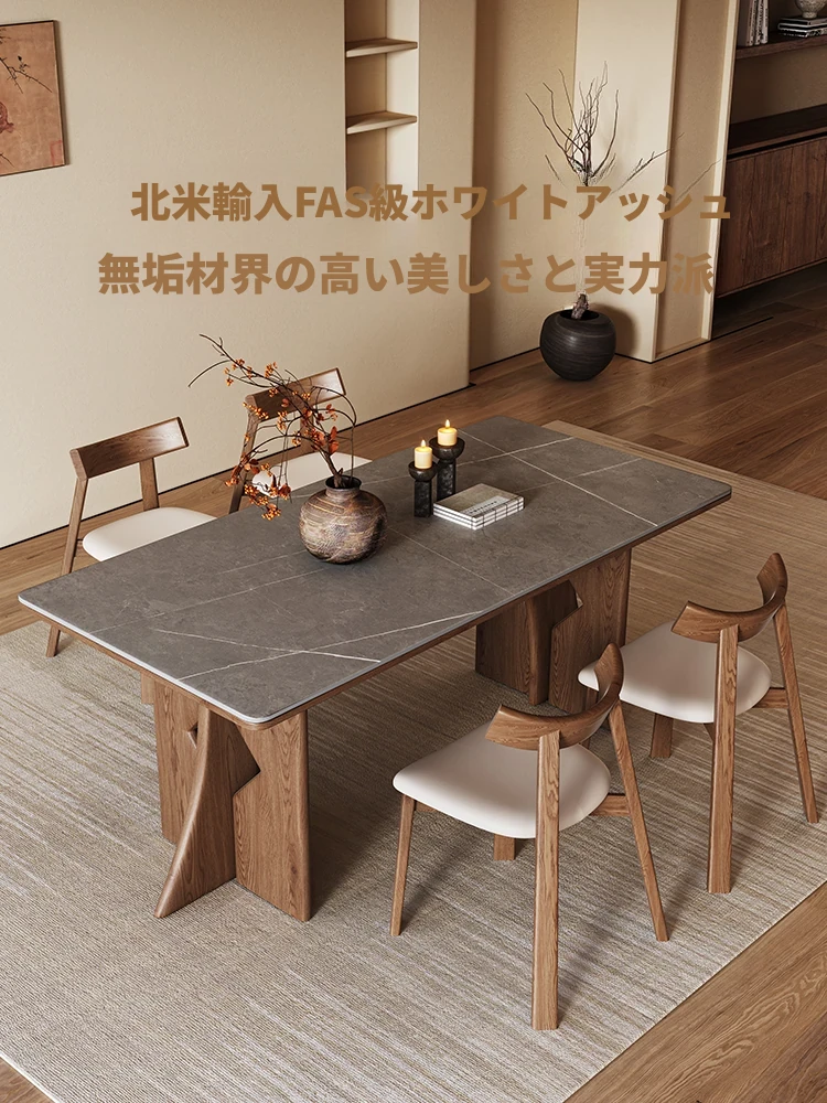 侘寂スタイルの無垢材ロックボードダイニングテーブル&チェアセット - ホワイトアッシュとウォールナットの現代的でシンプルなデザイン、2025年モデル。おしゃれで機能的な食卓を演出します!