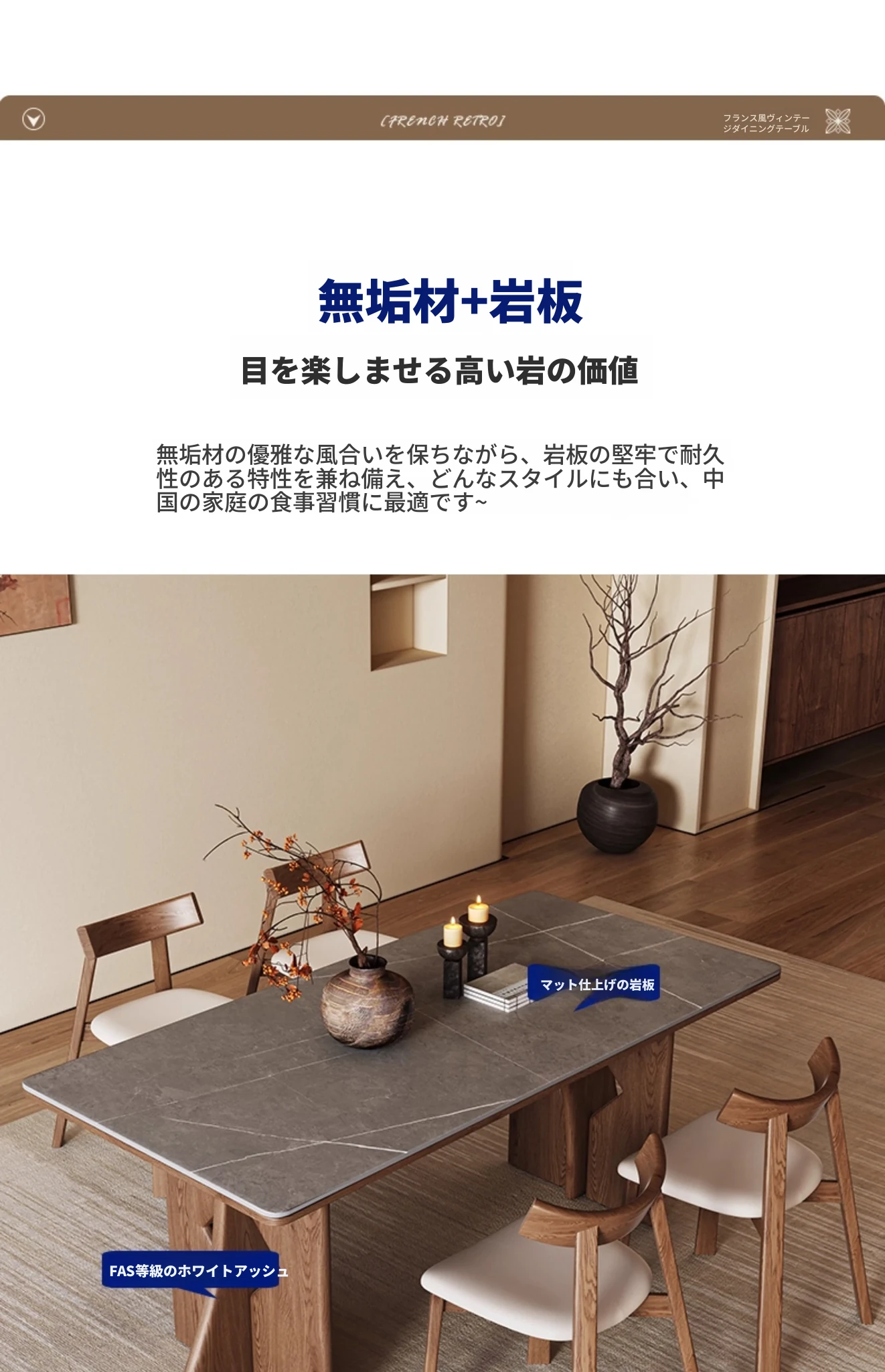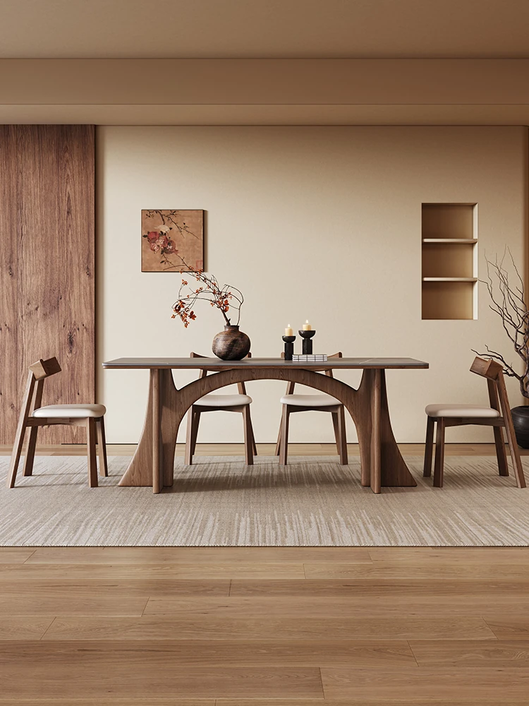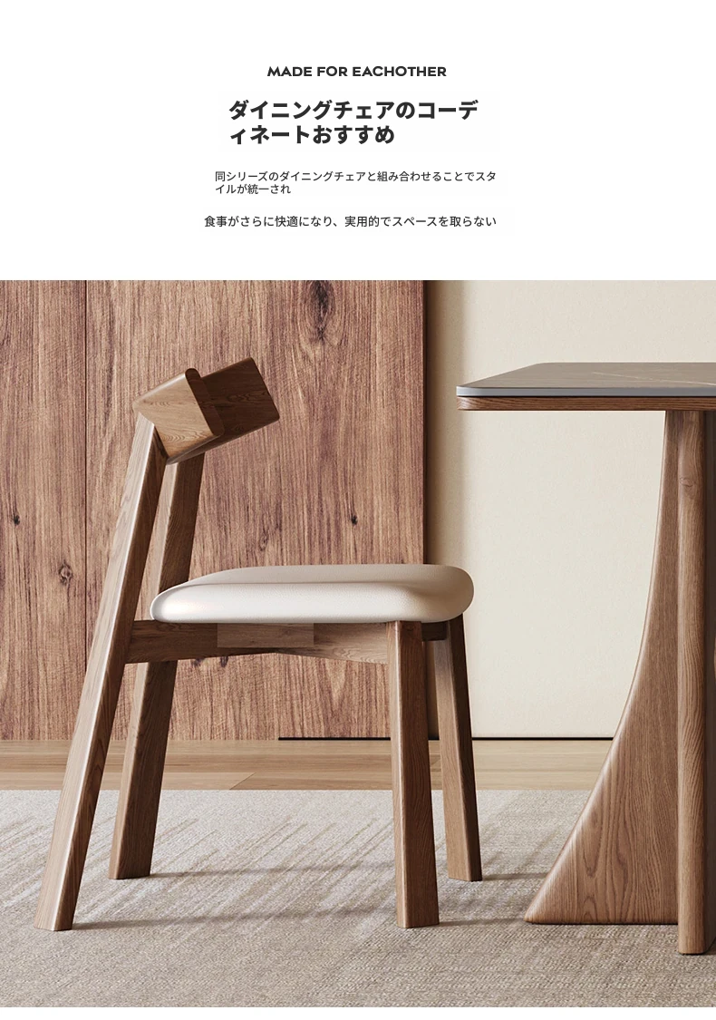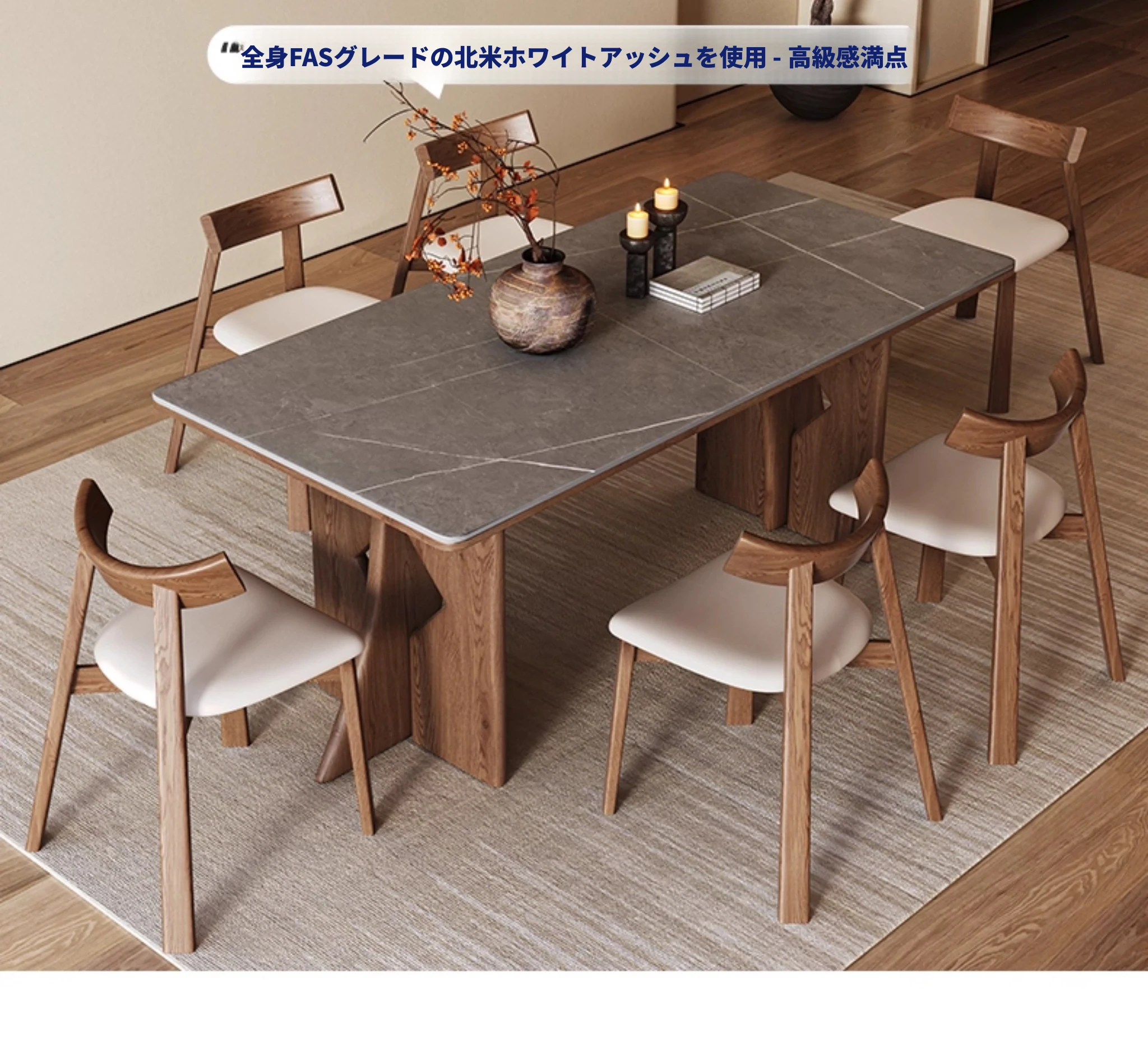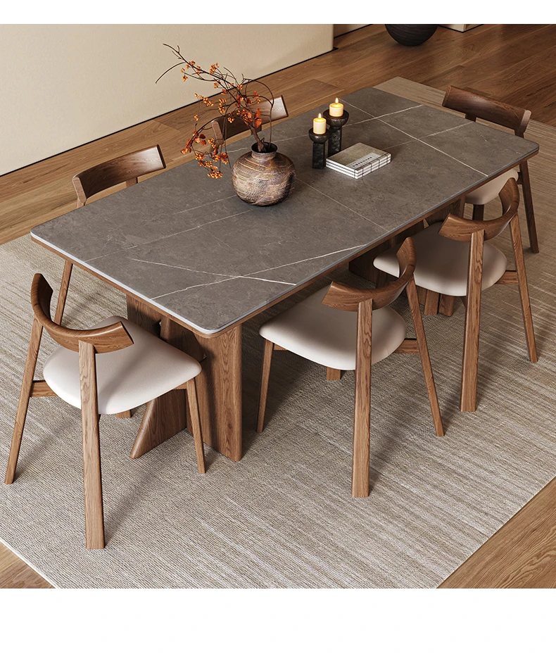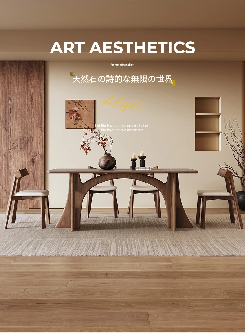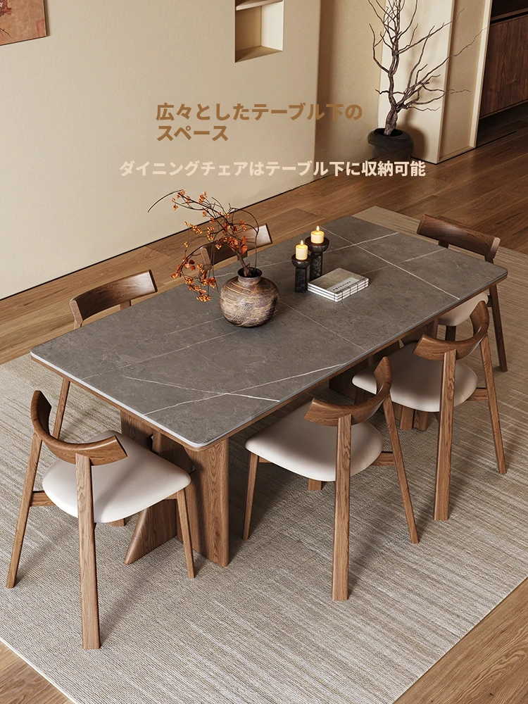 侘寂スタイルの無垢材ロックボードダイニングテーブル&チェアセット - ホワイトアッシュとウォールナットの現代的でシンプルなデザイン、2025年モデル。おしゃれで機能的な食卓を演出します!