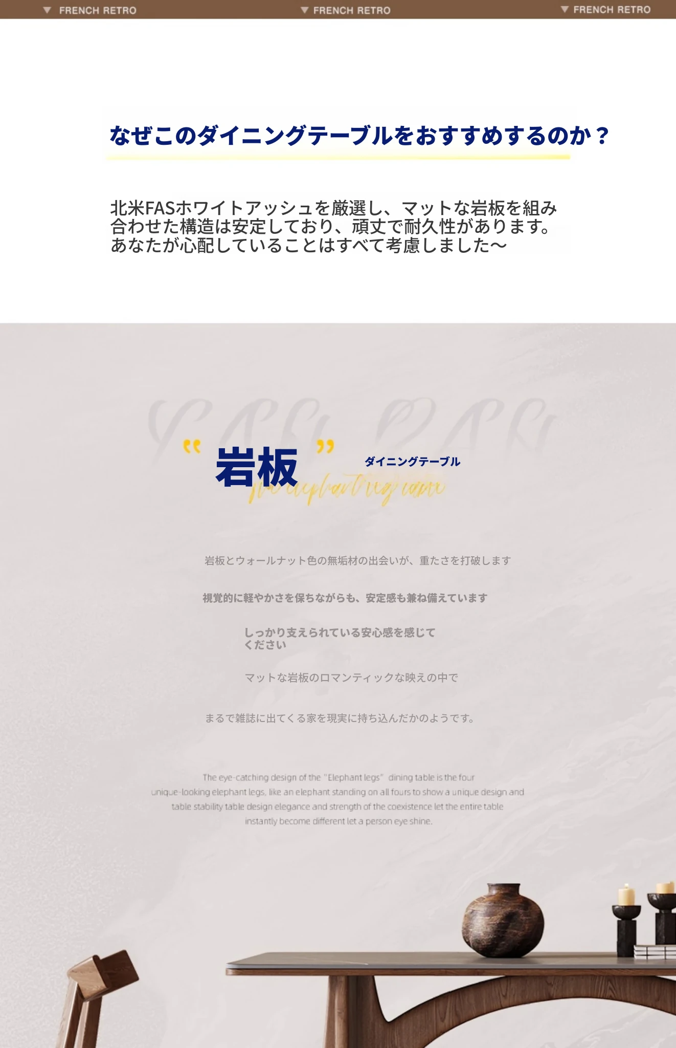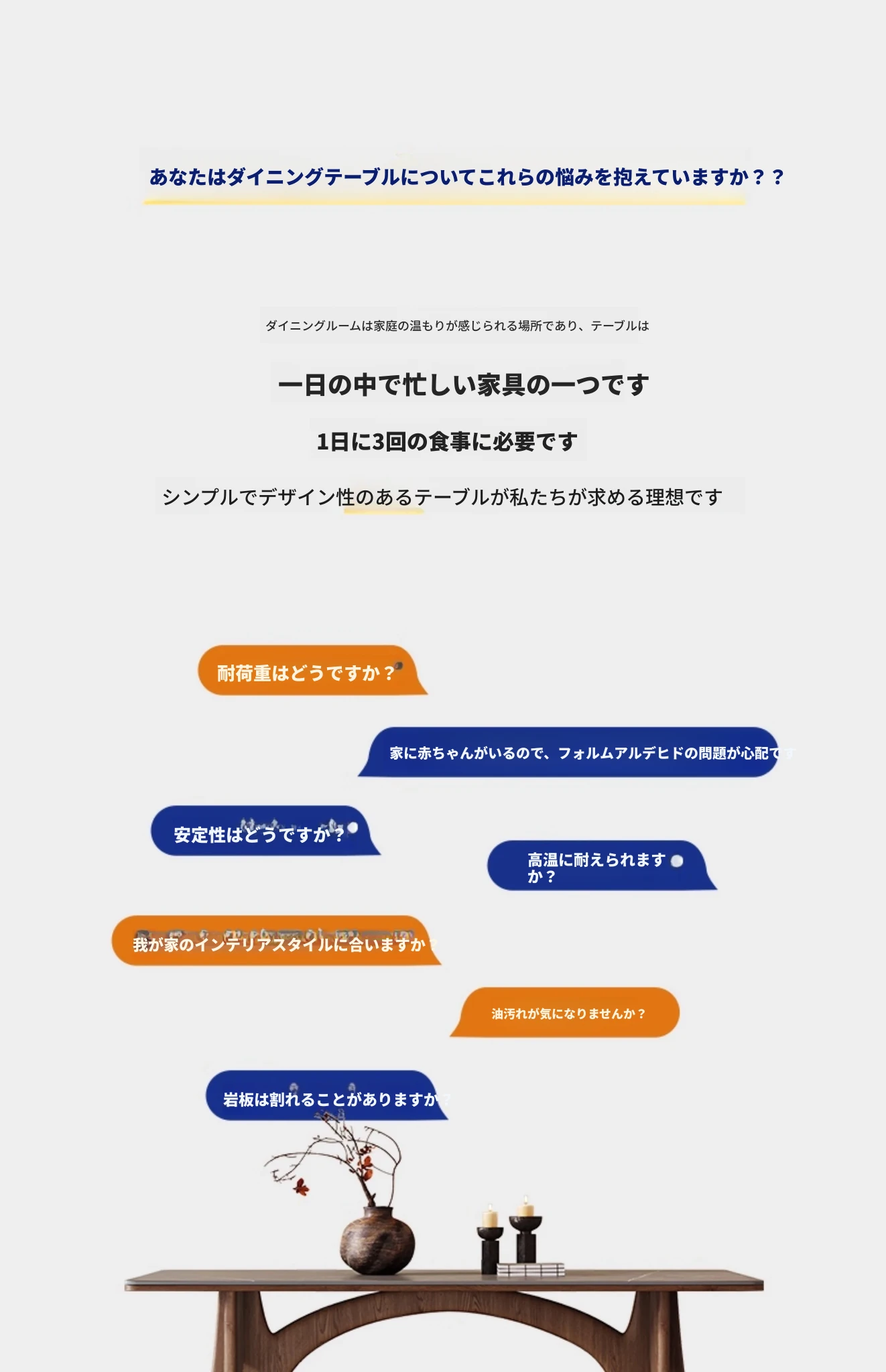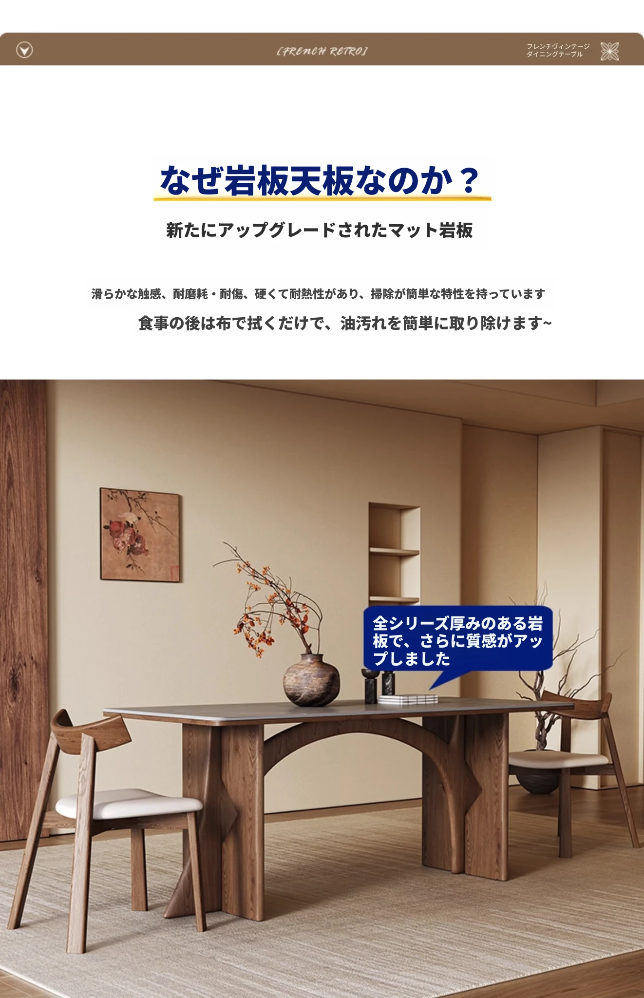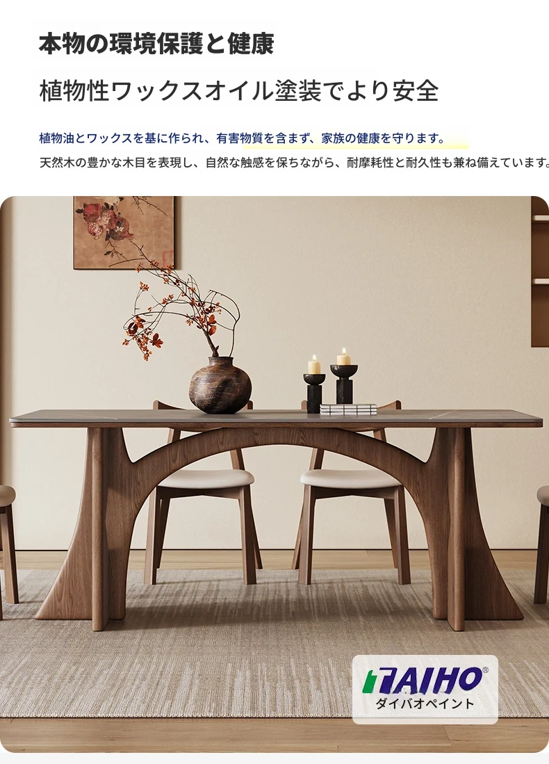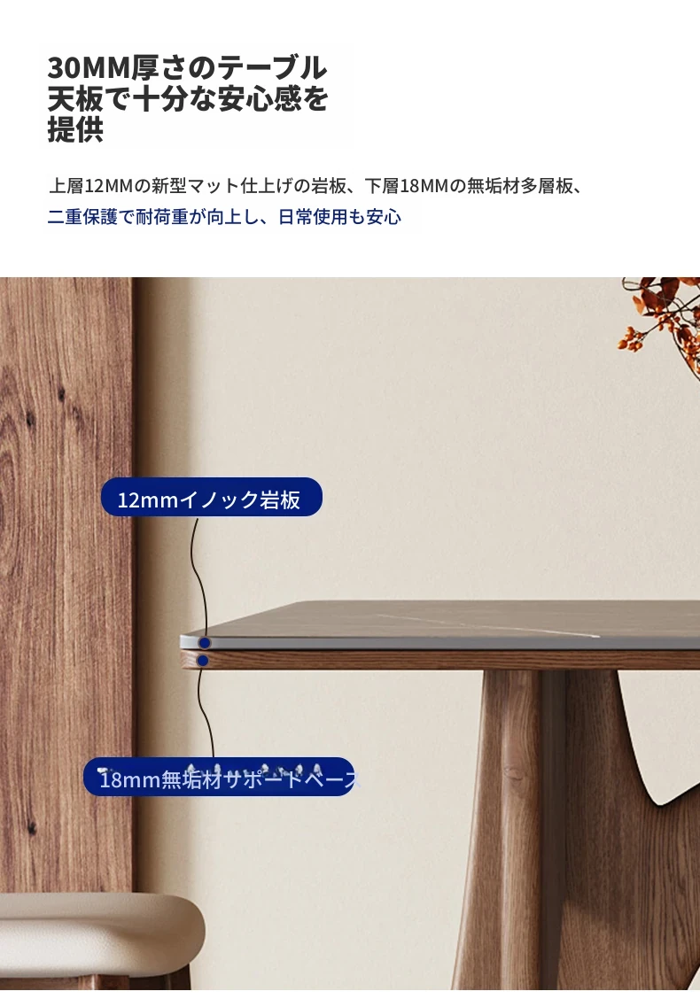 侘寂スタイルの無垢材ロックボードダイニングテーブル&チェアセット - ホワイトアッシュとウォールナットの現代的でシンプルなデザイン、2025年モデル。おしゃれで機能的な食卓を演出します!