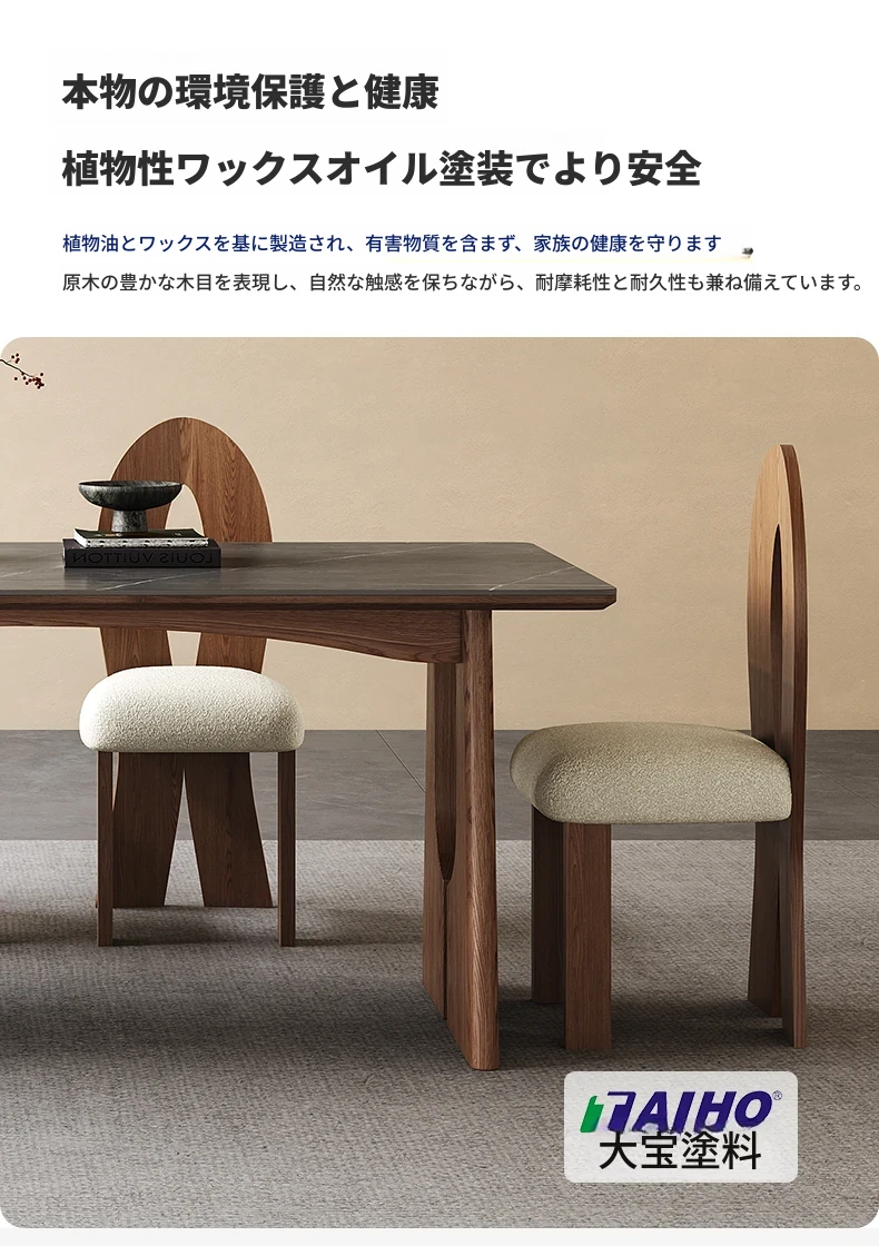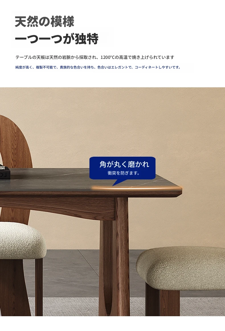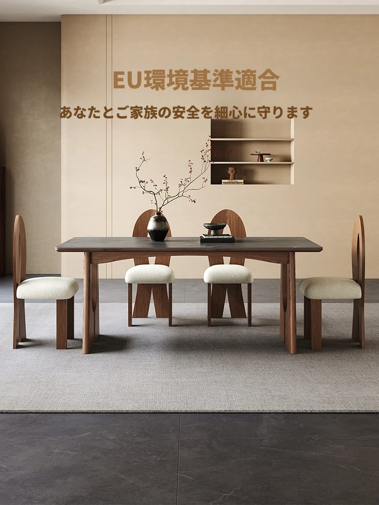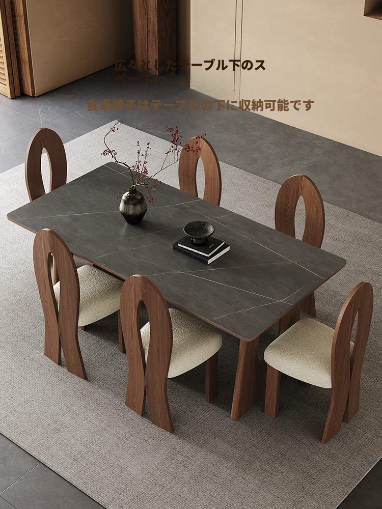 和の美、侘寂風の無垢材ロックプレートダイニングテーブルセット。モダンでシンプル、ラグジュアリーな雰囲気。小さなスペースにもぴったりな2025年新作!あなたの家に特別なひと時を。