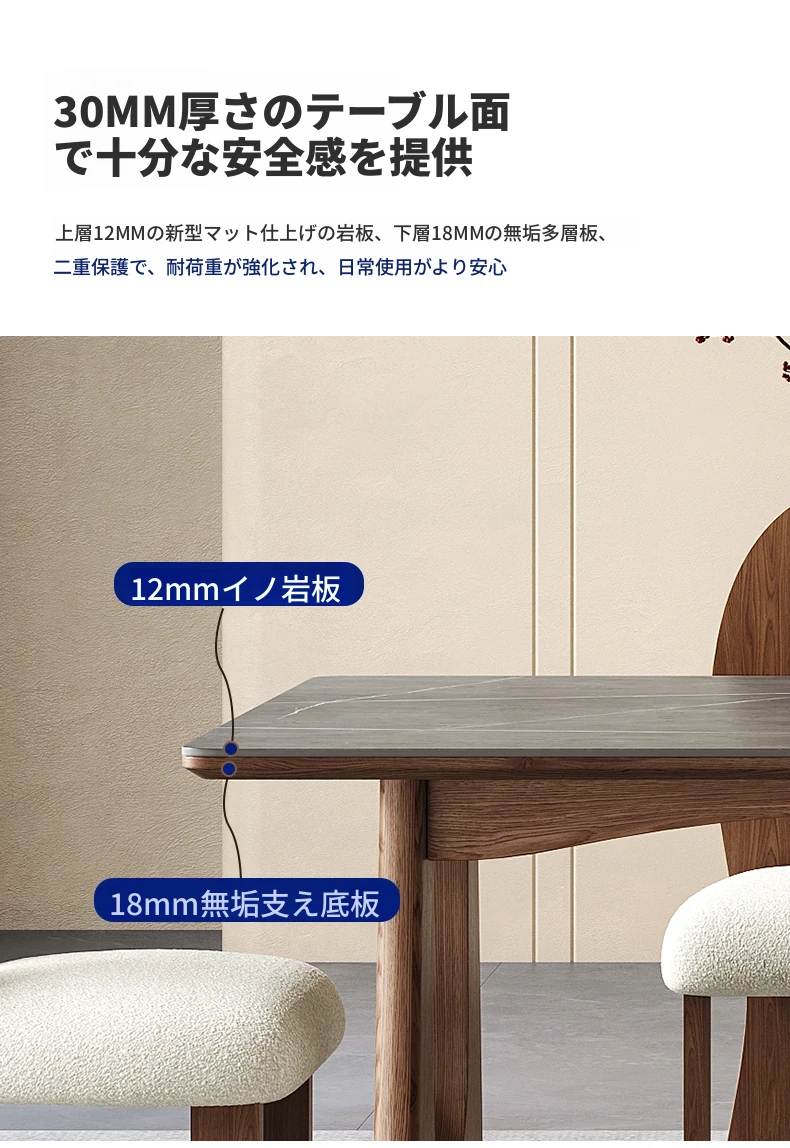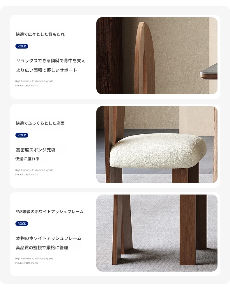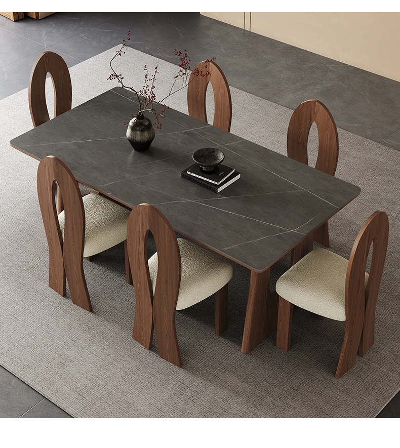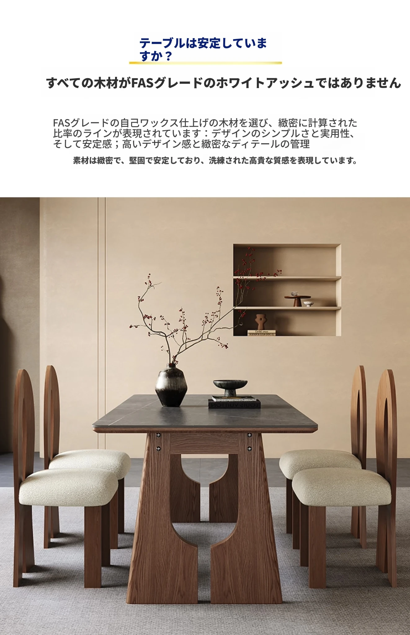 侘寂スタイルの無垢材ロックボードダイニングテーブル&チェアセット - ホワイトアッシュとウォールナットの現代的でシンプルなデザイン、2025年モデル。おしゃれで機能的な食卓を演出します!