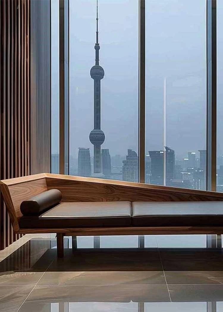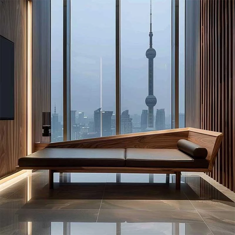 新中式禅の雰囲気を持つブラックウォールナット無垢材製の貴妃椅子。オフィスやホテル、民宿にぴったりのリラックスソファチェア。心安らぐ安らぎの空間を演出します。
