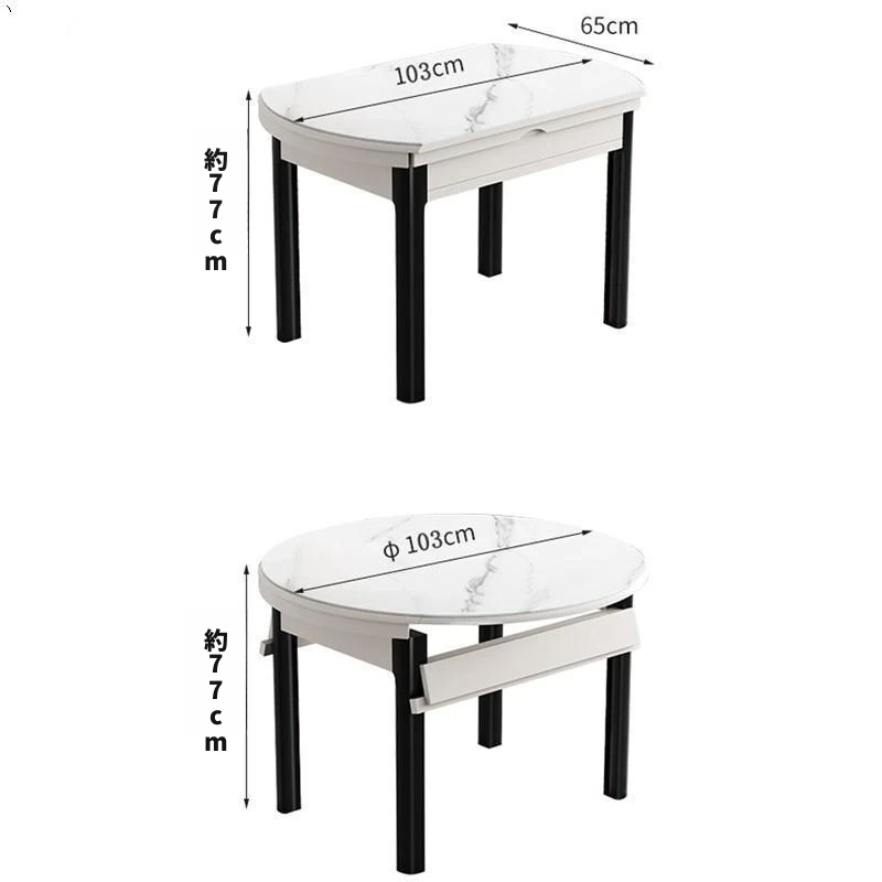 洞石岩板使用の高級感あふれる伸縮式ダイニングテーブル|シンプルでモダンなミッドセンチュリー風|折りたたみ可能|2025年新作!家庭にぴったりのスタイリッシュな選択!
