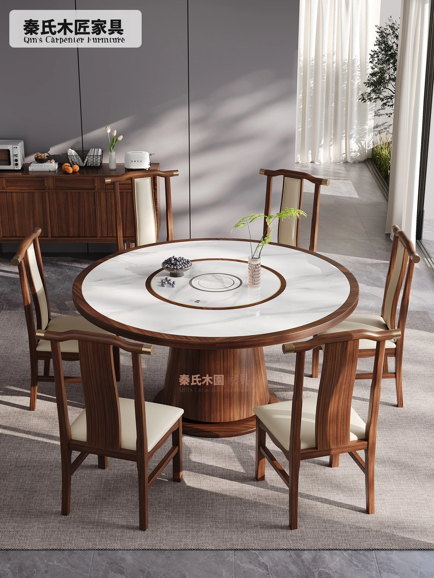 高級感溢れる無垢材製の多機能ダイニングテーブルセット!電磁調理器付きの電動温菜板で、お家で本格的な中華料理を楽しめます。新中式デザインの円形テーブルで、家族や友人との楽しい食卓を演出します。