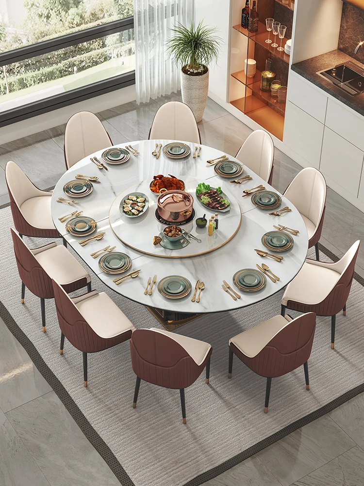 ジェグソン 軽奢華 暖かい菜板 スレート製 ダイニングテーブル 多機能電磁炉付き 鍋料理も楽しめる モダンシンプル 伸縮式テーブル