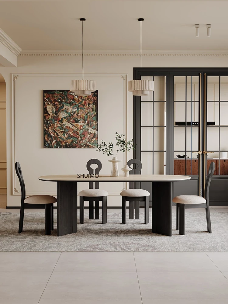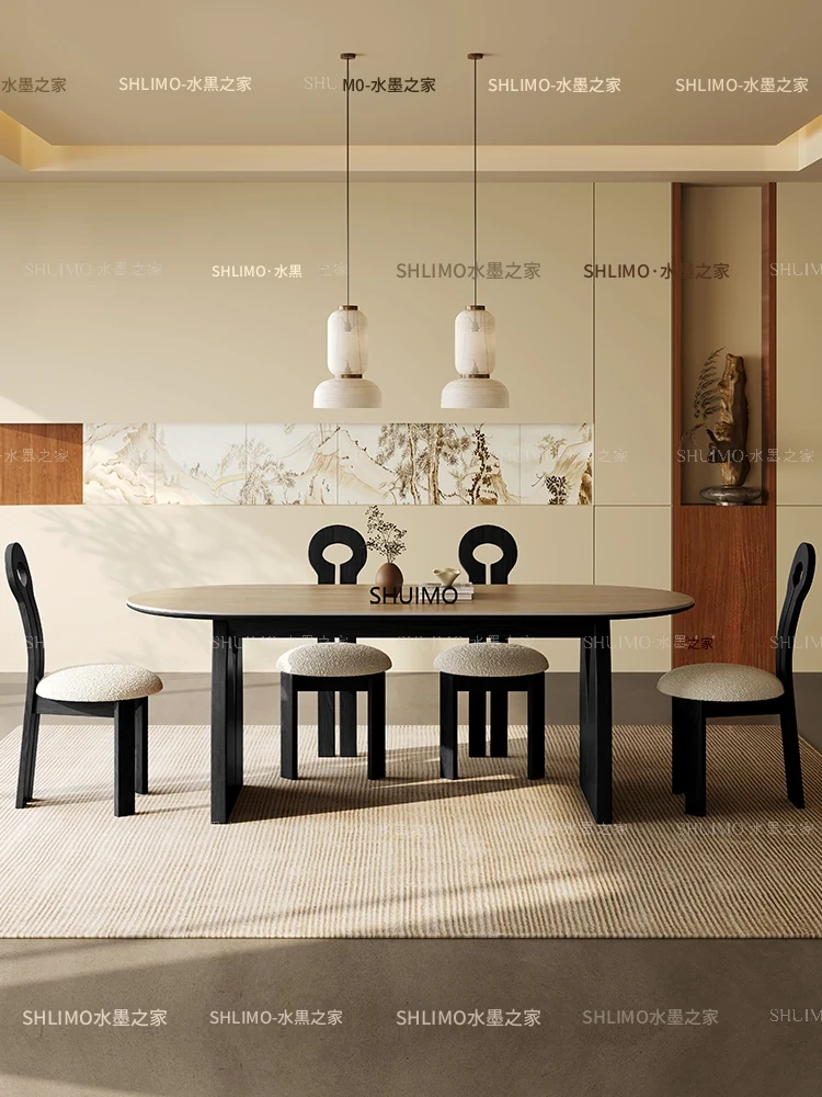 侘寂スタイルの無垢材ロックボードダイニングテーブル&チェアセット - ホワイトアッシュとウォールナットの現代的でシンプルなデザイン、2025年モデル。おしゃれで機能的な食卓を演出します!