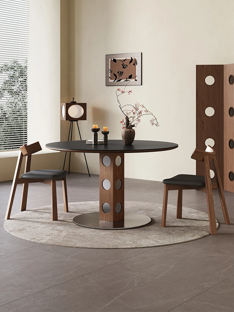 イタリアンラグジュアリーの岩板製ラウンドダイニングテーブル|小型住宅に最適なモダンでシンプルなデザインの高級会議テーブル|小紅書で話題のスタイリッシュな食卓!