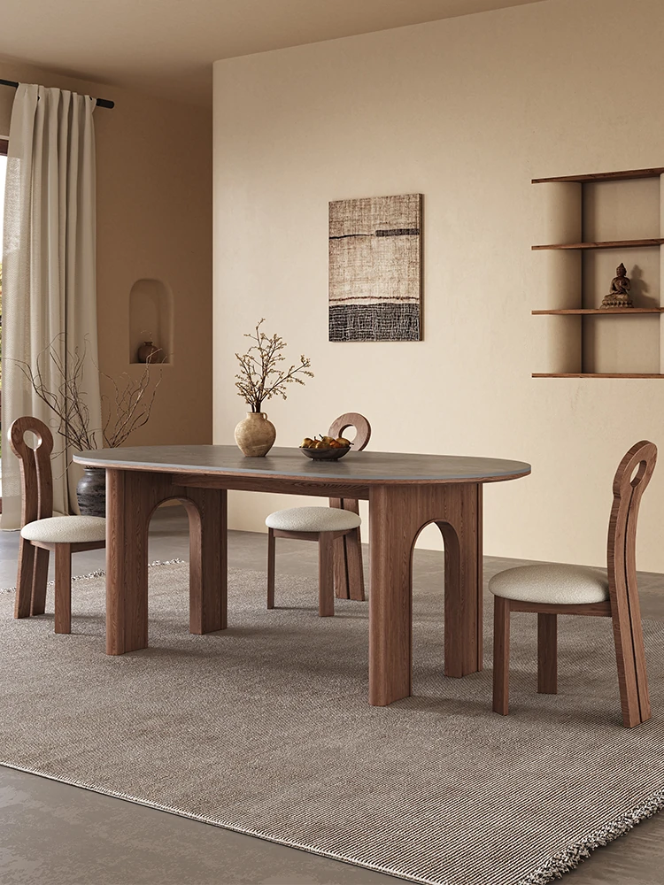フレンチヴィンテージ実木ロックボードダイニングテーブル - 軽やかなラグジュアリー、モダンでシンプルなデザイン、小さな家にもぴったりな2025年新作高級ダイニングテーブル!